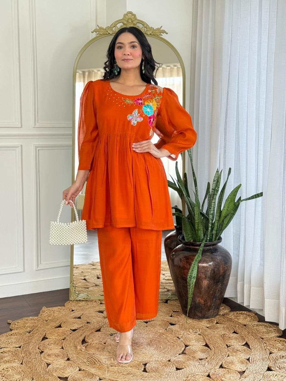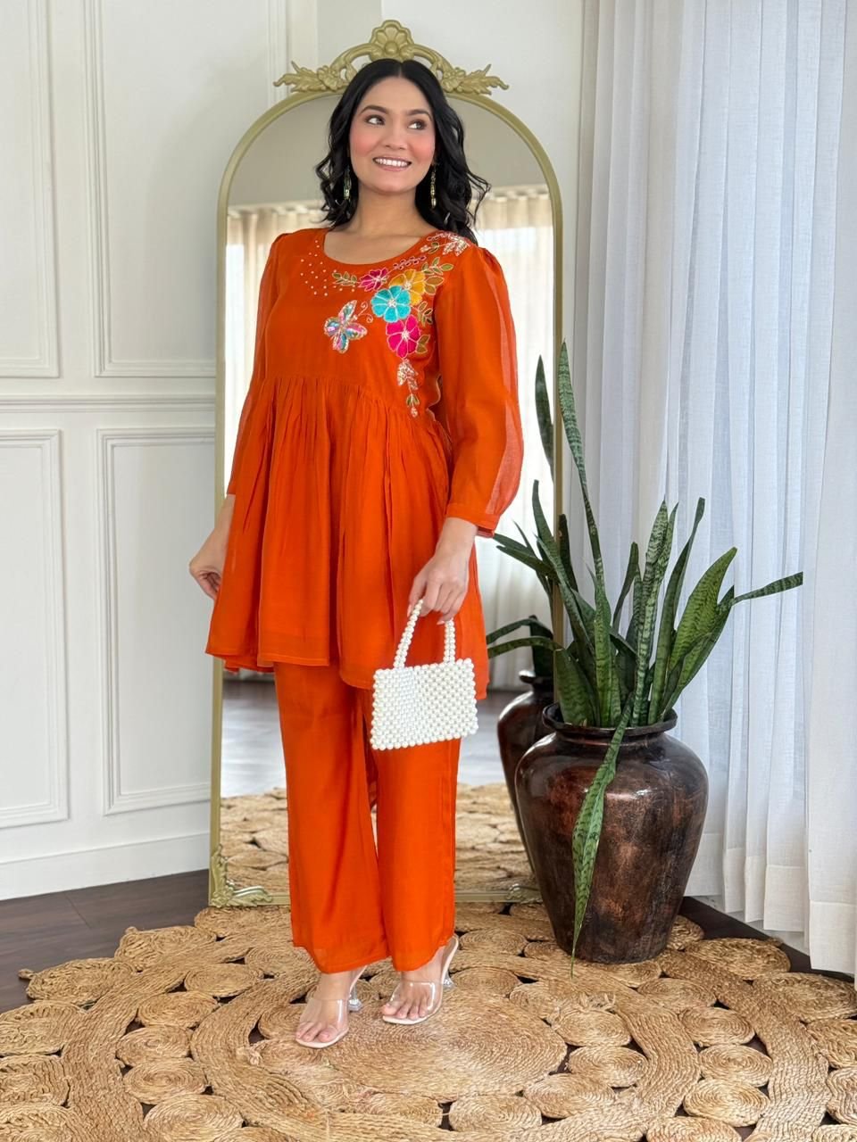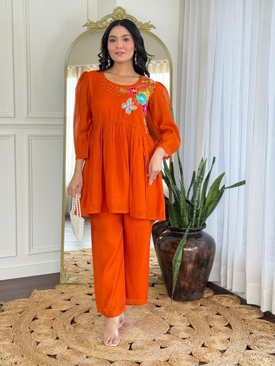 The CS-139 Mal Chanderi Co-Ord Set blends traditional charm with modern comfort. Crafted from fine mal chanderi fabric, this set offers a soft sheen and graceful finish.