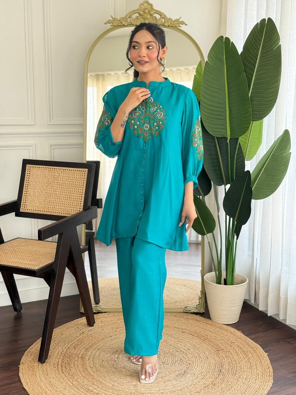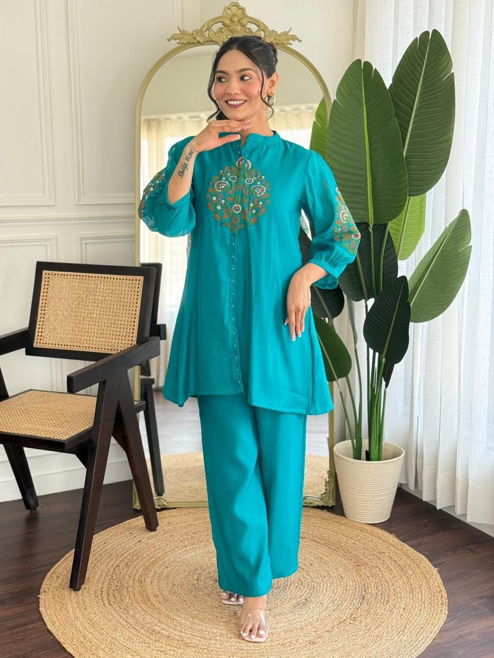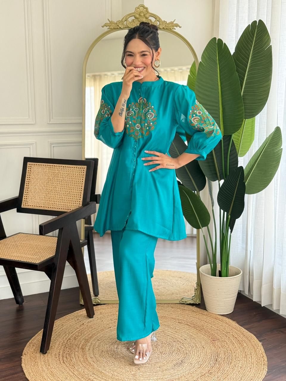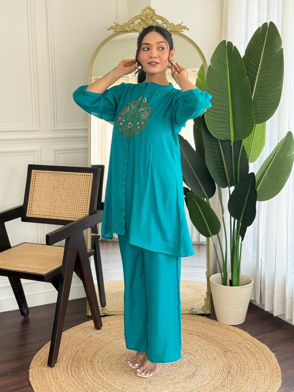Ideal for festive gatherings, casual outings, or semi-formal events, this co-ord set embodies both comfort and timeless style.