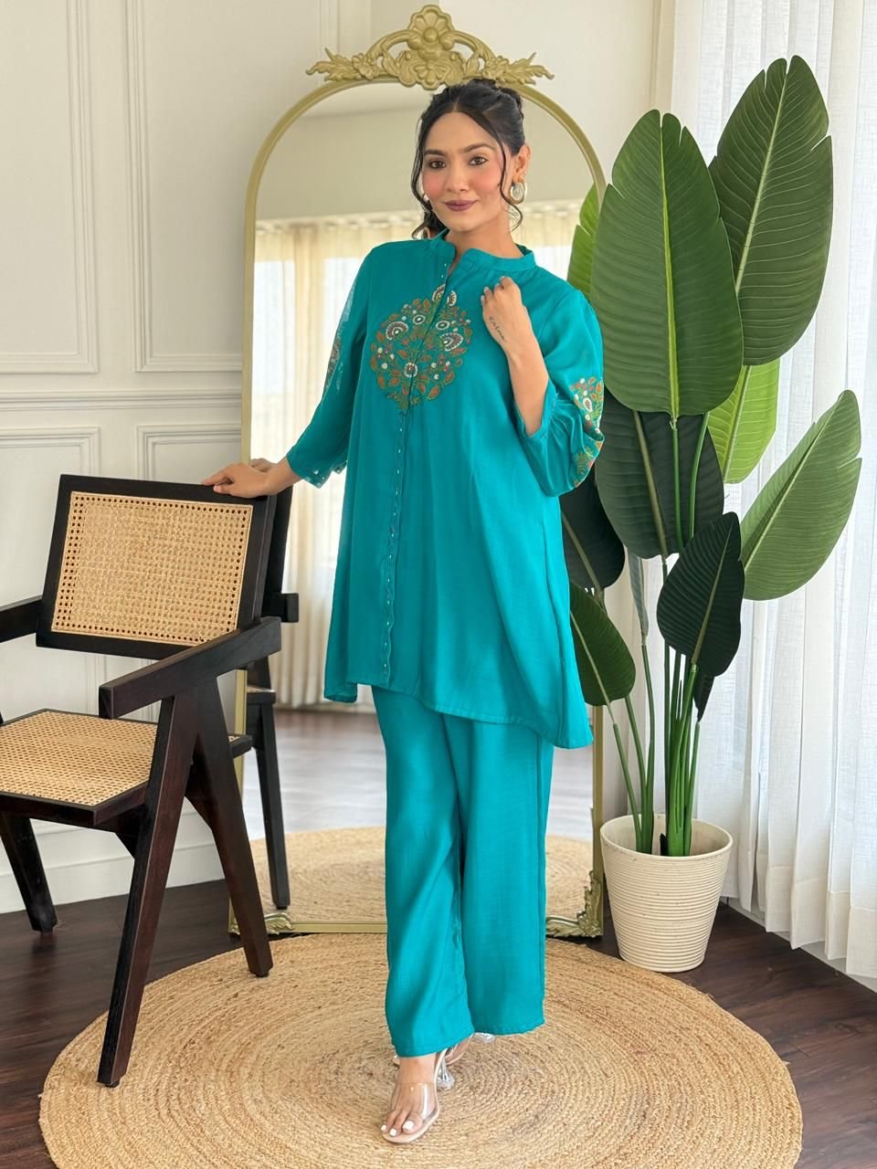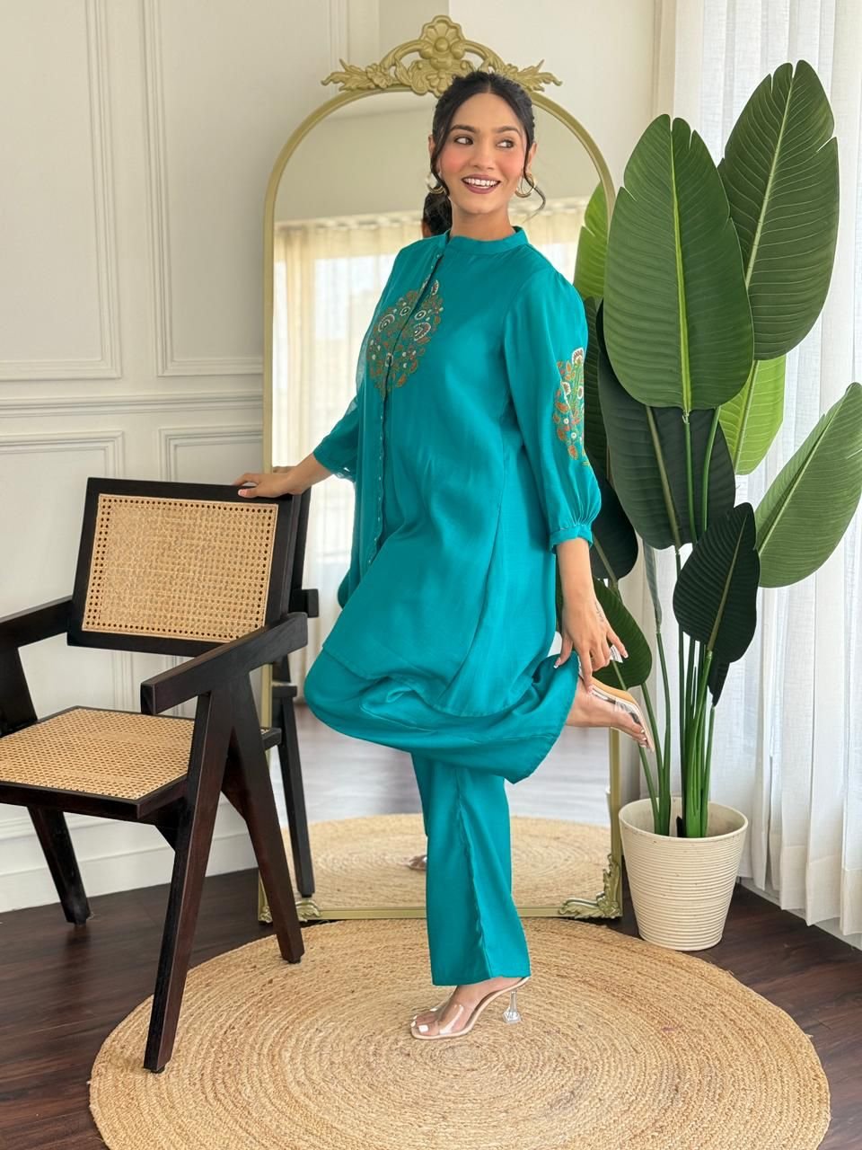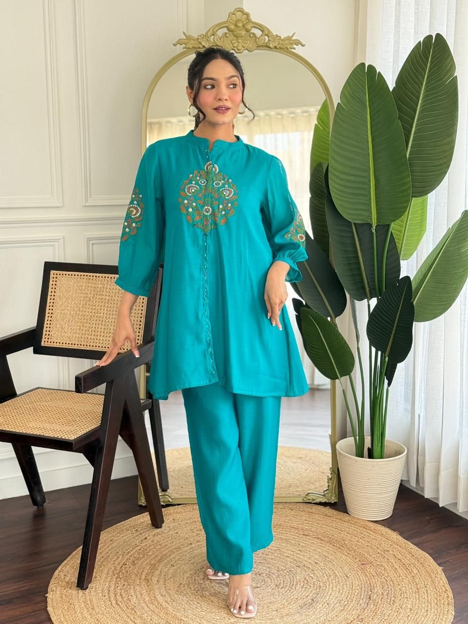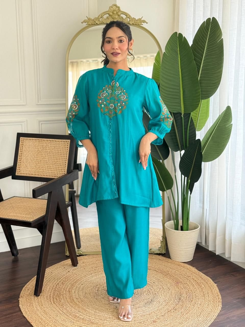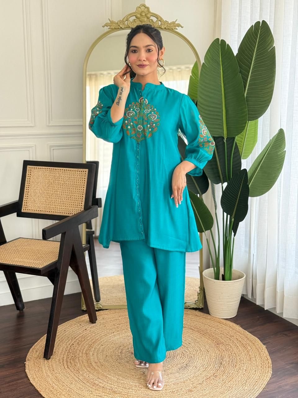 Ideal for festive gatherings, casual outings, or semi-formal events, this co-ord set embodies both comfort and timeless style.