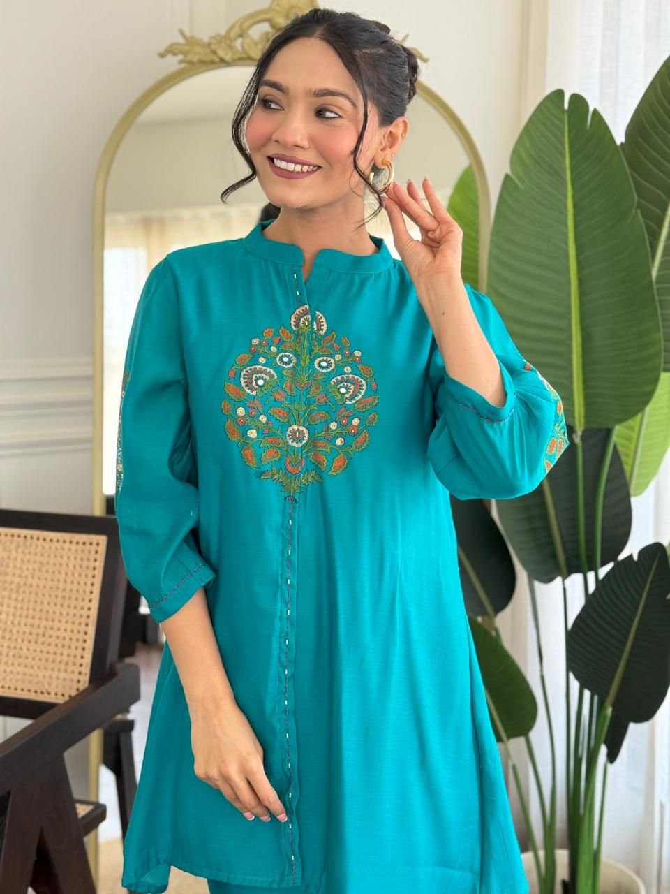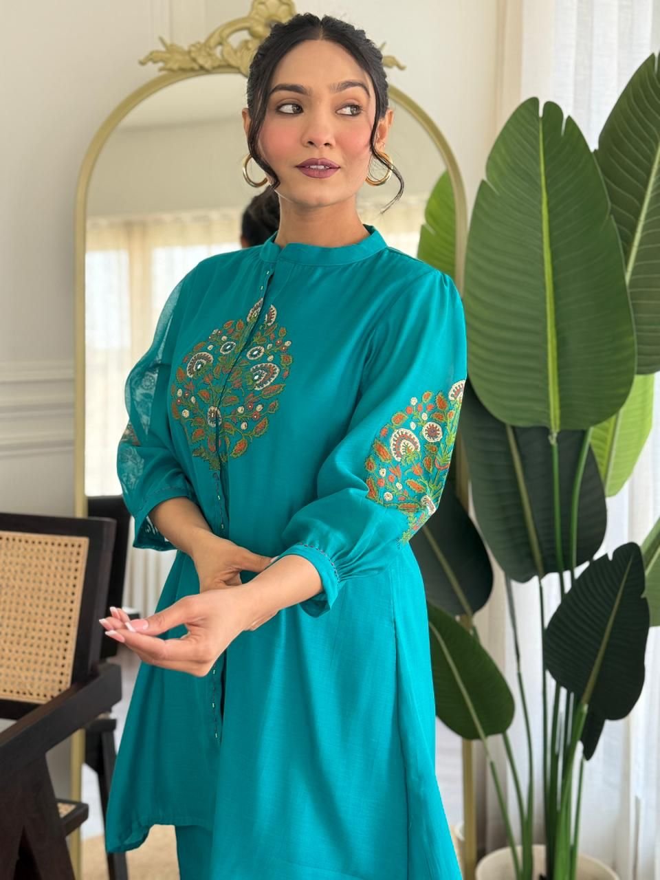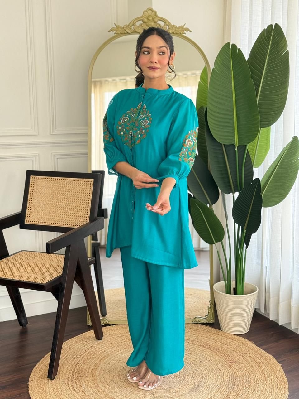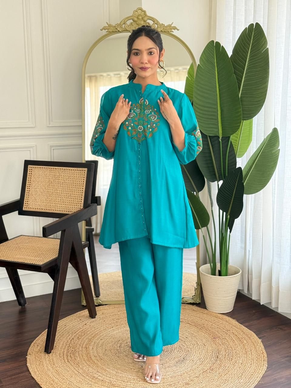 Ideal for festive gatherings, casual outings, or semi-formal events, this co-ord set embodies both comfort and timeless style.