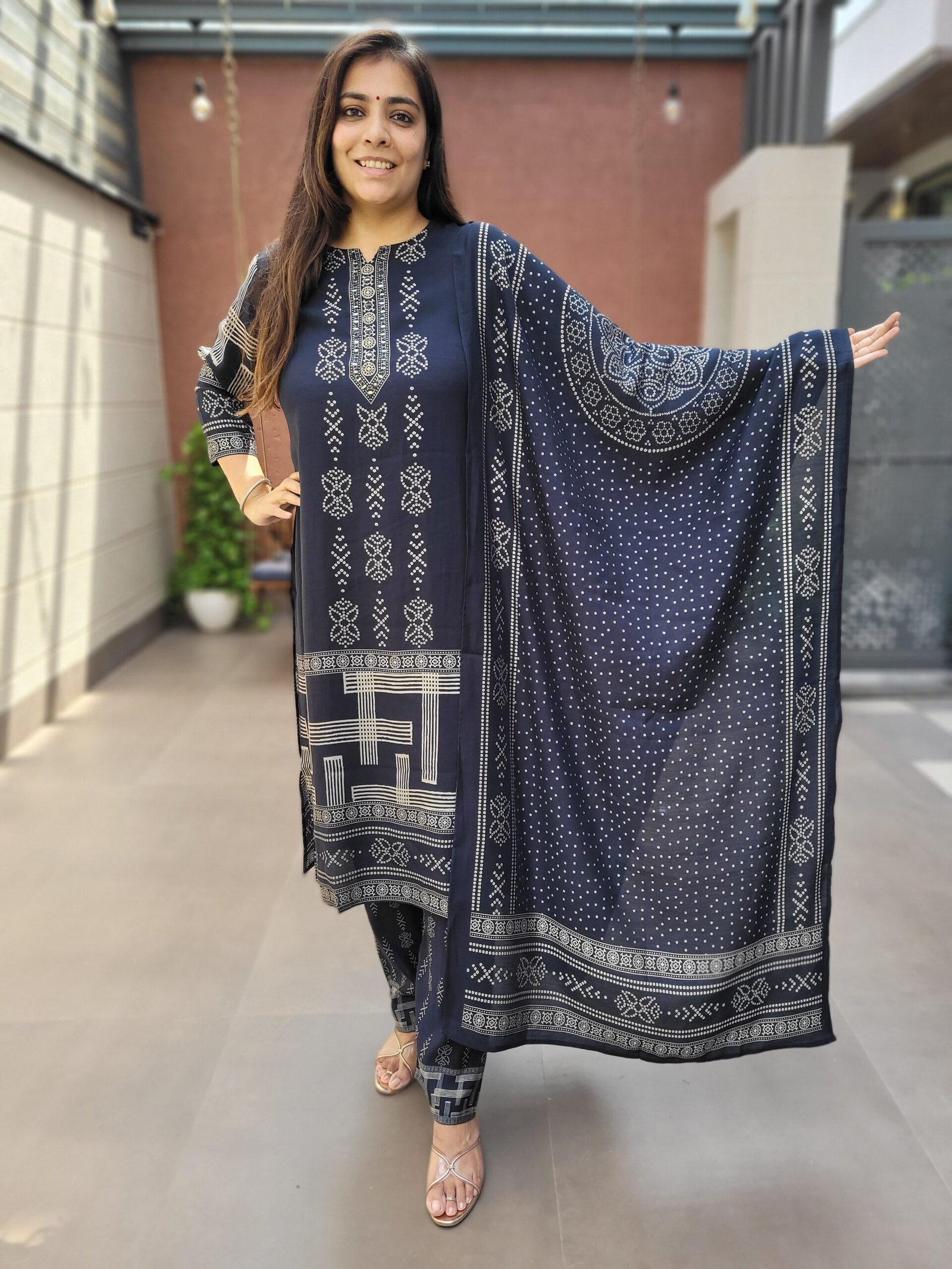 Designed for women who value style, comfort, and detailed craftsmanship, this modal muslin suit set is perfect for festive celebrations, evening parties, and special occasions where elegance is a priority.