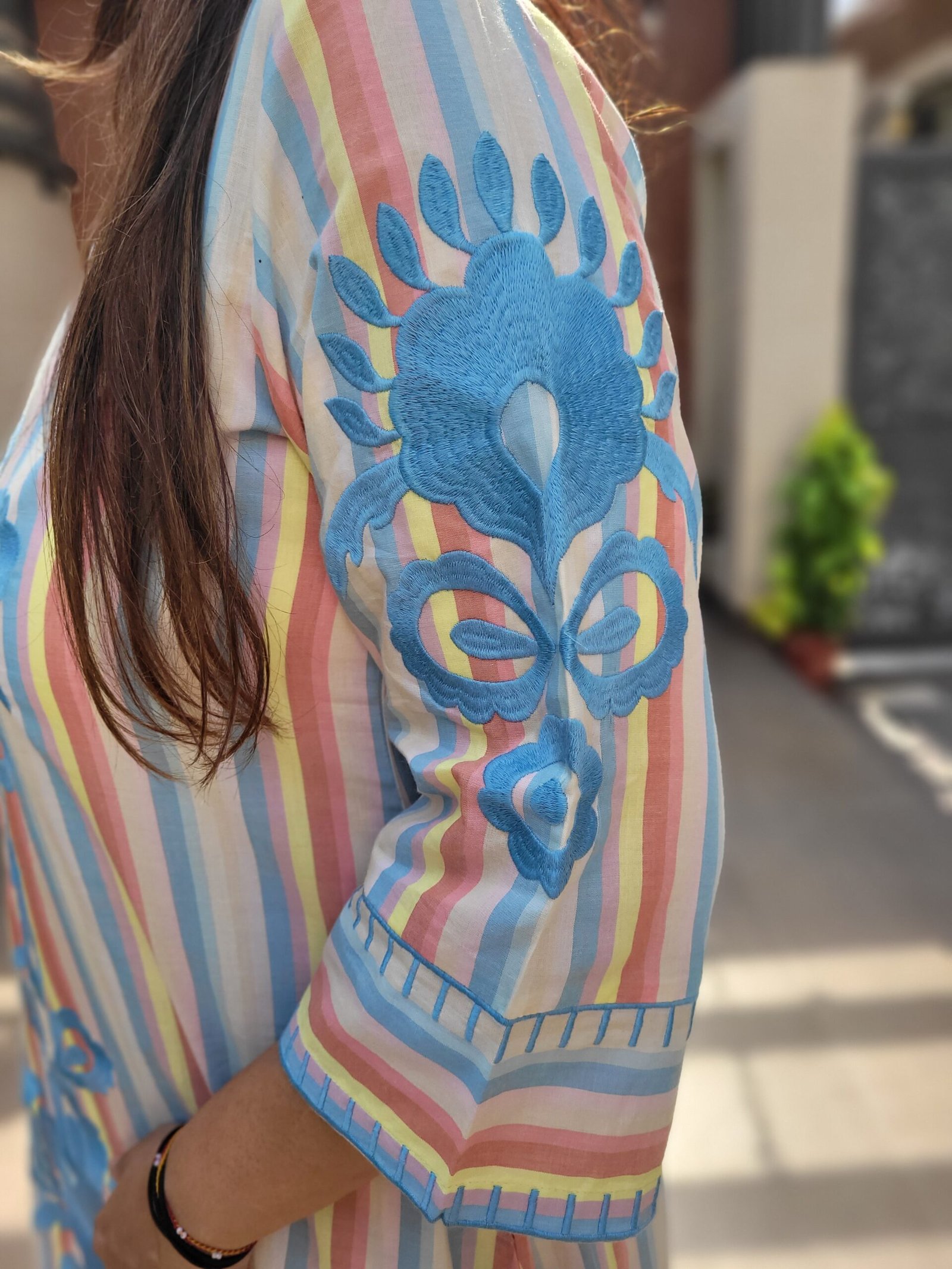 Care Instructions: Gentle hand wash or mild machine wash recommended. Iron on low heat to maintain fabric softness and embroidery finish.