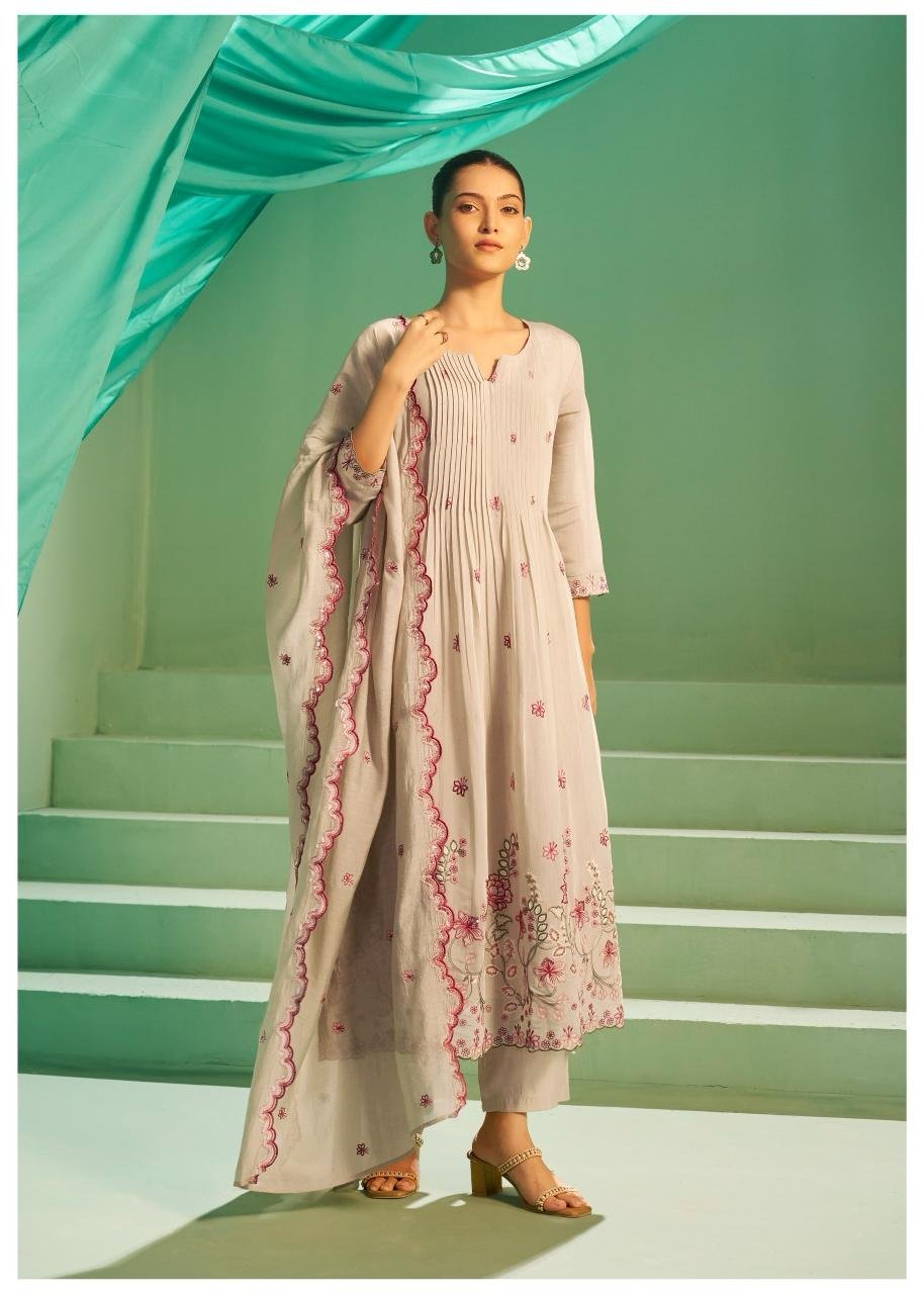 Mul Chanderi A-Line 3PC Set with Full Embroidery