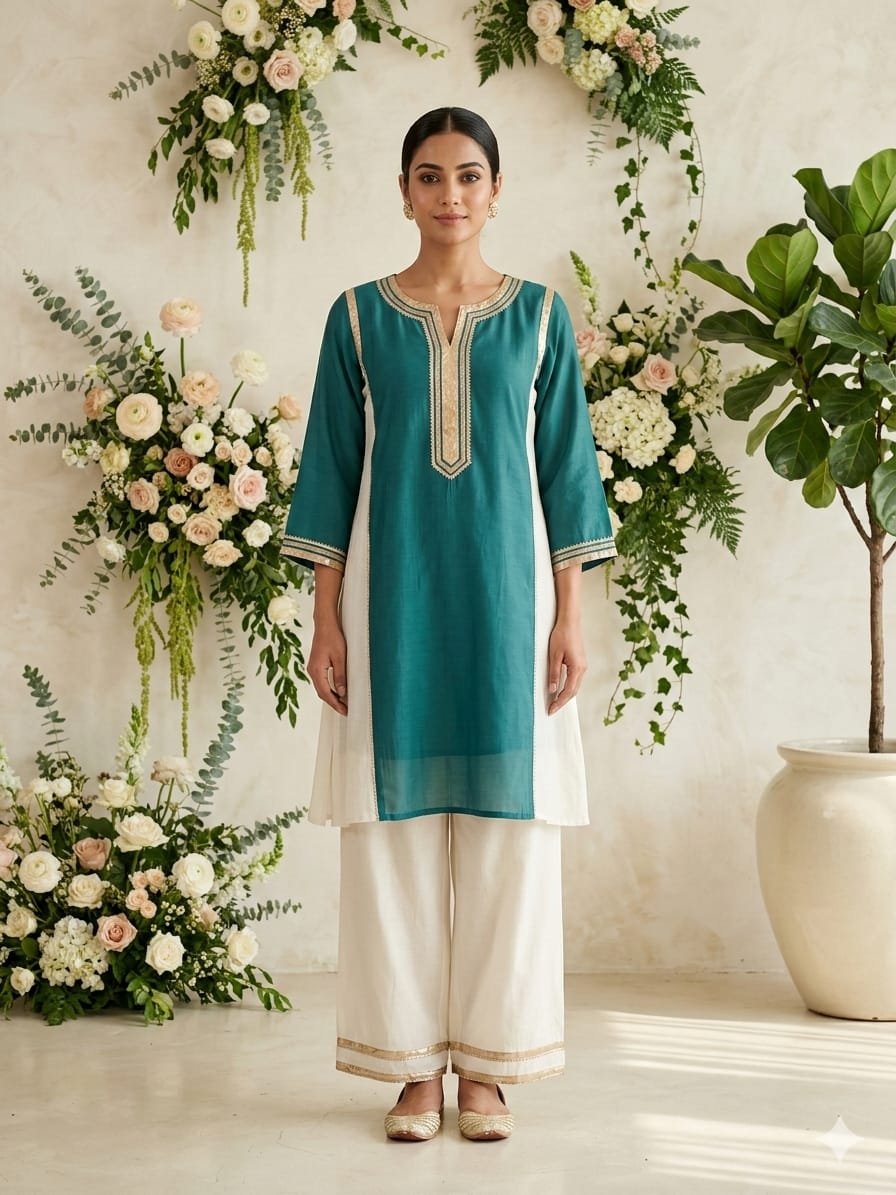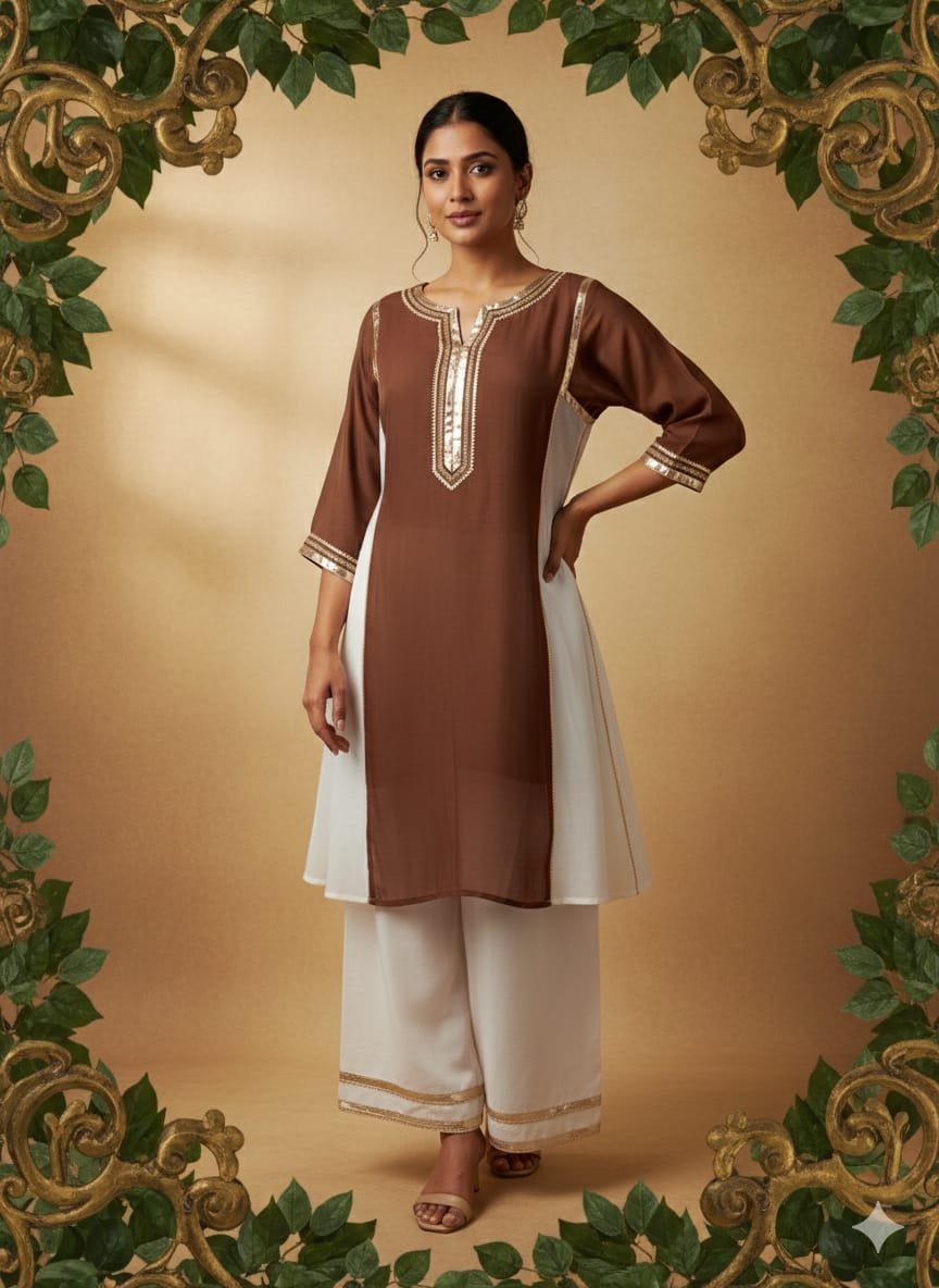 The CS-024 Celebrity Co-ord Set is designed for a glamorous and elegant look. Crafted from mul chanderi fabric, it offers a lightweight and luxurious feel.