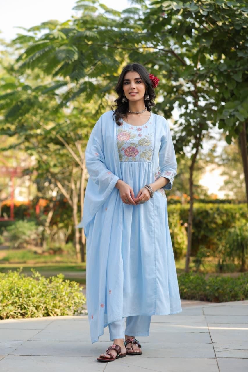 The DU-653 Mul Cotton 3PC Set offers effortless elegance with all-day comfort. Made from soft mul cotton, this ensemble is lightweight, breathable, and perfect for warm weather.