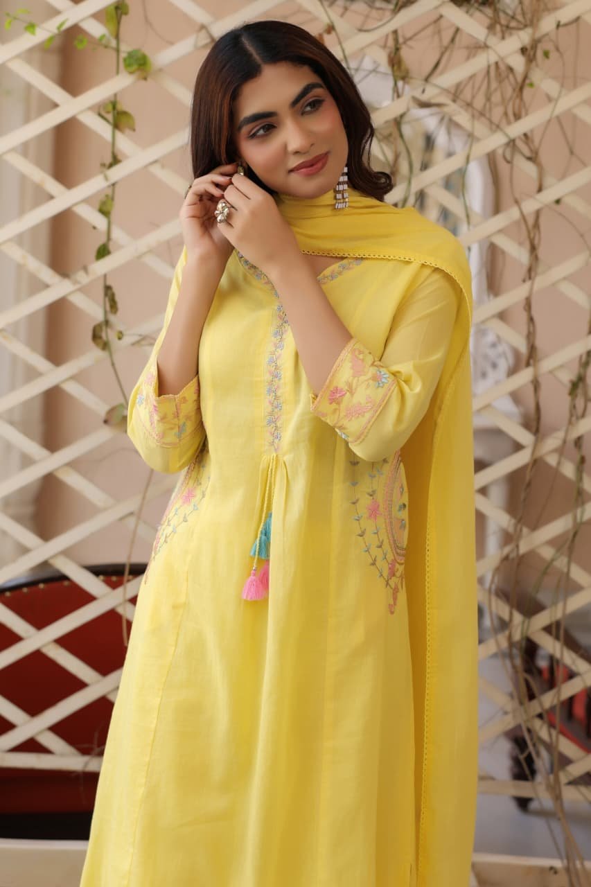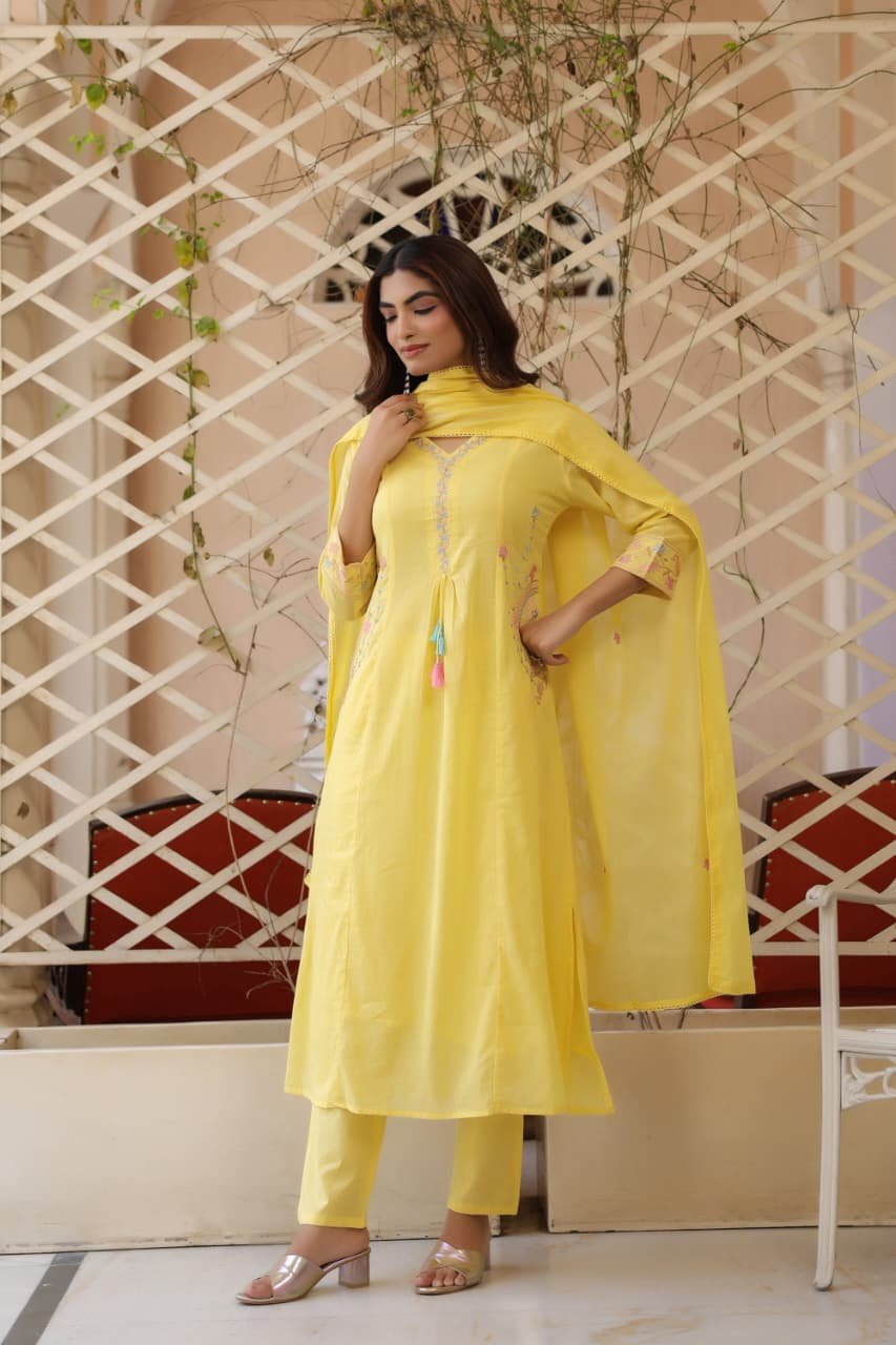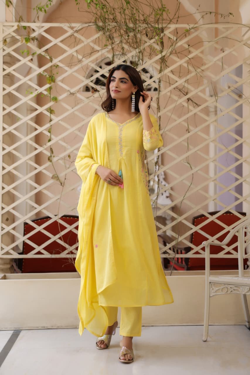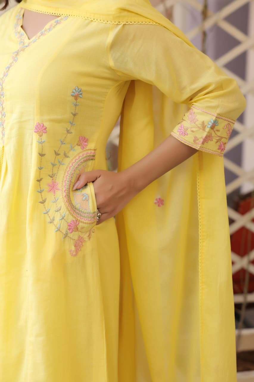 The kurta features an A-line cut with embroidered yoke, sleeves, and pockets, enhanced with cotton lining for a premium finish. Ideal for daily wear and festive styling.