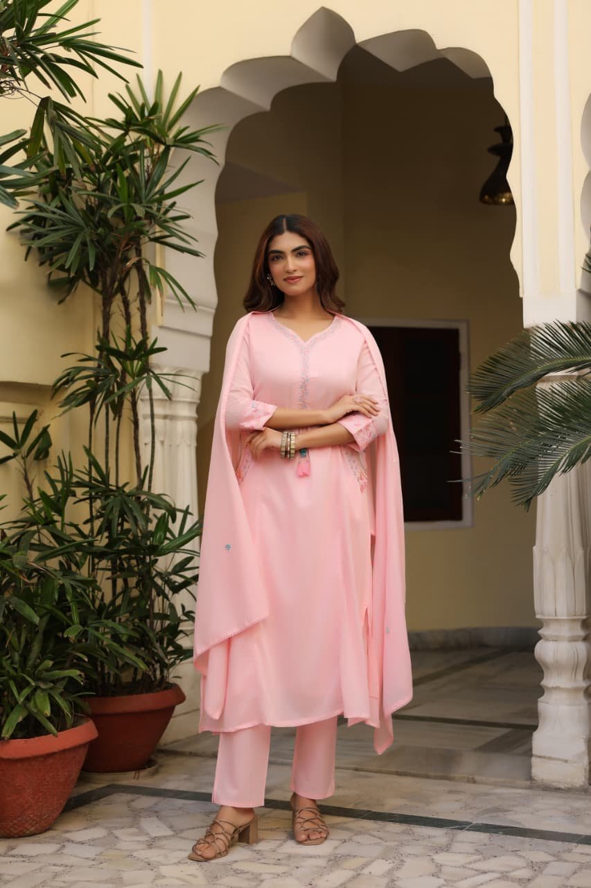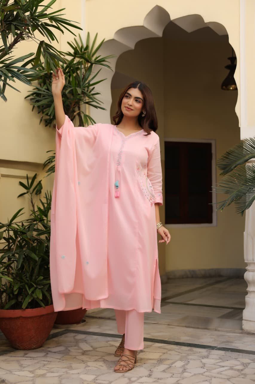 The DU-283 Mul Cotton 3PC Set is designed for stylish comfort and timeless appeal. Crafted from premium mul cotton fabric, it feels soft and airy.