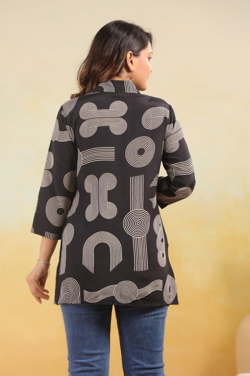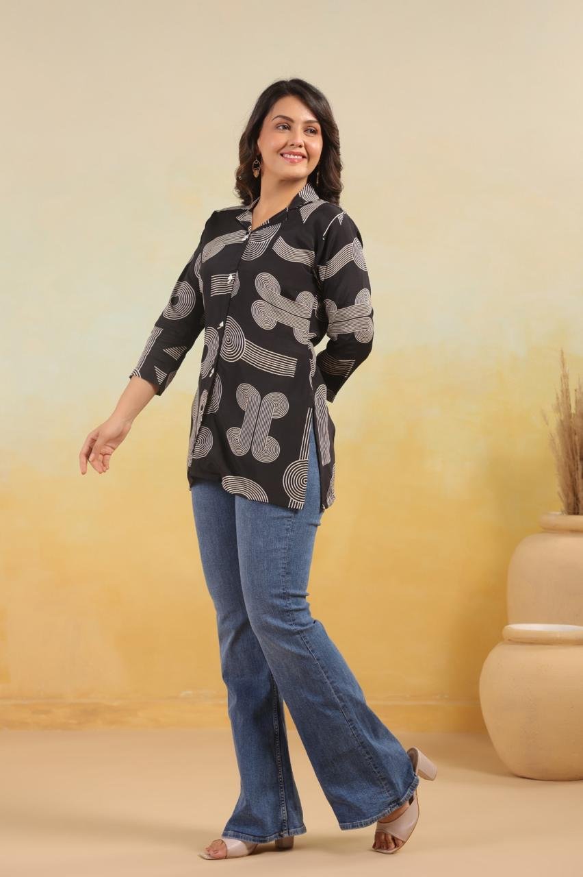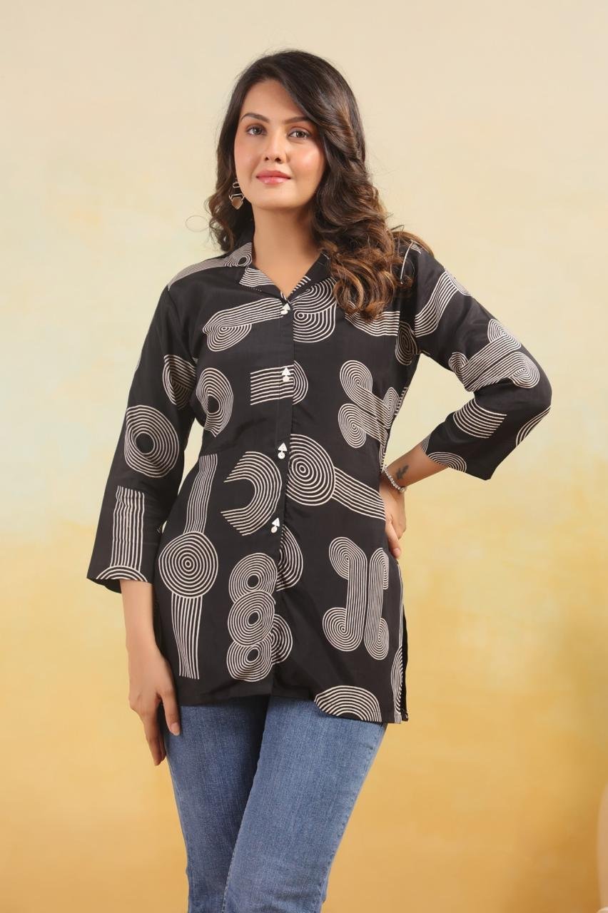 The digital print adds a contemporary charm, while the 29-inch length ensures versatile styling. Pair it effortlessly with trousers or palazzos for workwear or casual outings.