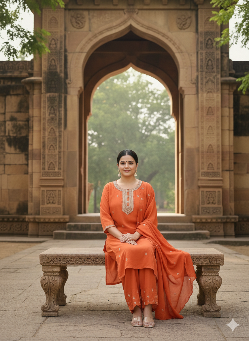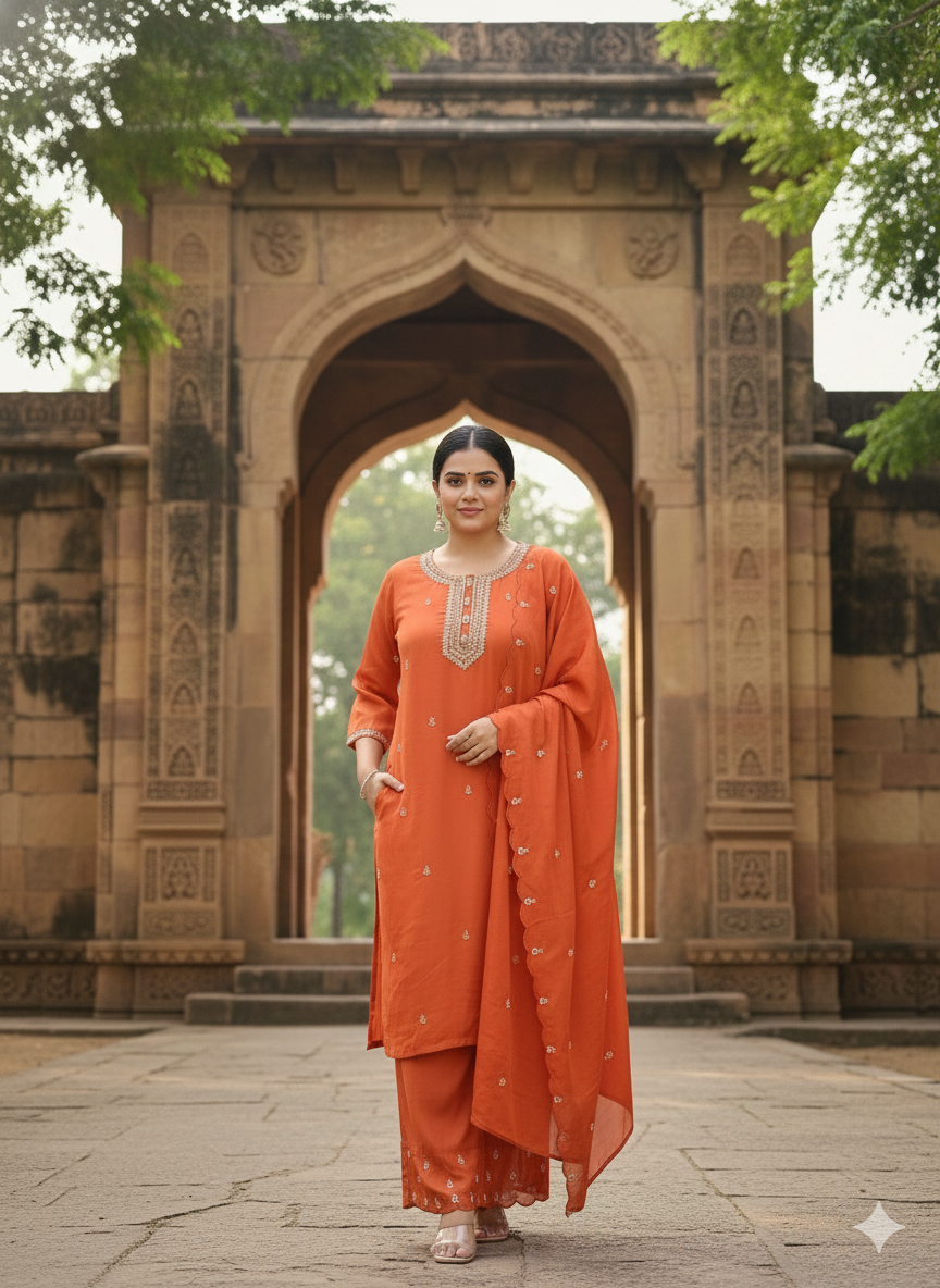 The CS-069 Natural Crepe 3PC Suit Set is crafted to offer a refined and graceful look. The kurta features delicate handwork on the yoke, adding a touch of traditional charm. The cutwork dupatta enhances the suit’s sophistication, making it perfect for festive gatherings, family events, and elegant day functions.