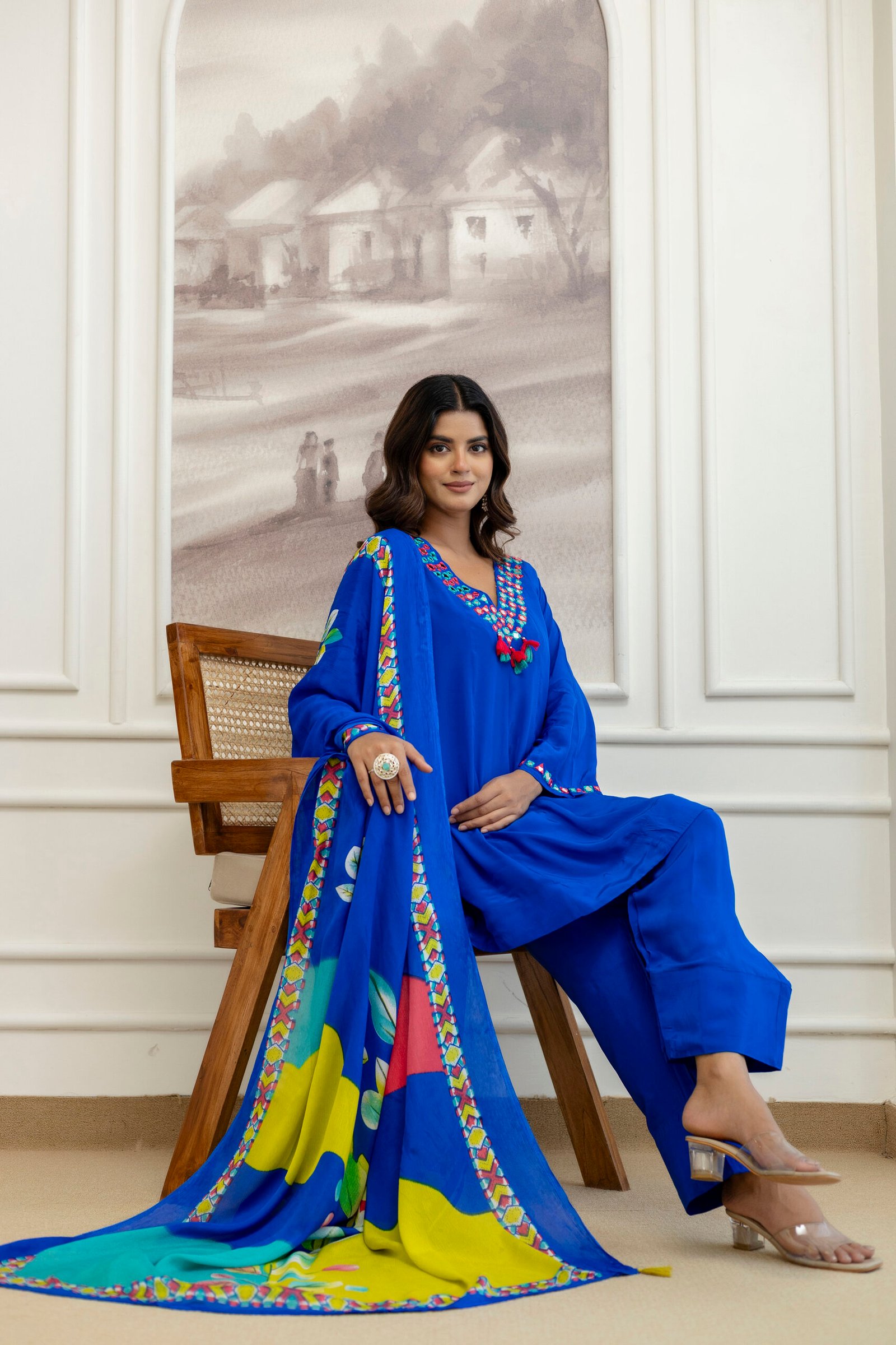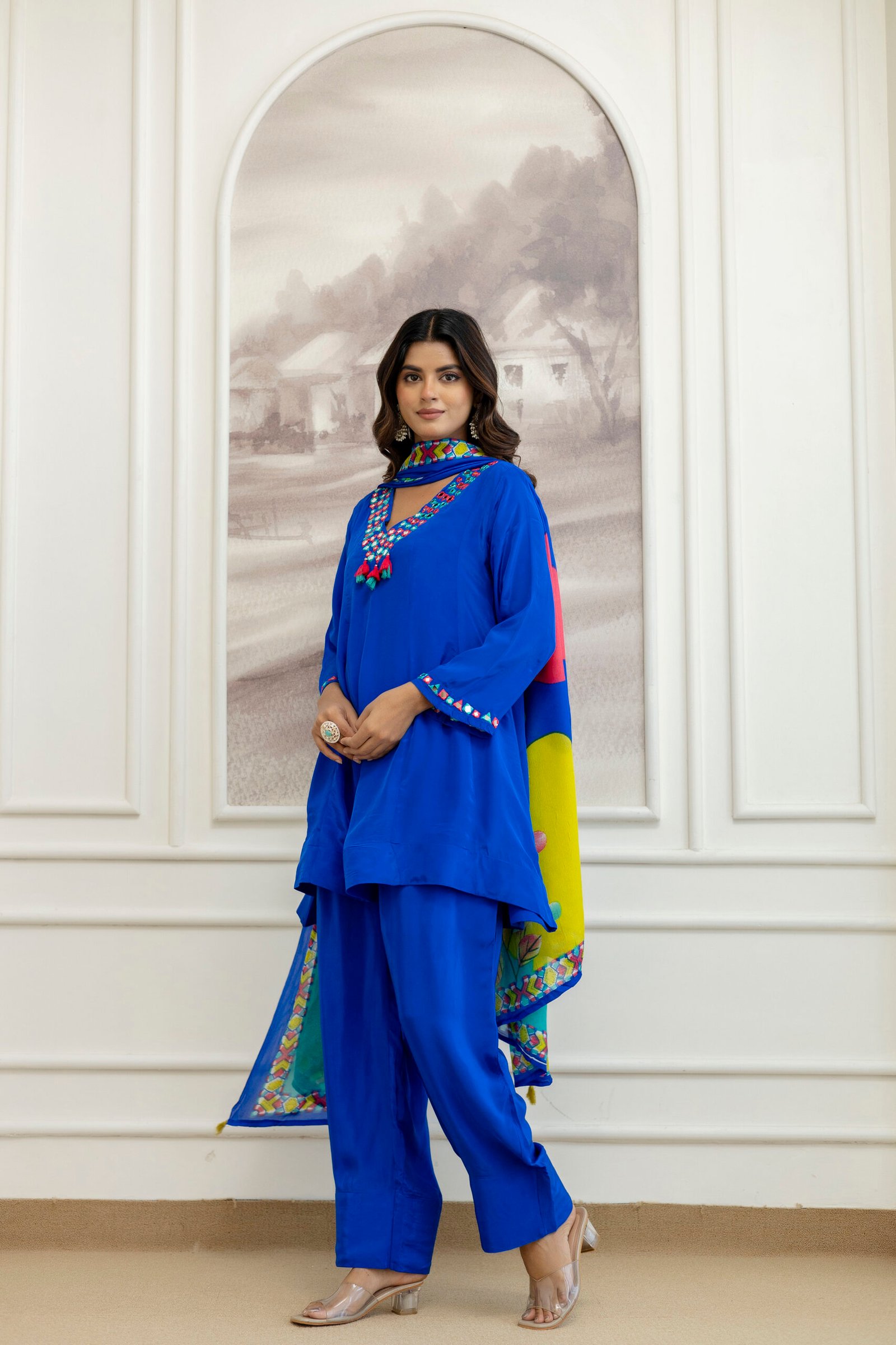 Care Instructions: Dry clean only to maintain the mirror work and color vibrancy.