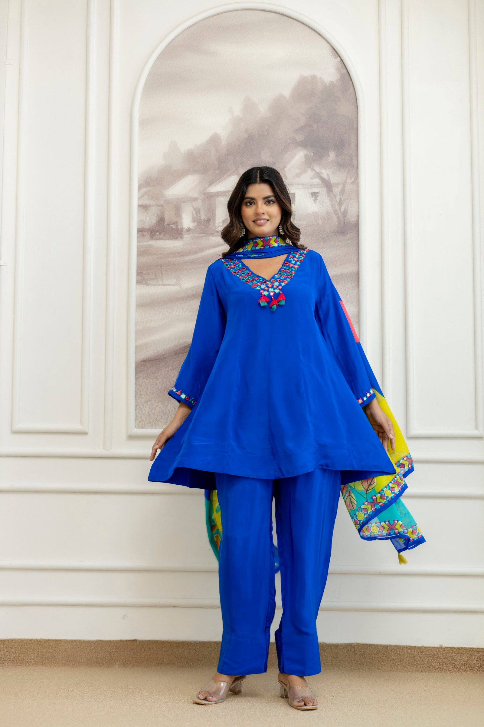 This short kurta suit set is perfect for festive gatherings, parties, or semi-formal occasions, offering a flattering silhouette for every body type.