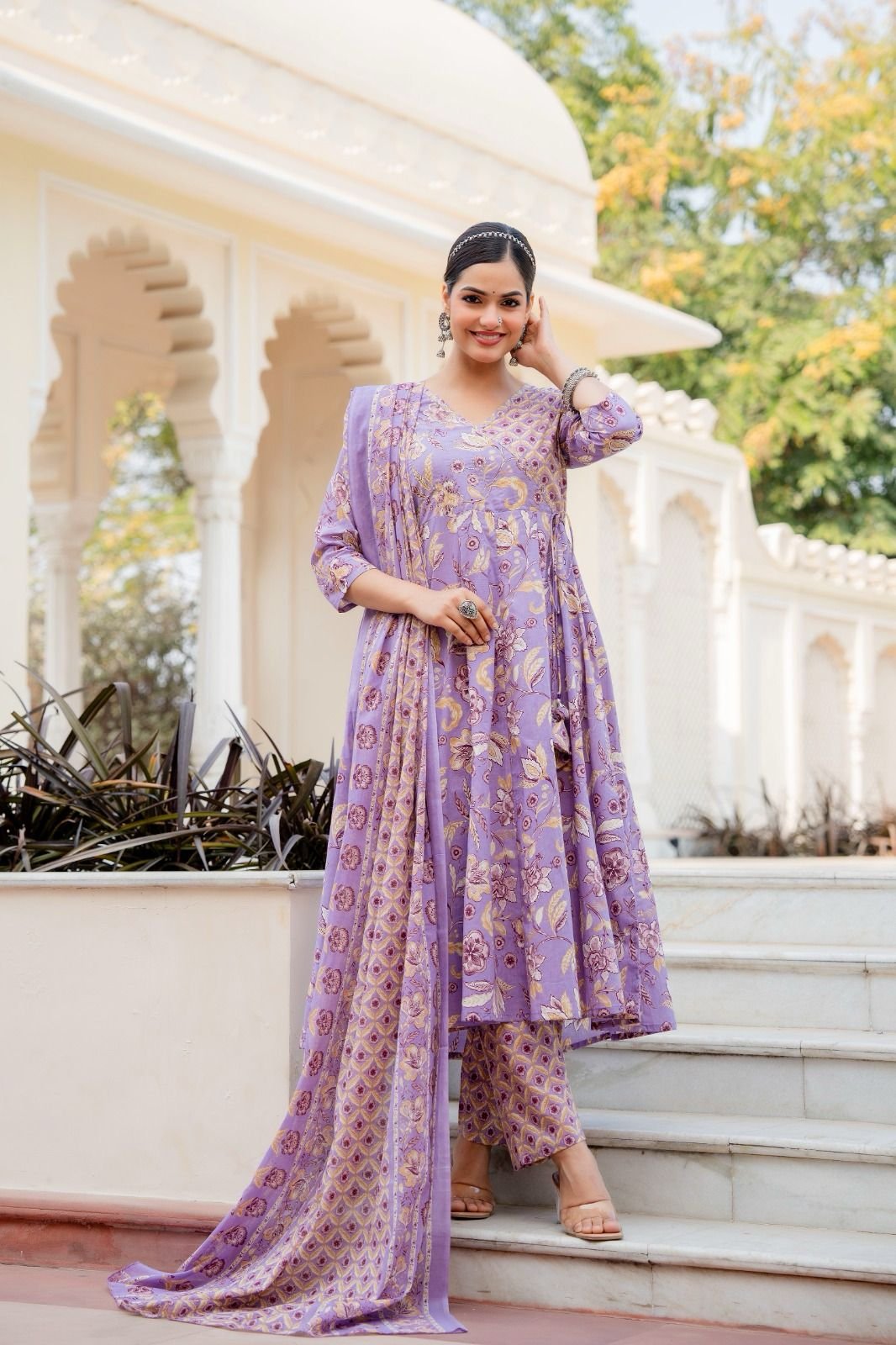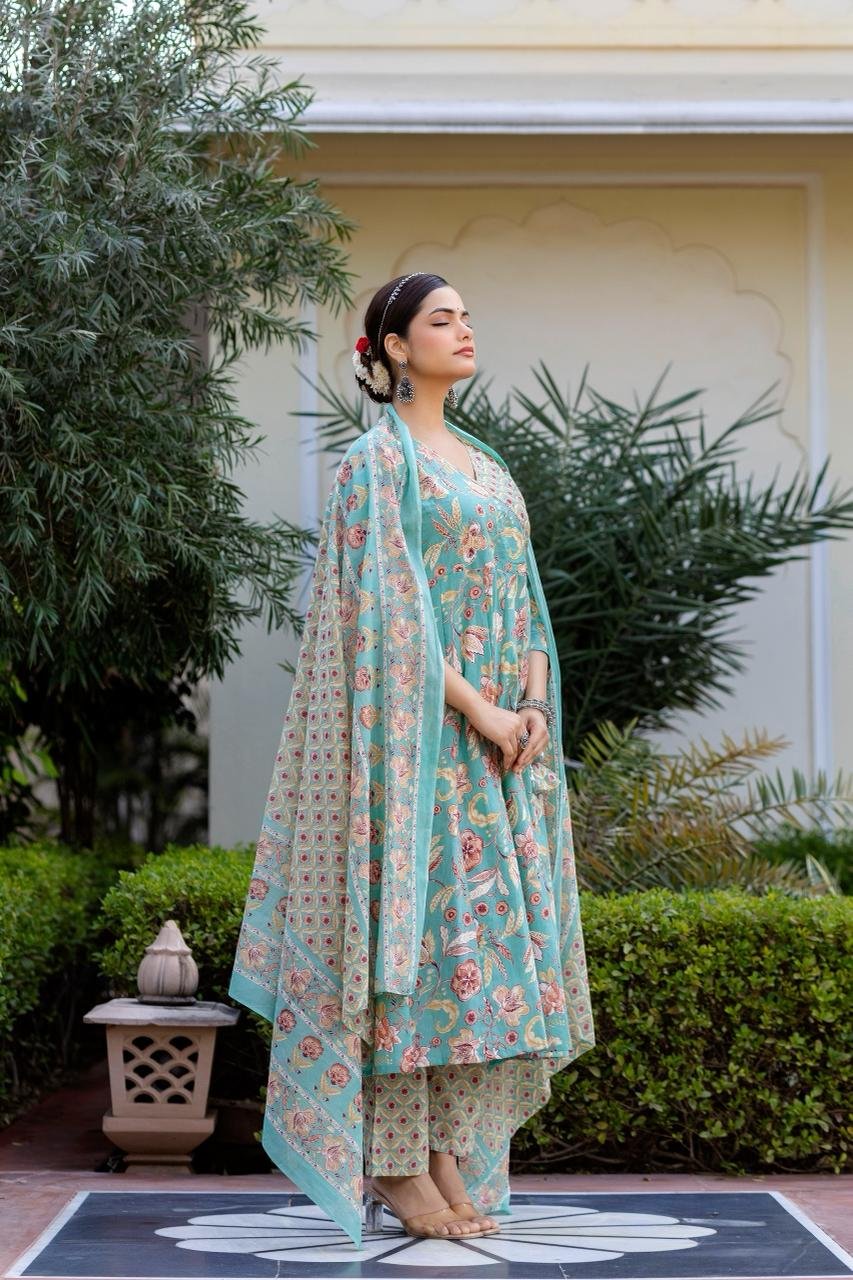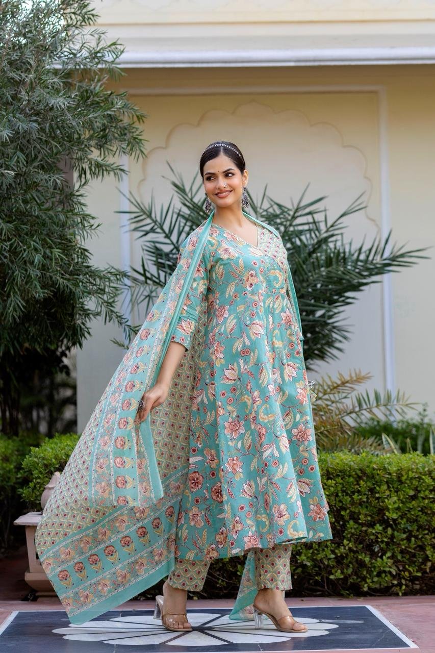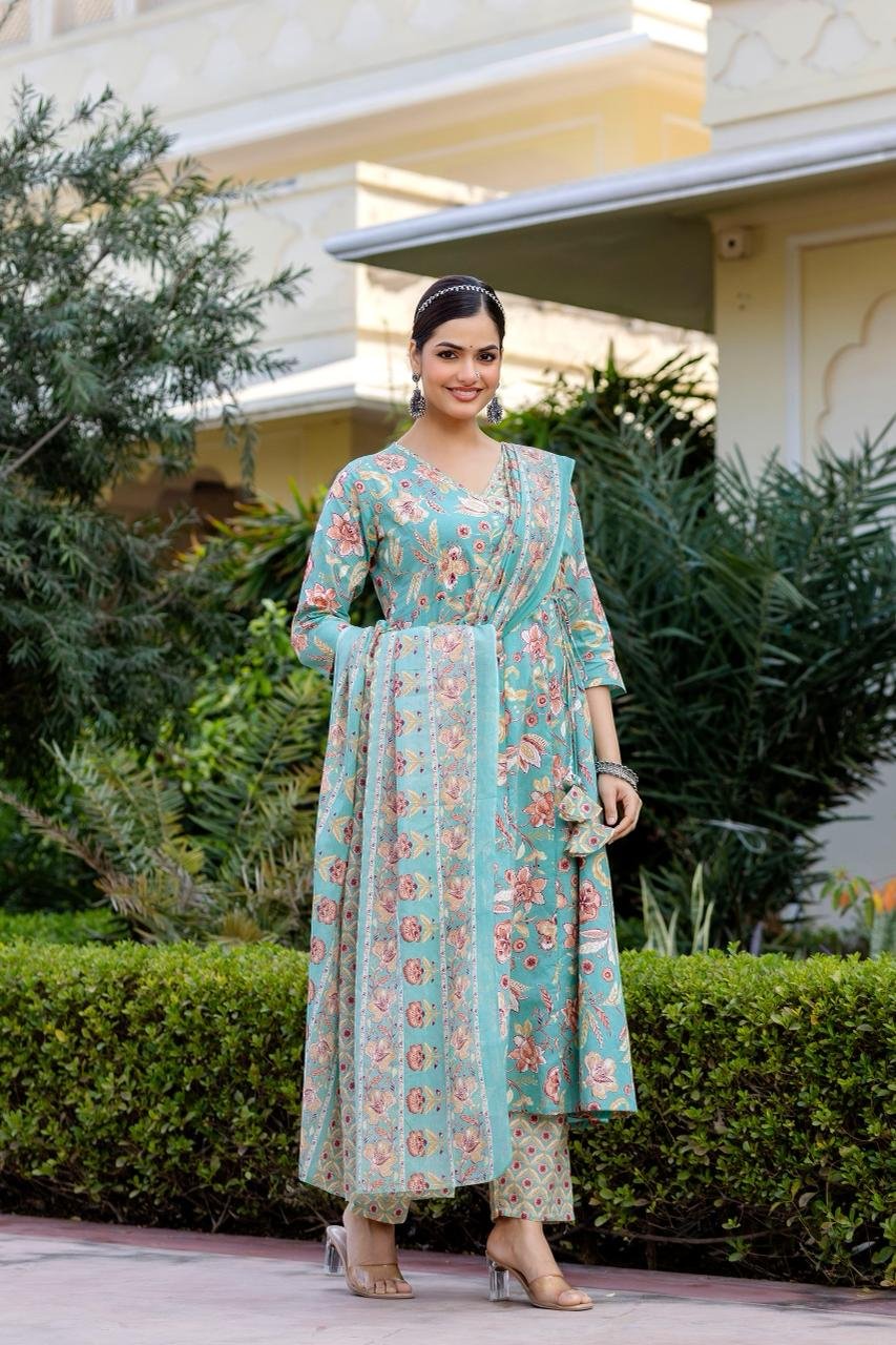 The AK-104 Angrakha Anarkali 3PC Set is designed for women who love timeless ethnic silhouettes with all-day comfort. Crafted from pure cotton fabric, this set offers a soft, breathable feel, perfect for warm weather and long wear.