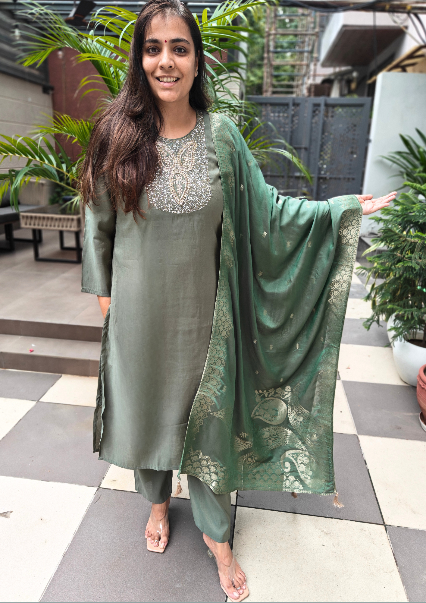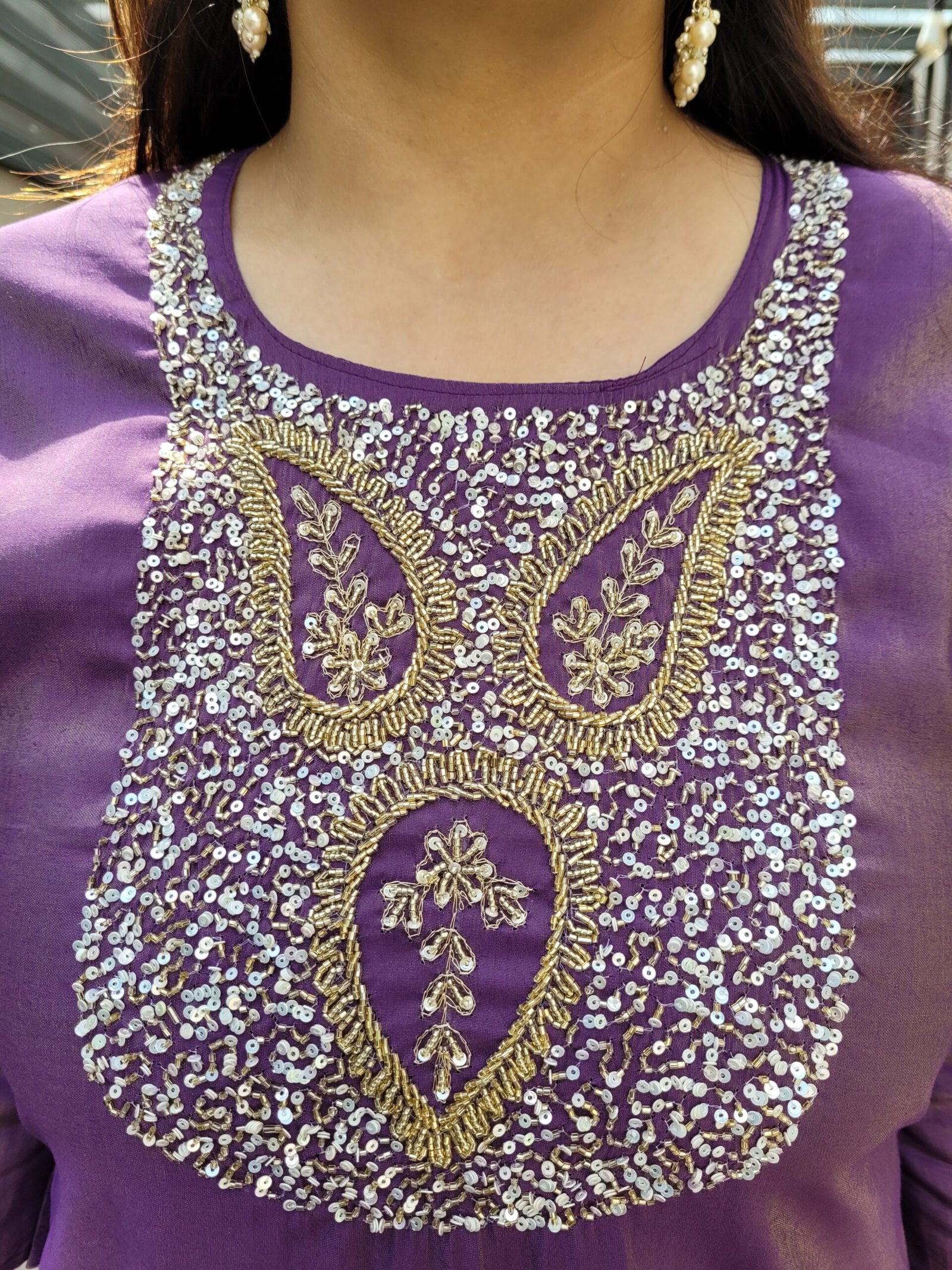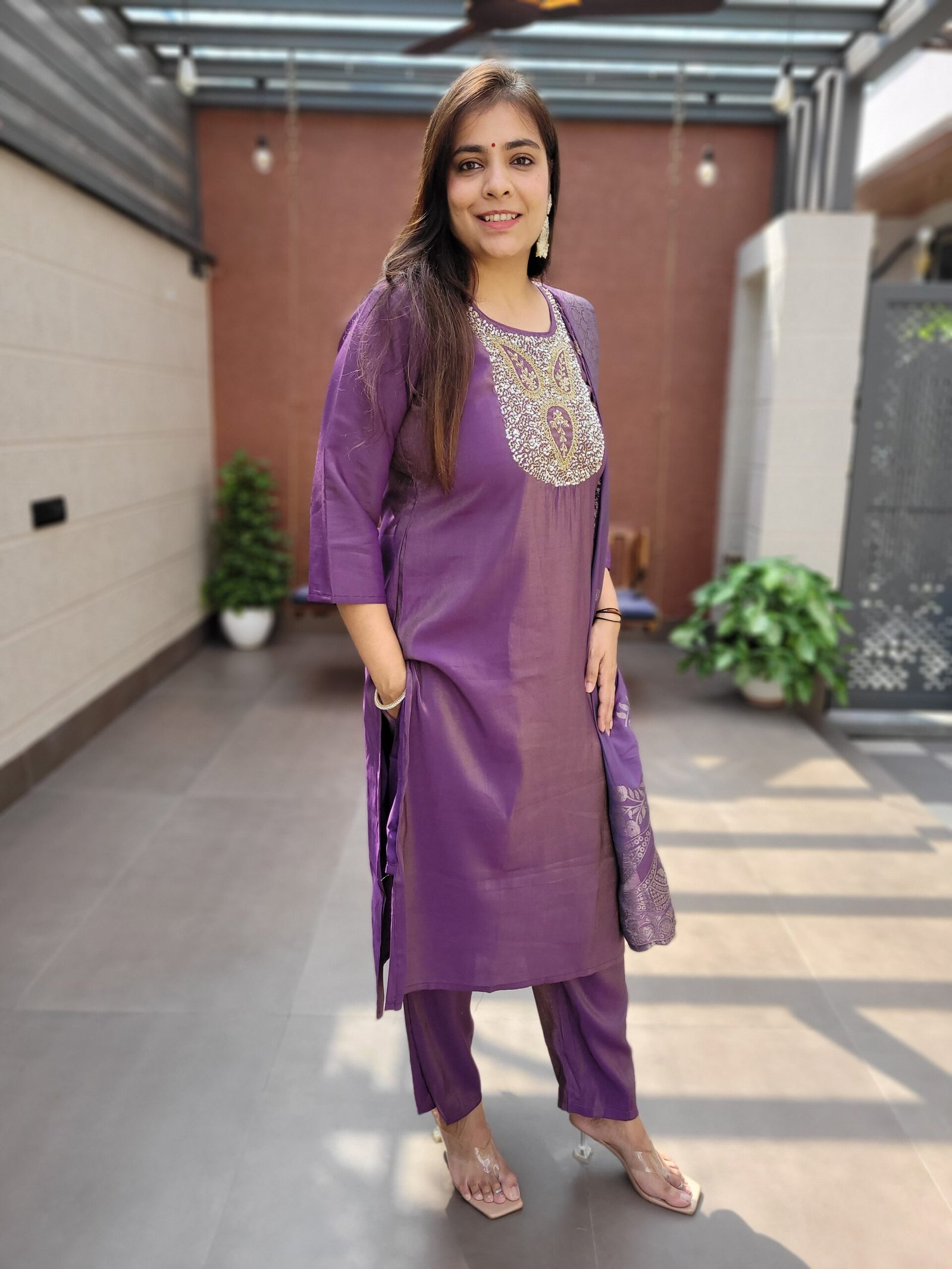Partywear 3PC Suit Set in Roman Shimmer with Heavy Beads & Sequins Work