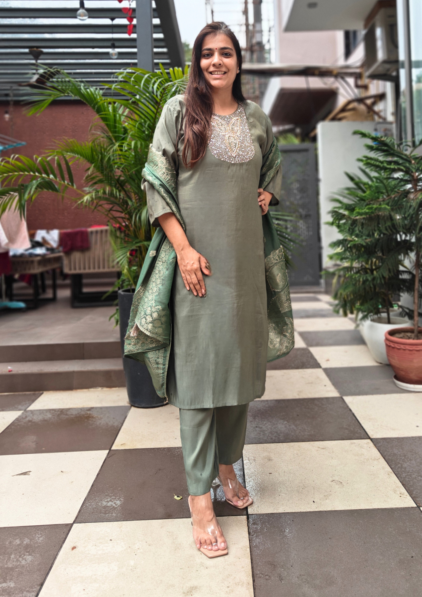Ideal for weddings, celebrations, and semi-formal gatherings, this 3-piece set combines traditional craftsmanship with contemporary elegance for a striking statement ensemble.