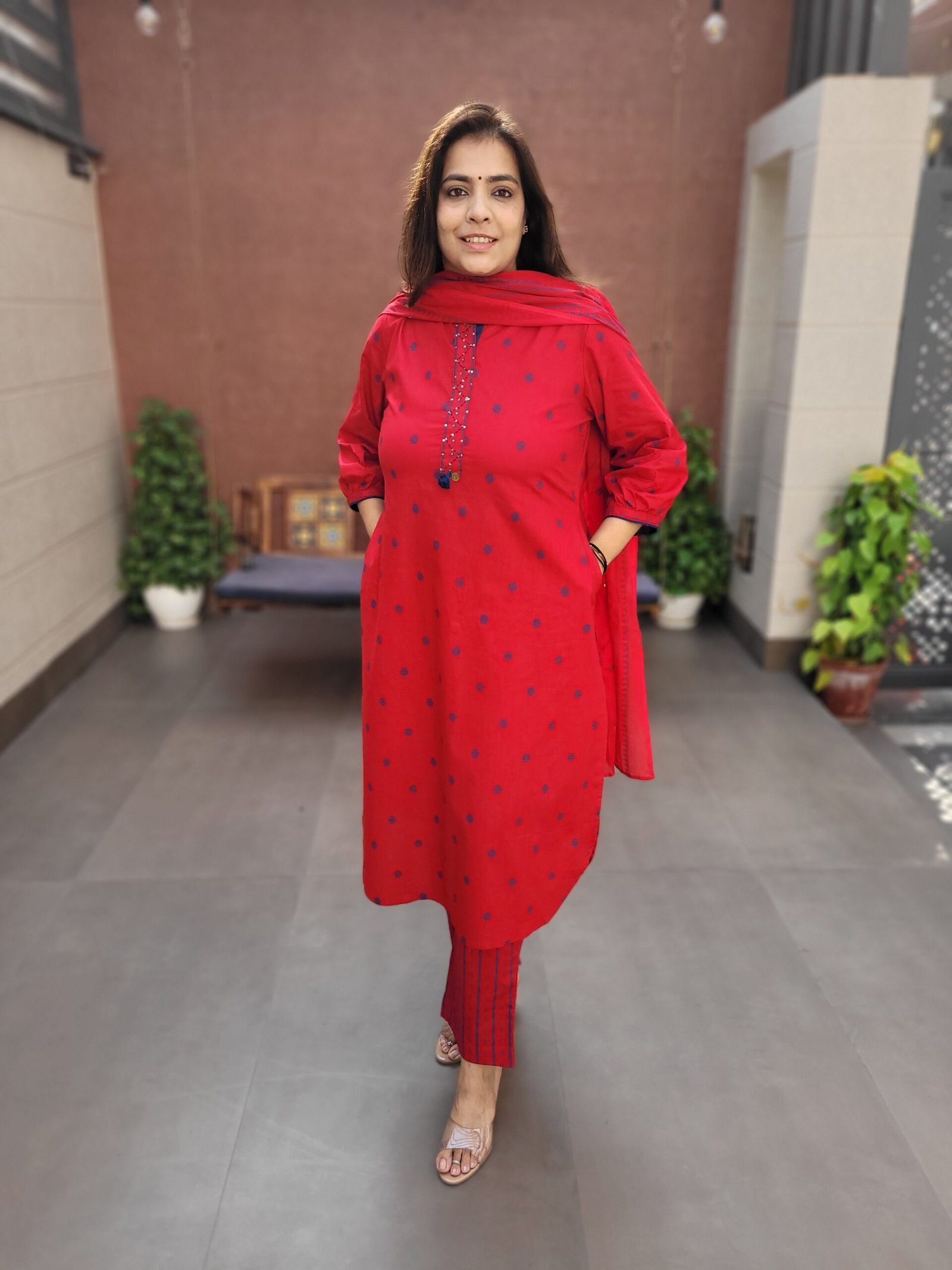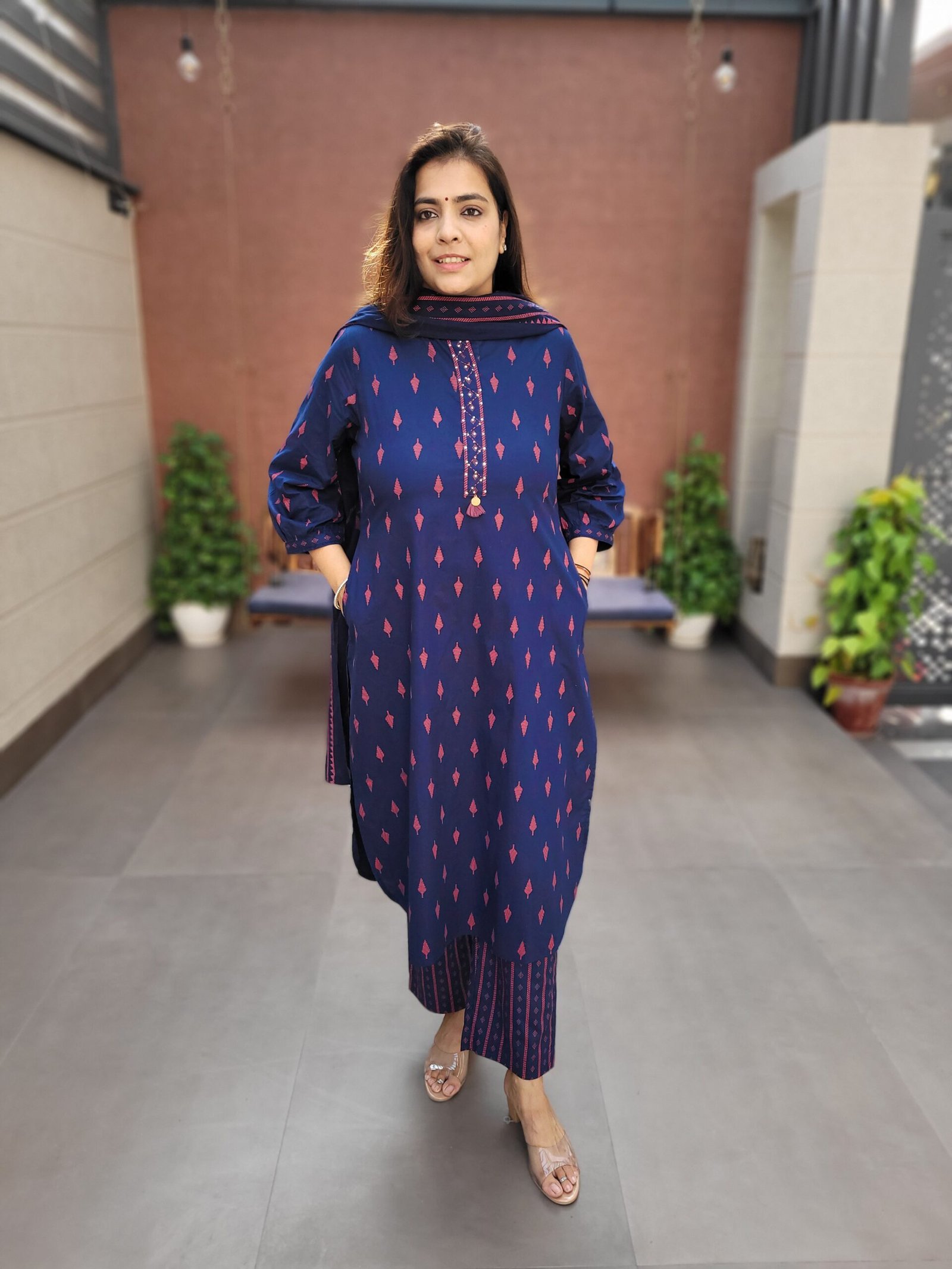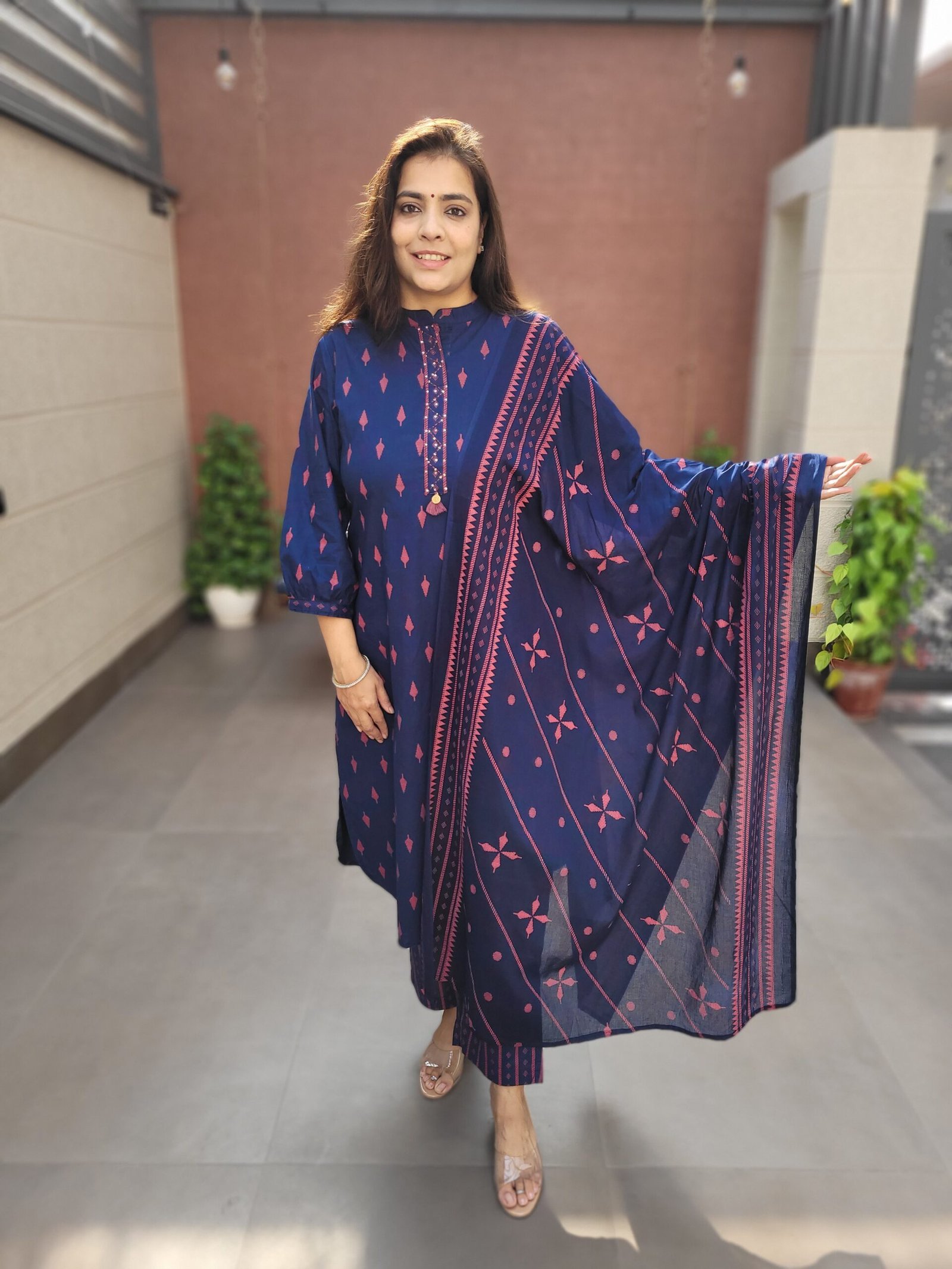 The DU-080 Premium Cotton 3PC Set offers understated elegance with refined handwork and subtle piping details. Designed for comfort and durability, it’s perfect for daily and office wear.