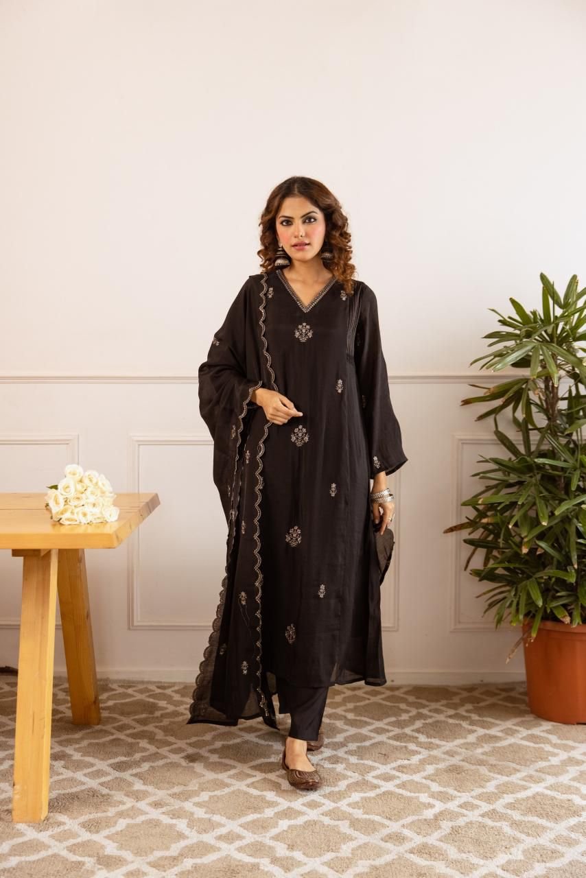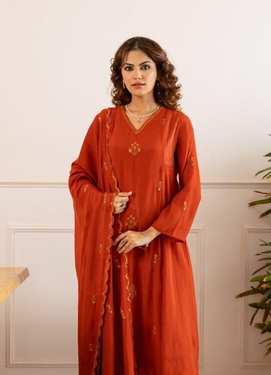 The DU-156 Stylish Mul Chanderi Suit Set is a luxurious statement piece designed to bring effortless elegance to your wardrobe. Made from Premium Mul Chanderi, the fabric features a soft sheen and refined fall that instantly elevates your appearance.