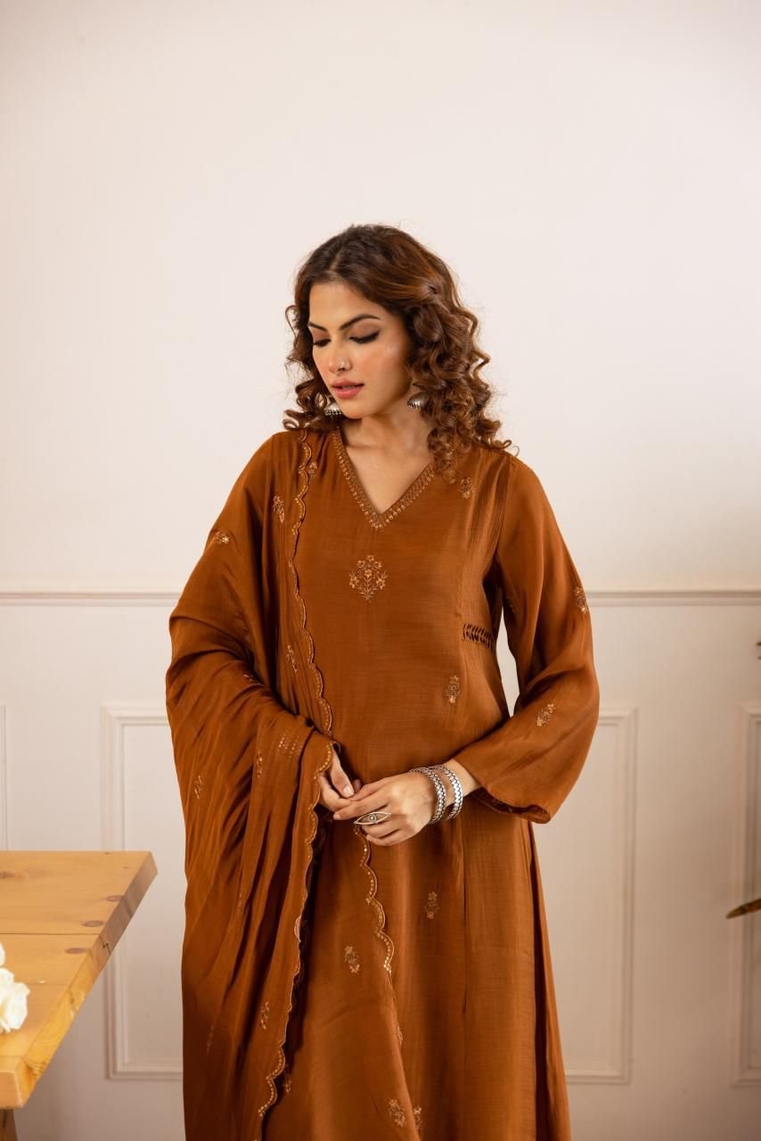 Care Instructions: Dry clean only to preserve embroidery detailing and fabric texture.