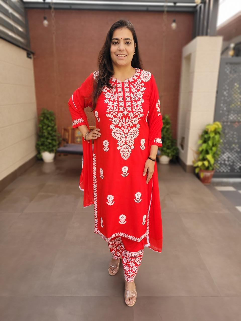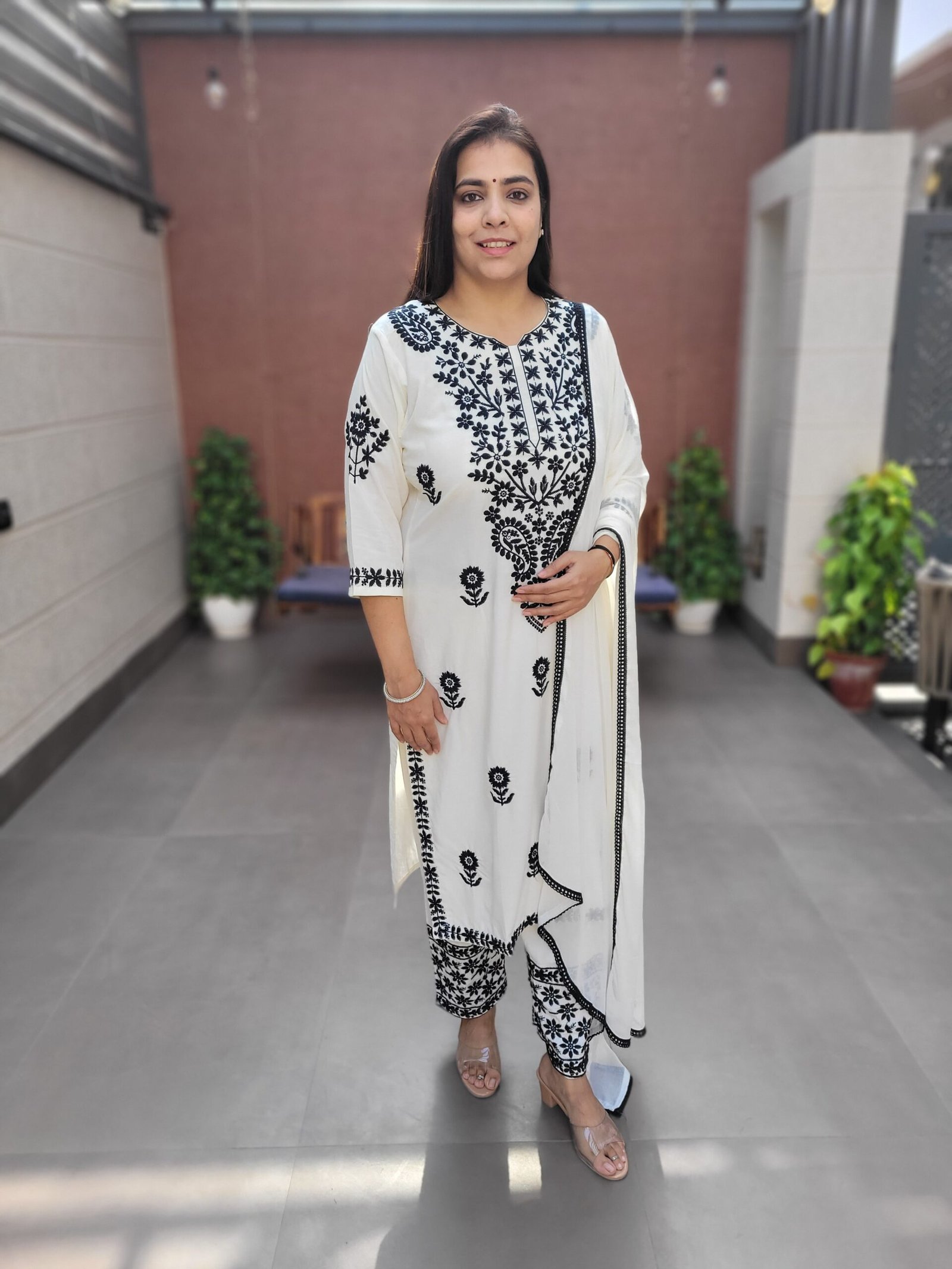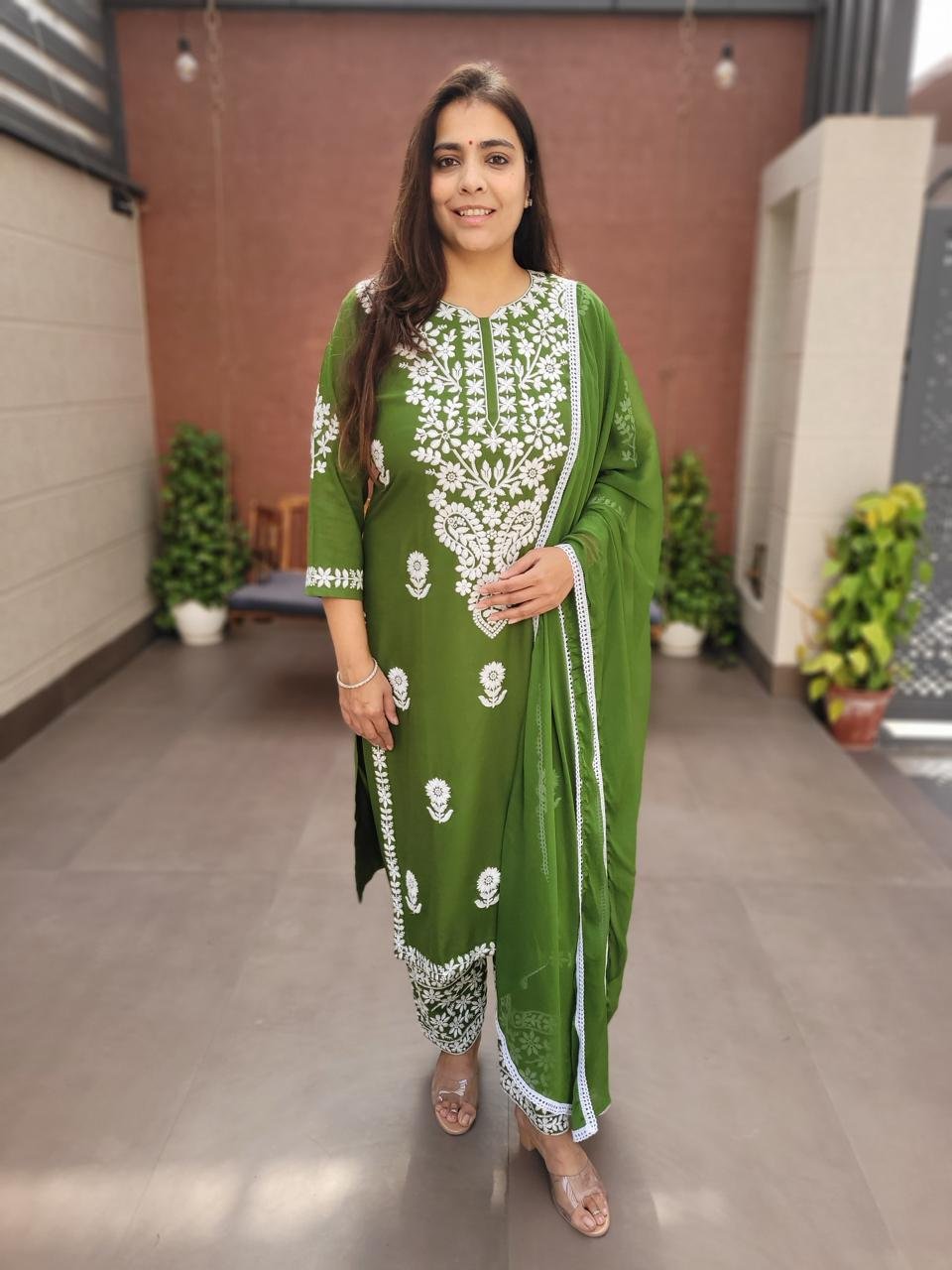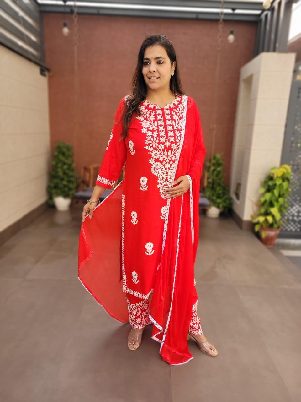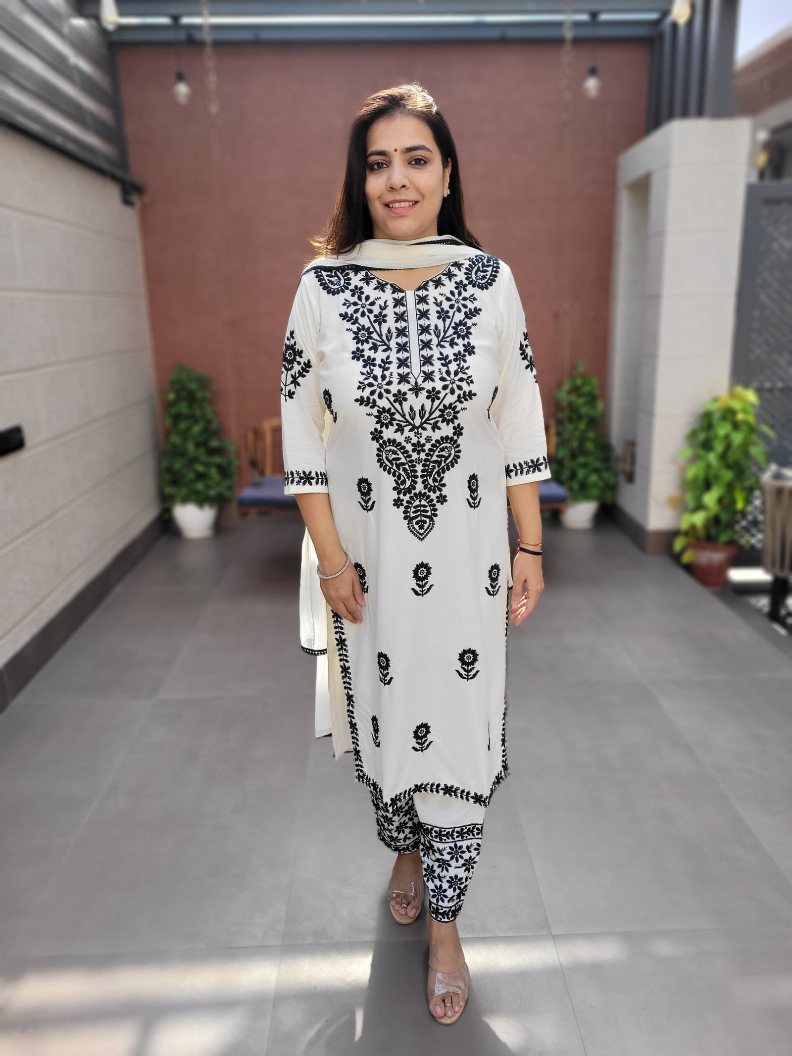 Add a touch of traditional charm to your wardrobe with this Chikanari 3PC Set, made from premium rayon fabric. The intricate Chikanari embroidery on this set enhances its elegance, making it a perfect choice for both casual and semi-formal events. With its soft and breathable fabric, this set ensures comfort all day long while elevating your style quotient.