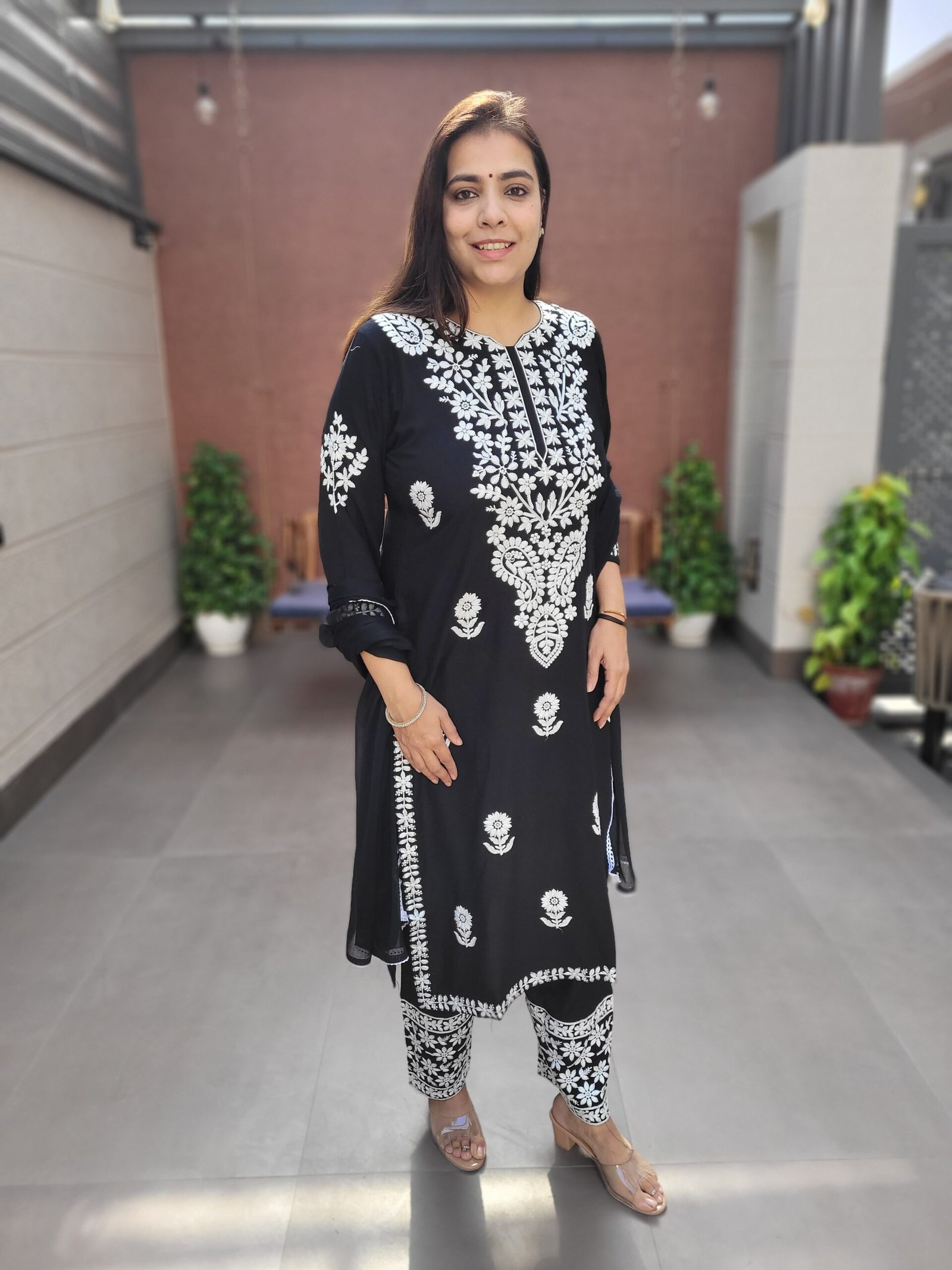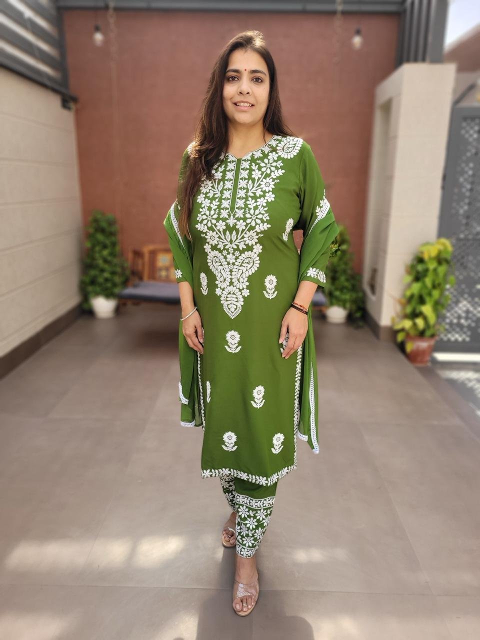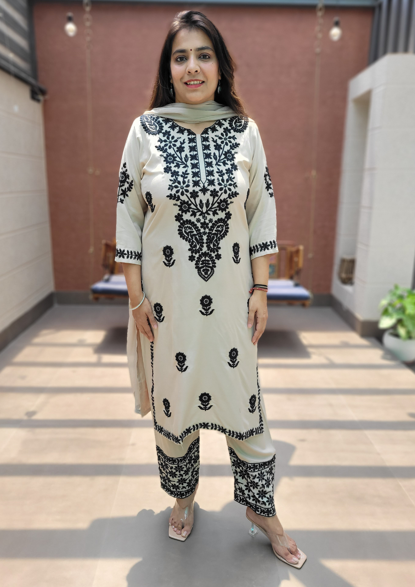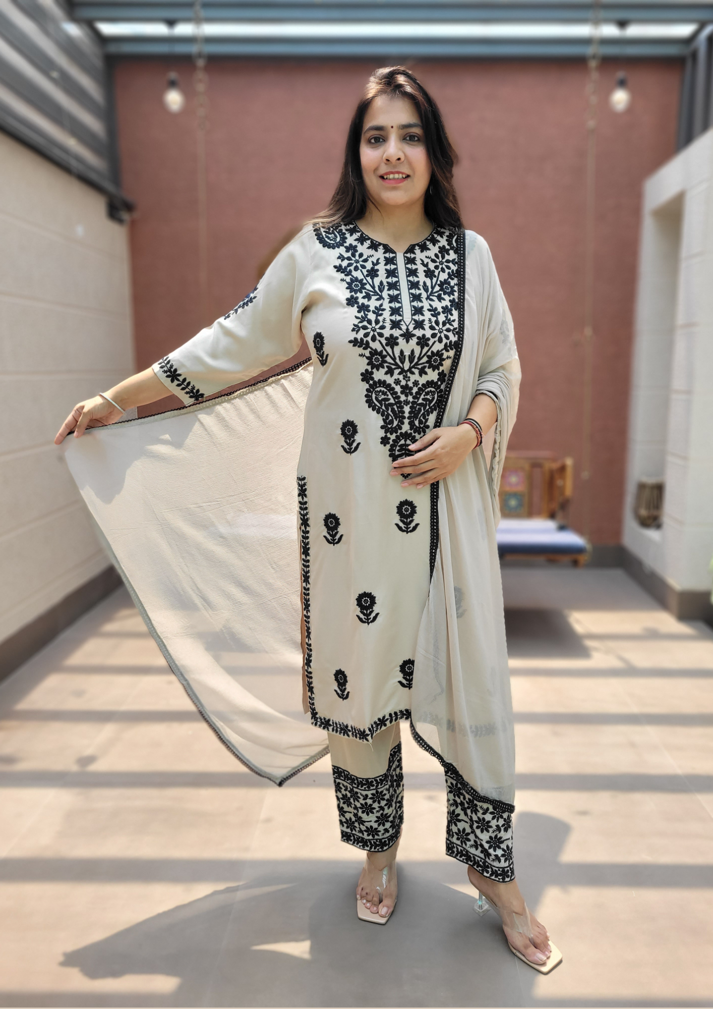 Add a touch of traditional charm to your wardrobe with this Chikanari 3PC Set, made from premium rayon fabric. The intricate Chikanari embroidery on this set enhances its elegance, making it a perfect choice for both casual and semi-formal events. With its soft and breathable fabric, this set ensures comfort all day long while elevating your style quotient.