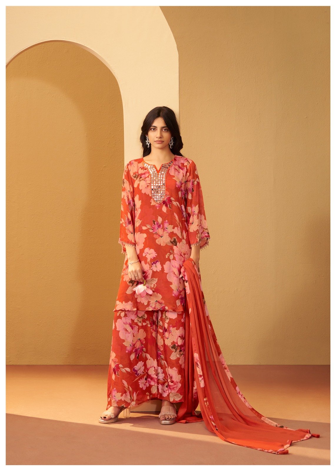 The DU-514 Pure Chinon Divider 3PC Suit Set is a beautiful blend of elegance and style. Crafted using premium pure chinon fabric, the set has a smooth drape and luxurious shine that instantly elevates your festive wardrobe. The kurta features original mirror embellishments paired with intricate hand-done beads work, giving it a refined and premium handcrafted appeal.