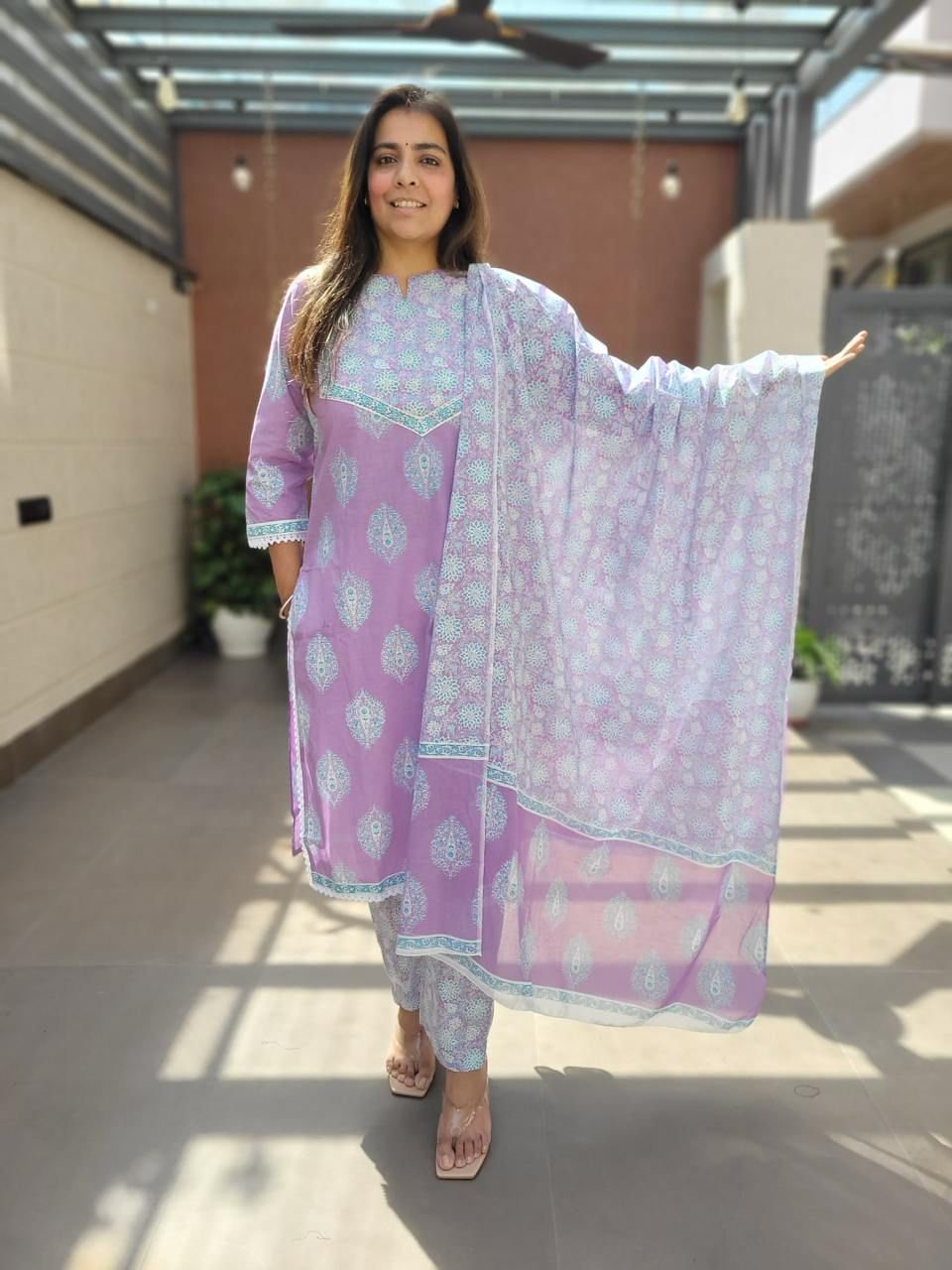 Paired with matching bottoms and a coordinated dupatta, this 3PC set is perfect for office wear, festive day functions, casual gatherings, and ethnic daily styling. The graceful purple shade adds sophistication and versatility, making it easy to accessorize for both subtle and statement looks.