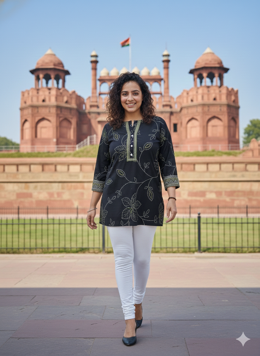 The TU-076 Rayon Tunic offers effortless style with delicate embroidery on soft flowing fabric. Designed for comfort and versatility, it pairs well with both ethnic and western bottoms.