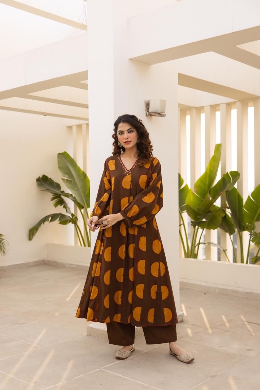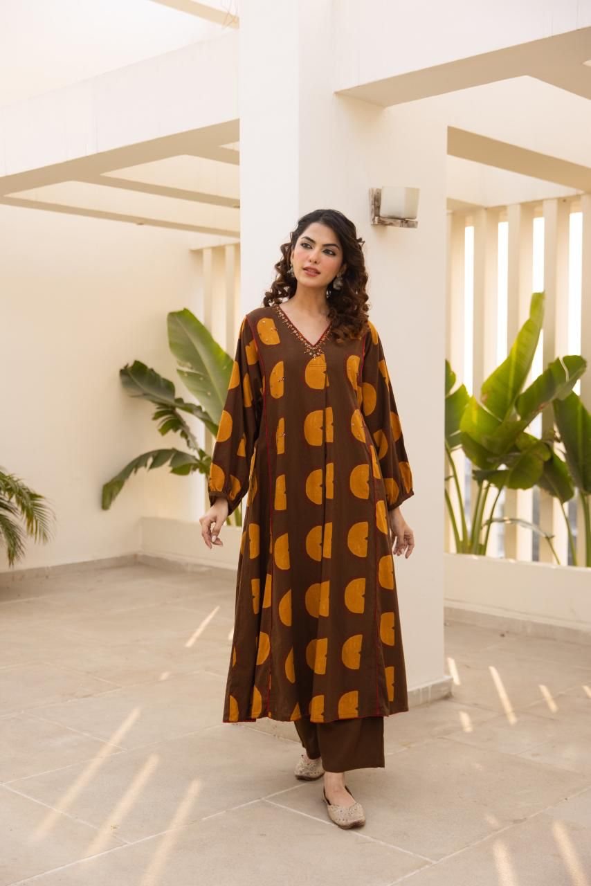 The kurta features delicate handwork on the yoke, adding a refined ethnic touch while maintaining a minimal, versatile look. Perfect for daily wear, office casuals, and relaxed outings, this set balances comfort and style with ease.