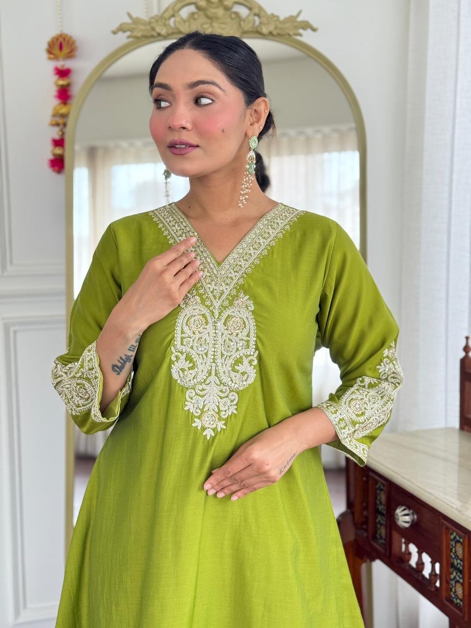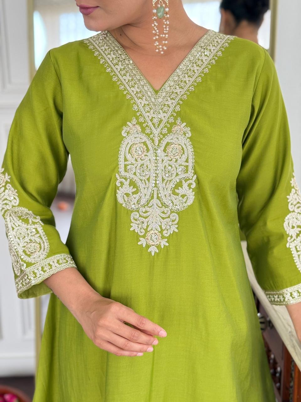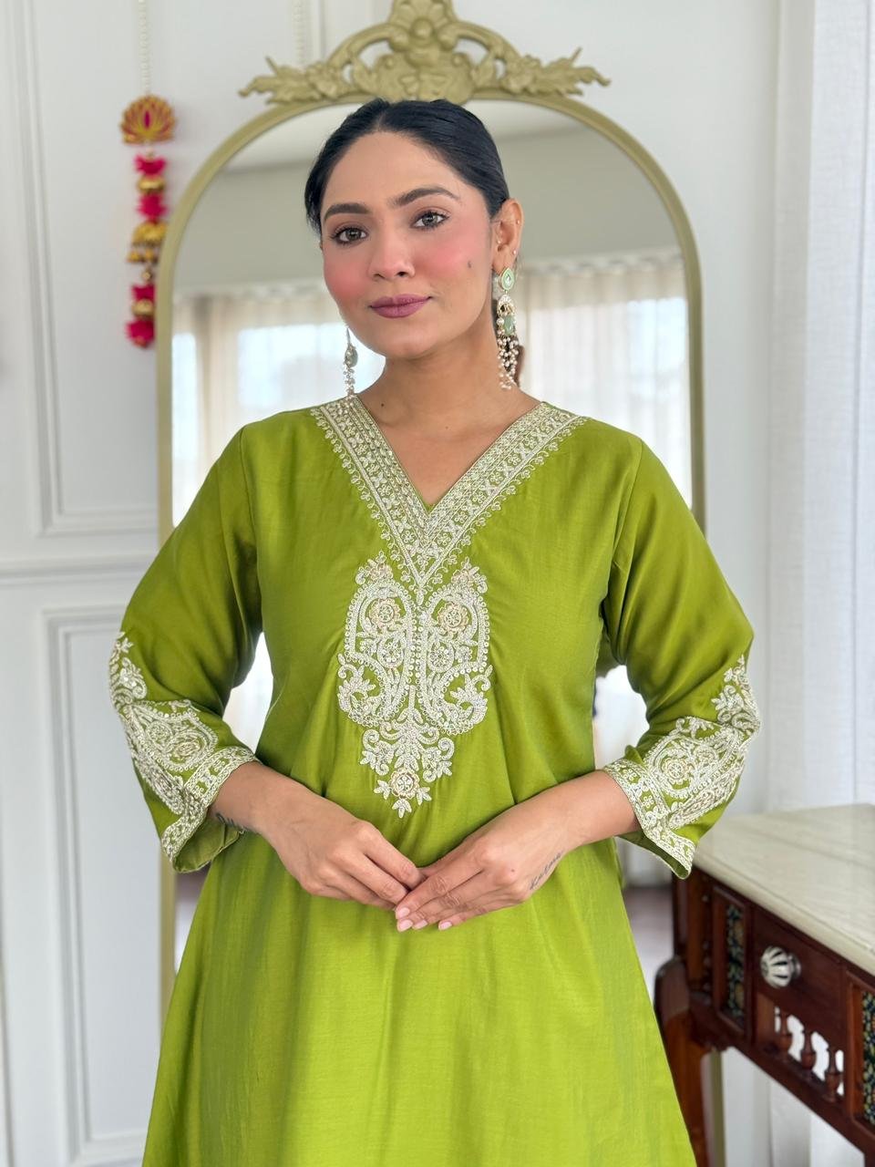 Care Instructions: Dry clean or gentle hand wash separately to preserve fabric shine and embroidery detailing.