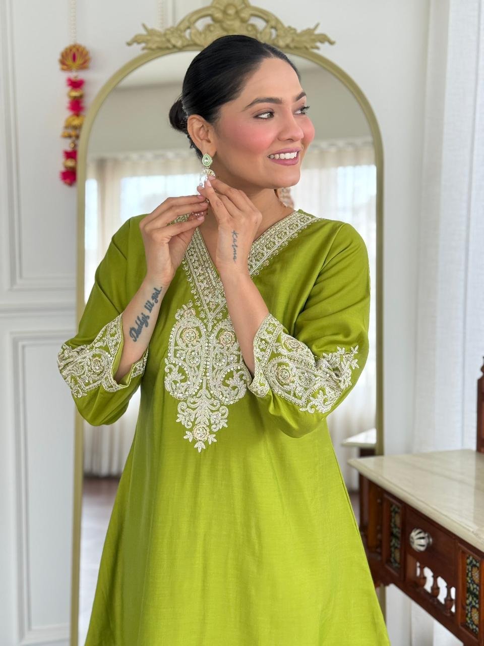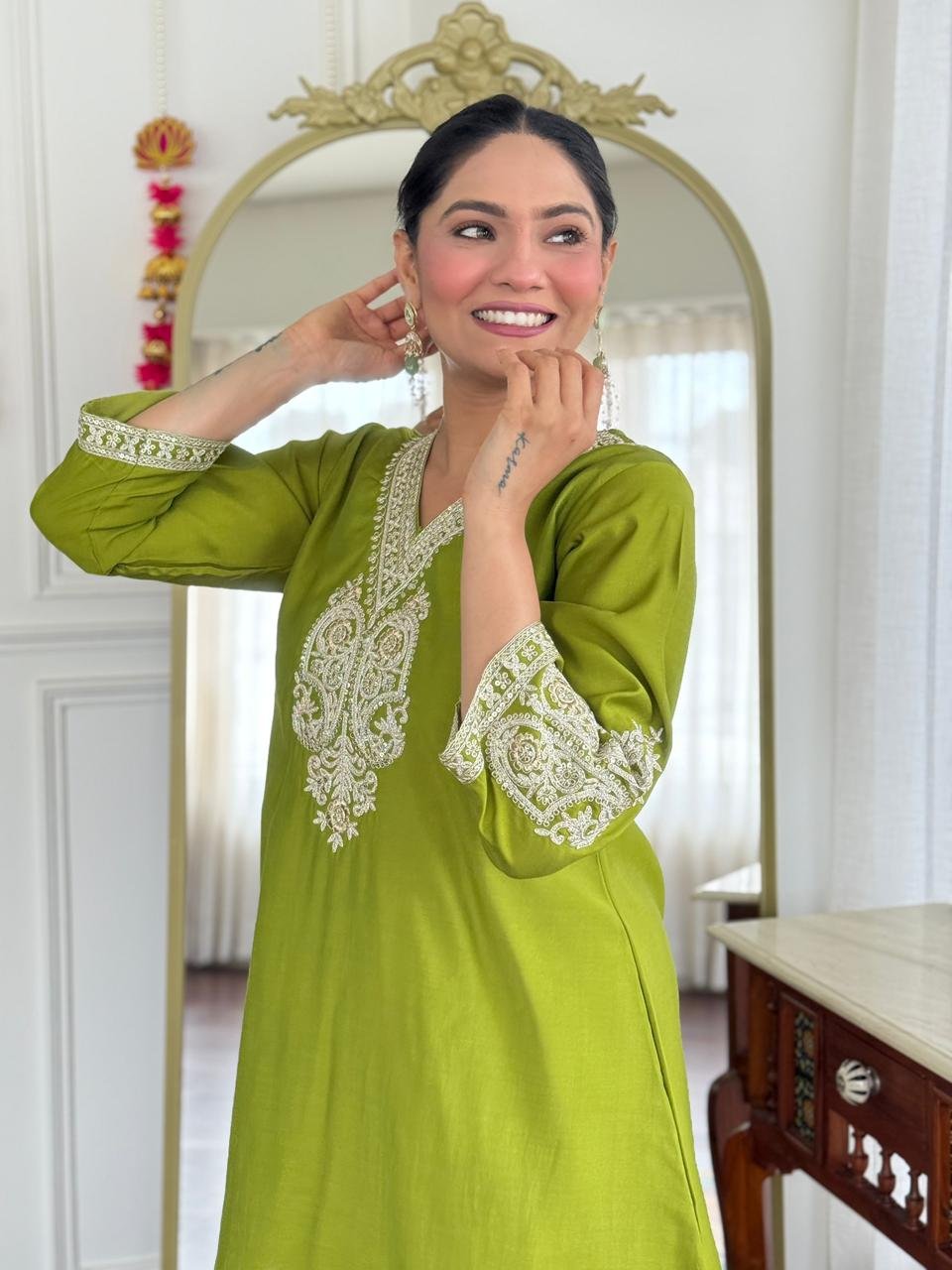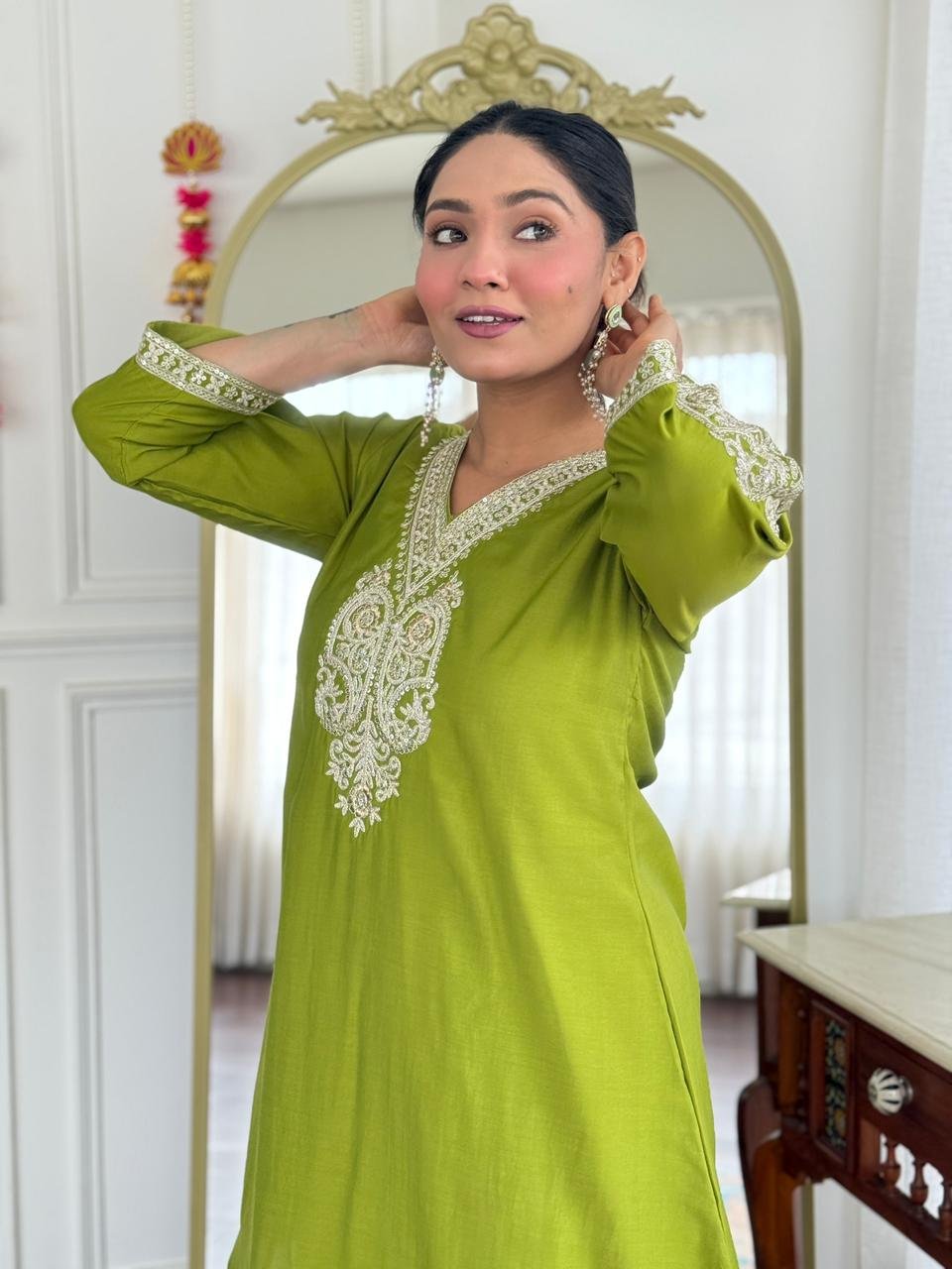 Care Instructions: Dry clean or gentle hand wash separately to preserve fabric shine and embroidery detailing.