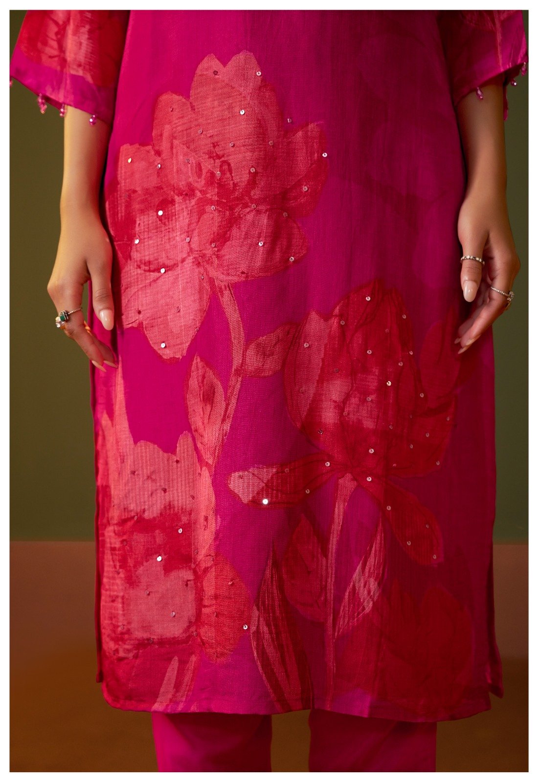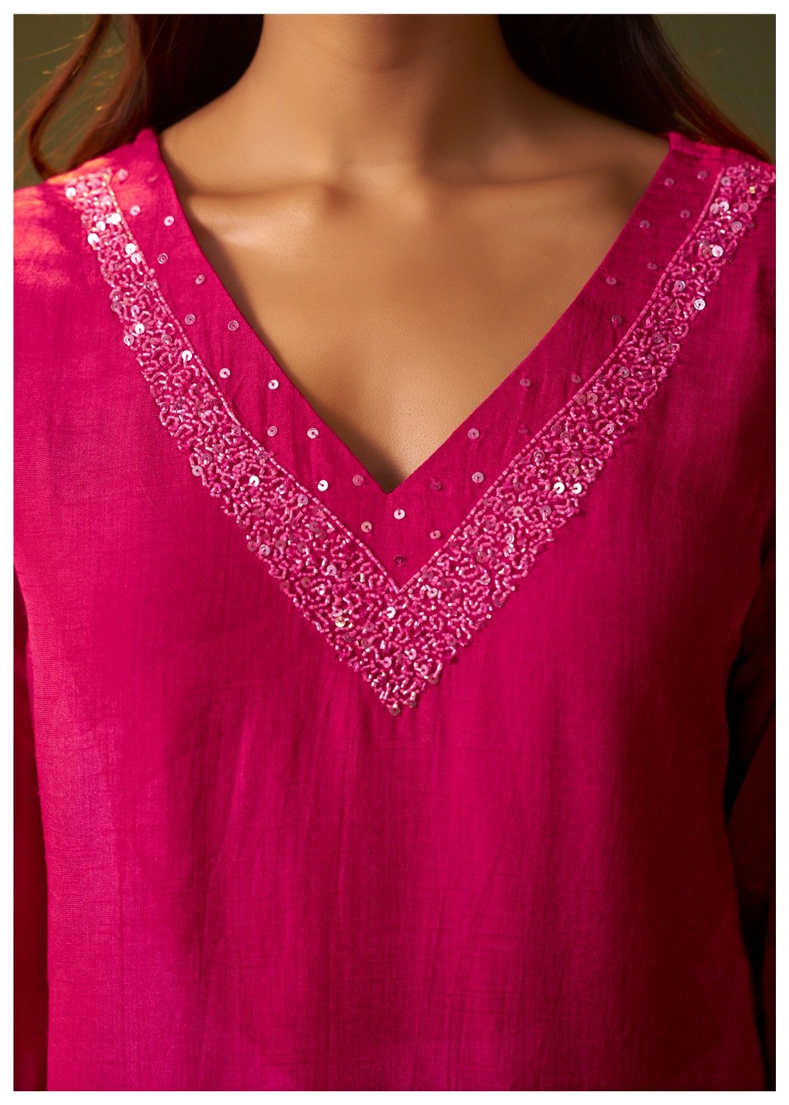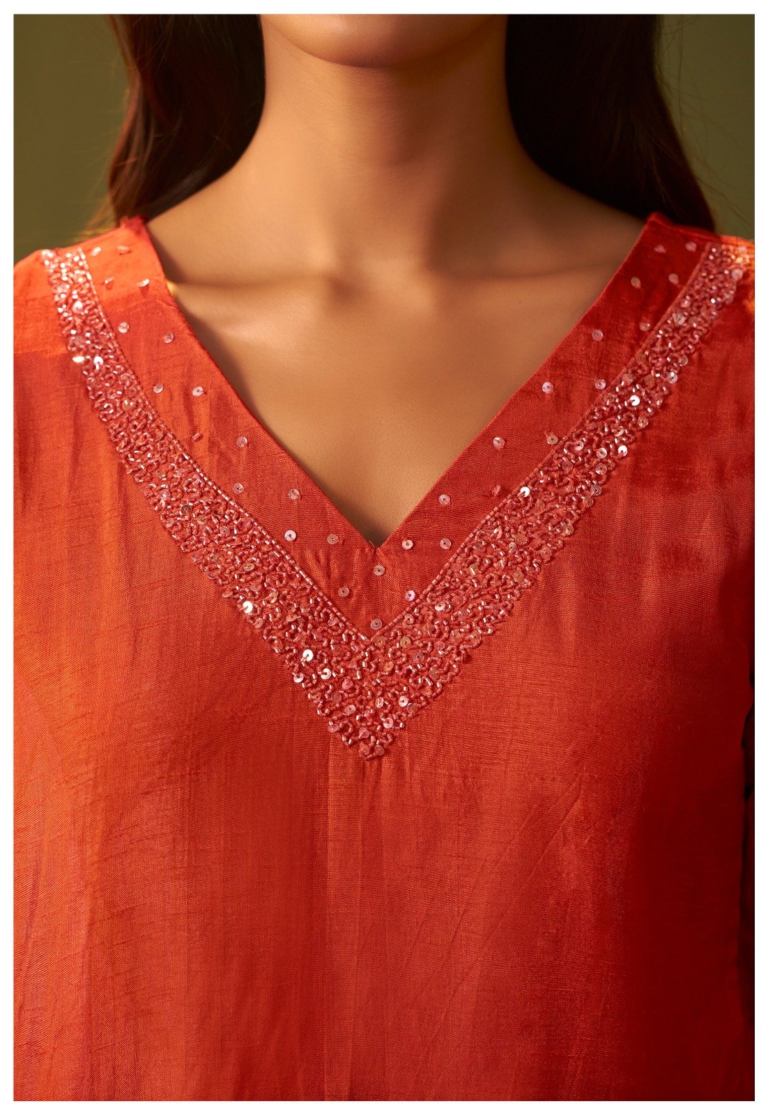 Care Instructions: Dry clean recommended to maintain handwork and fabric sheen.