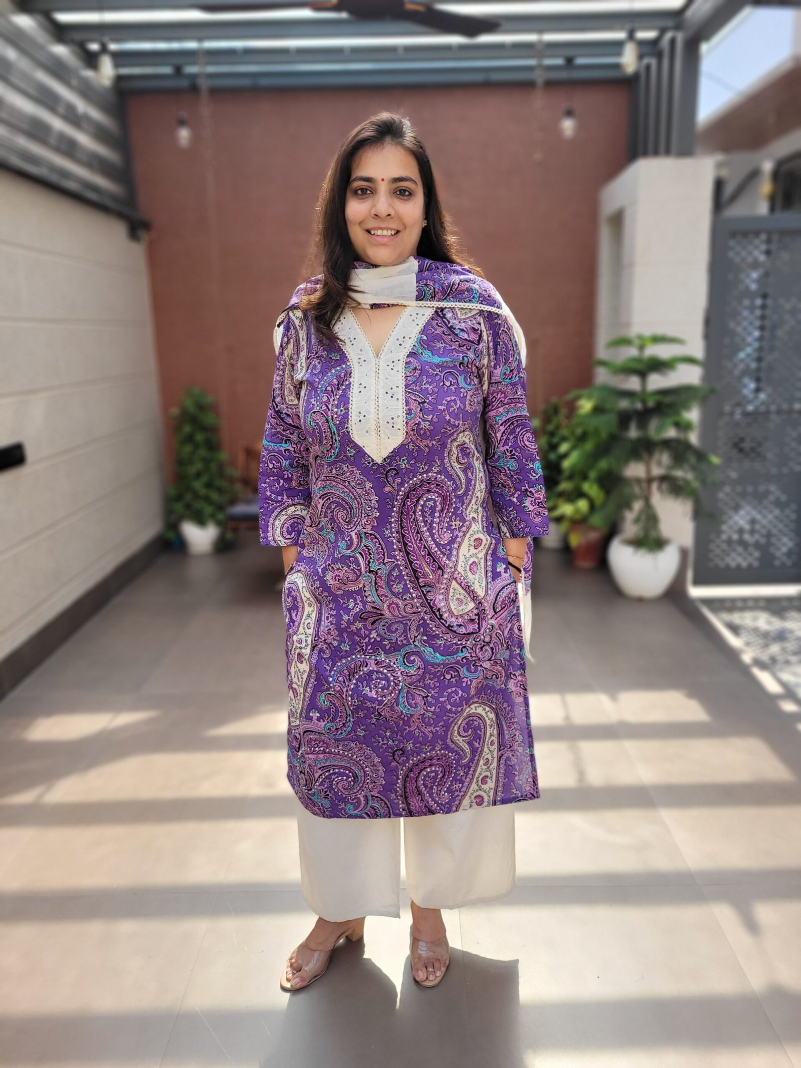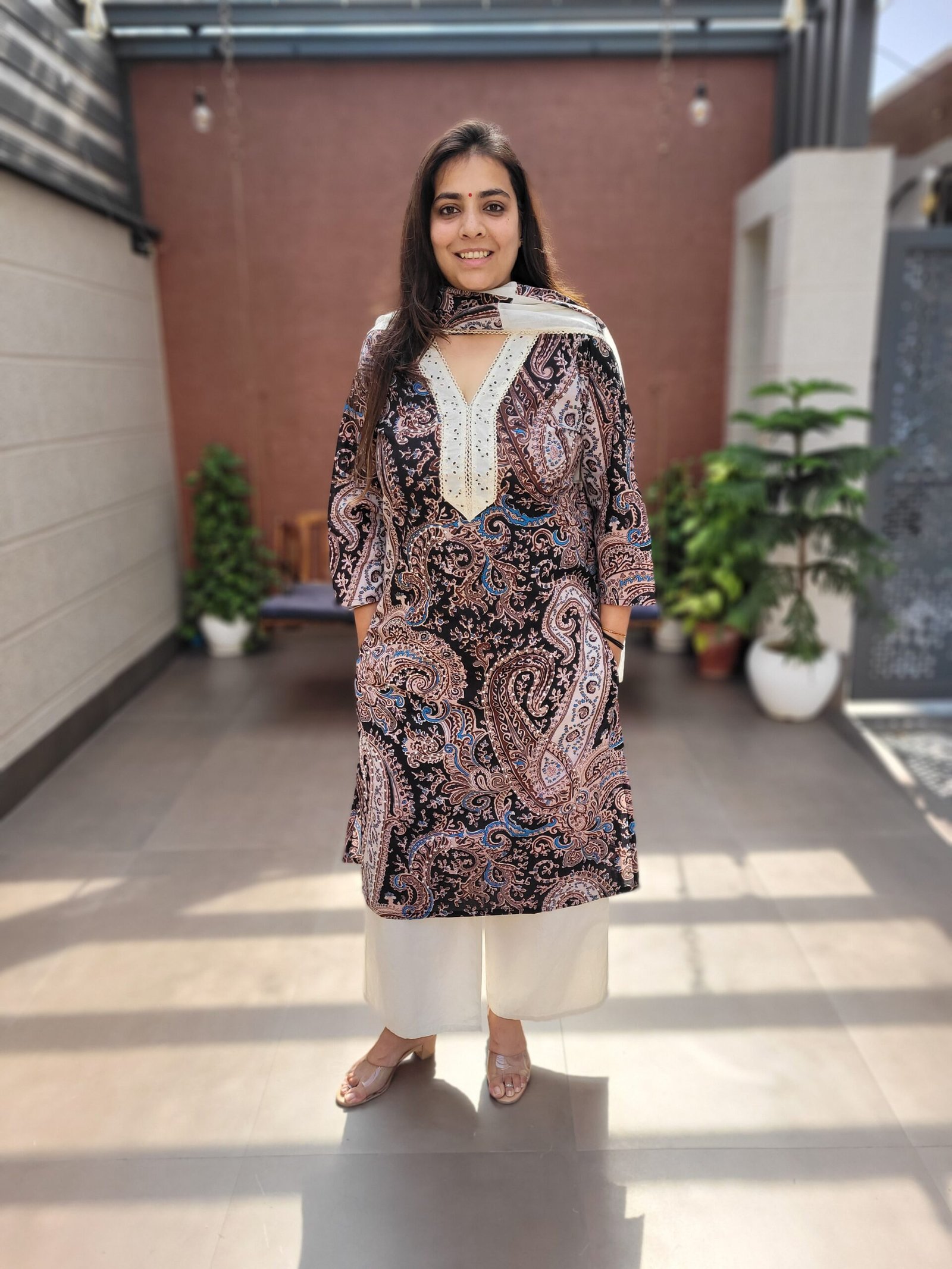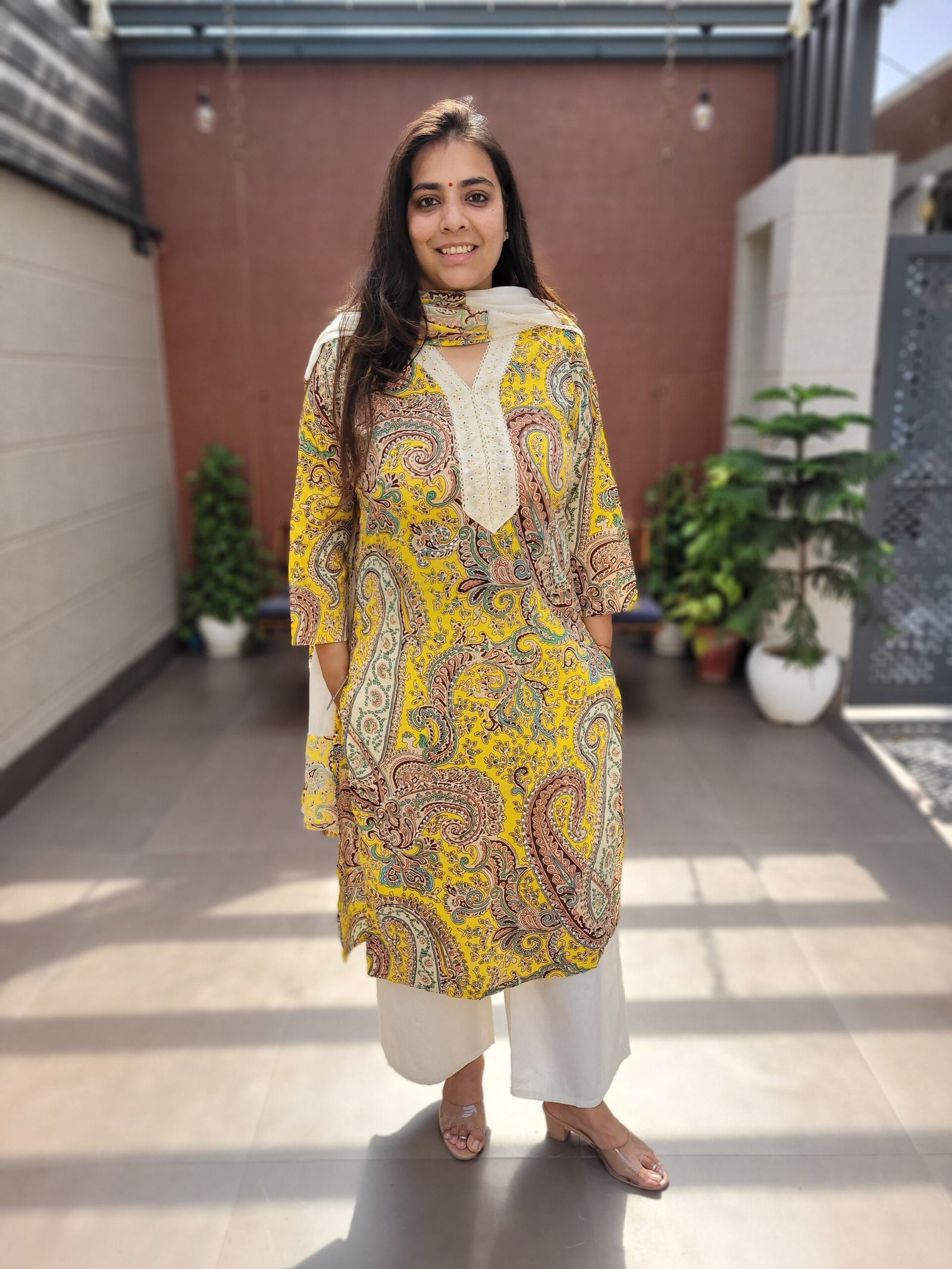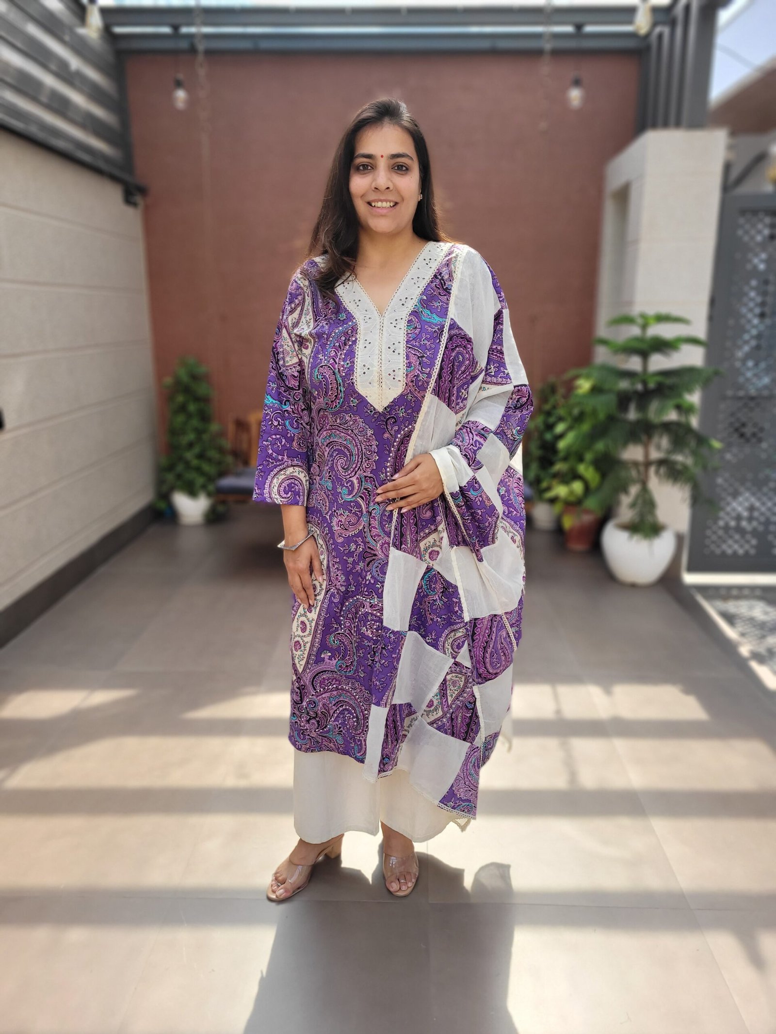The patchwork dupatta adds a creative touch, making this set ideal for festive wear, casual ethnic outings, and elegant daytime events.