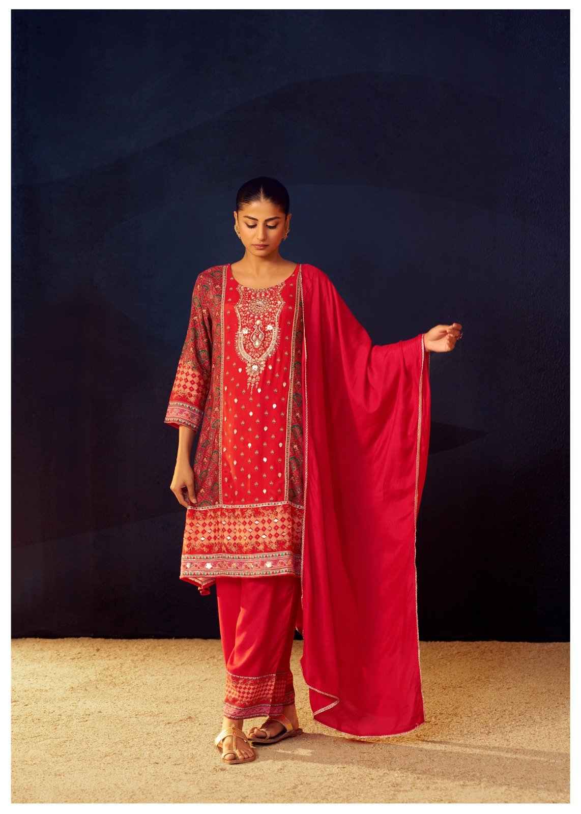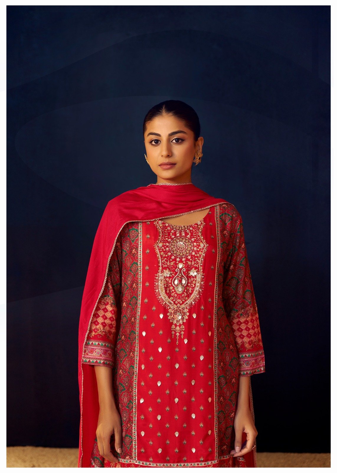 The coordinated 3PC set includes complementary pieces that allow versatile styling while giving a complete, polished look. The vibrant red shade adds warmth and festive flair, perfect for making a statement at any occasion. Pair with statement jewellery, heels, or a chic clutch to enhance your ensemble and create a memorable impression.