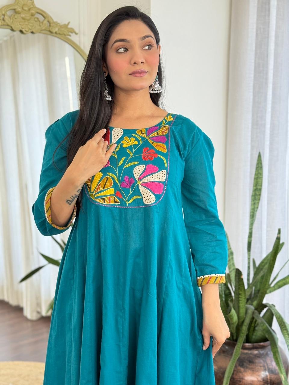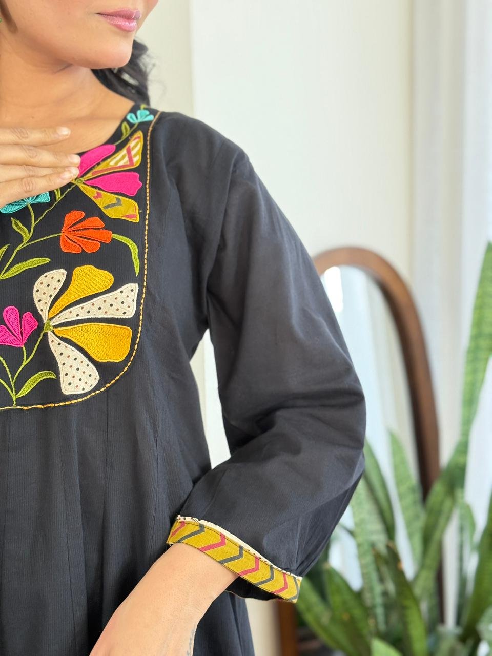 Care Tips: Gentle hand wash recommended to maintain embroidery and fabric quality.