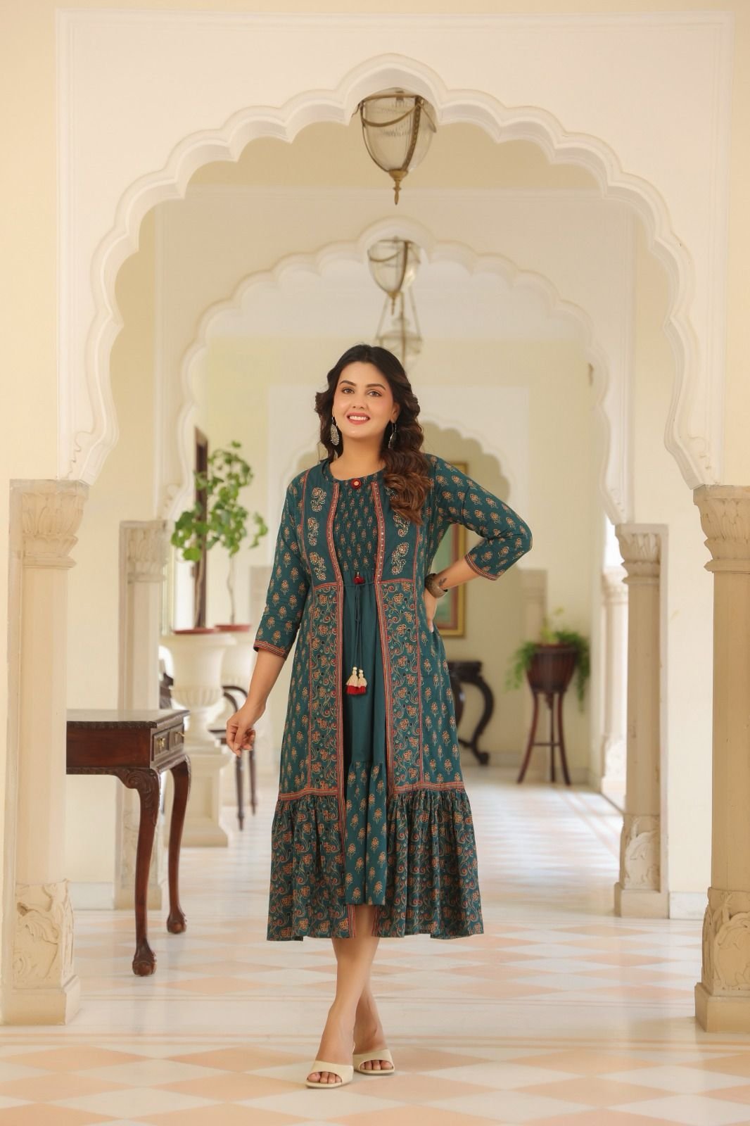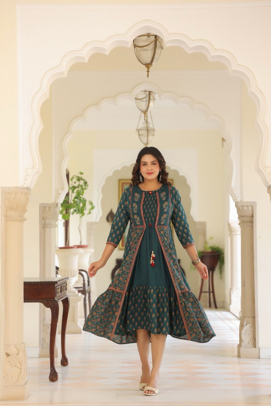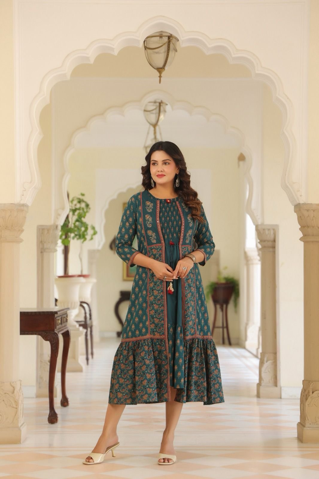Perfect for casual outings, festive gatherings, and stylish day events, this outfit offers a unique combination of ethnic charm and modern design.