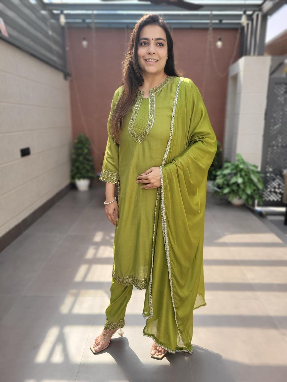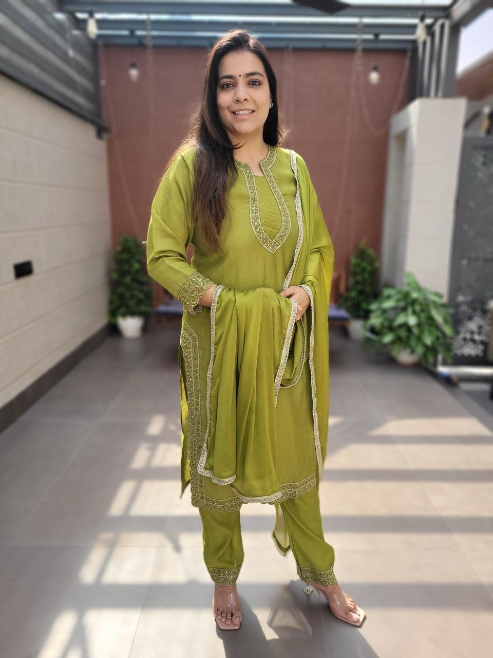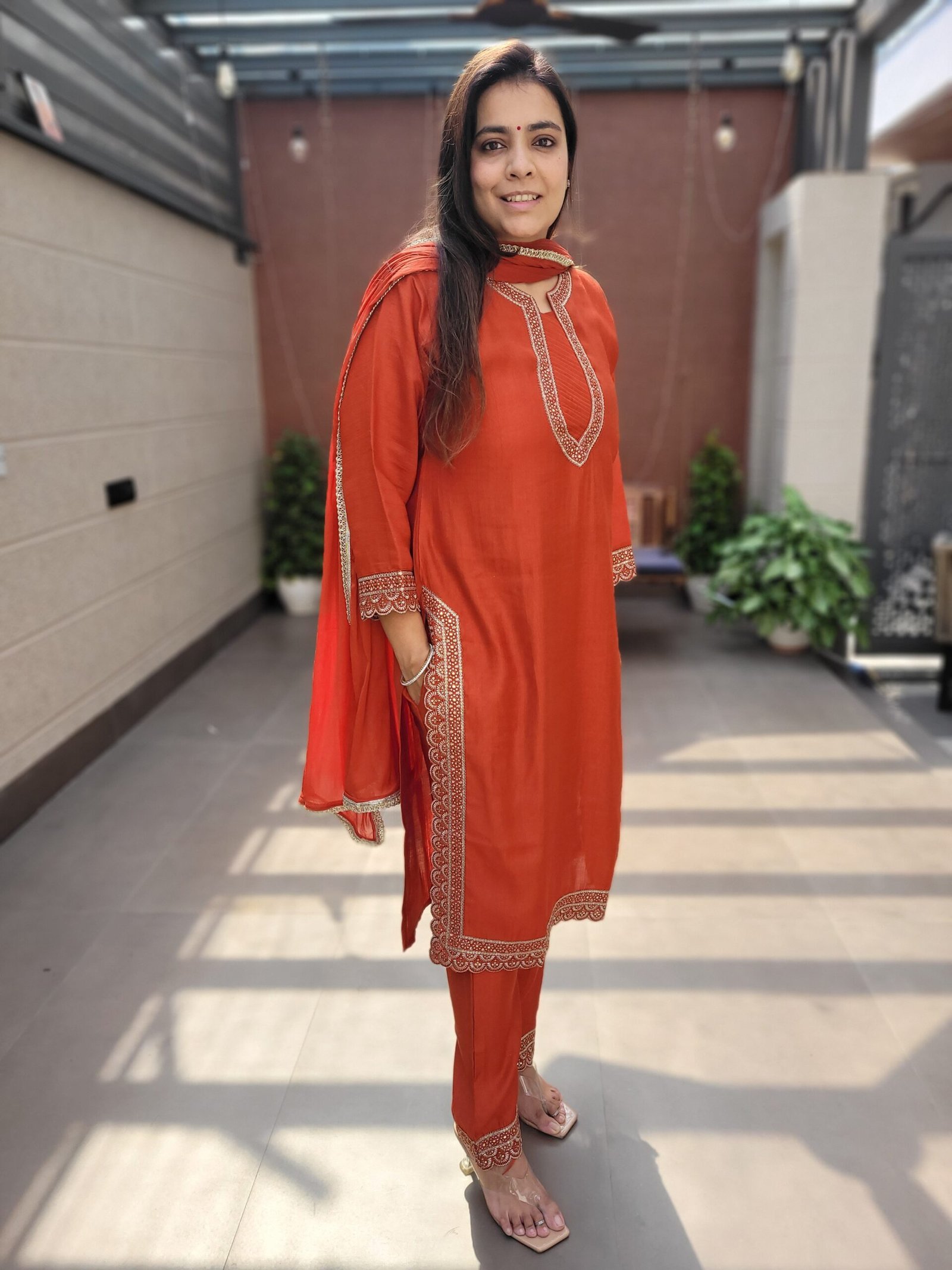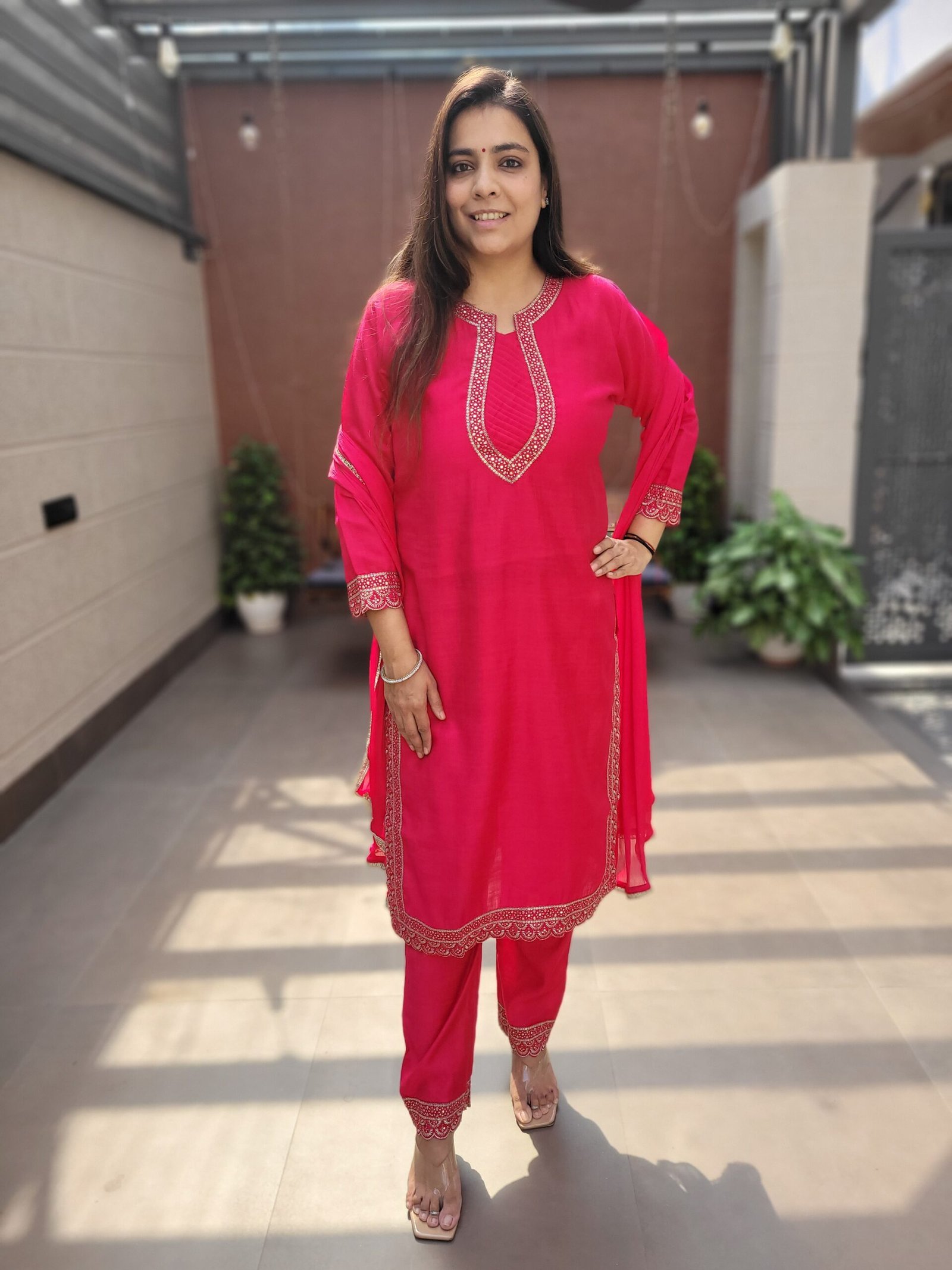 The DU-616 Stylish 3PC Suit Set is crafted from soft, breathable viscose silk slub, offering a luxurious feel and comfortable fit. The kurta features intricate zari and sequins embellishments, paired with a coordinated chinon dupatta adorned with delicate lace work and a matching bottom for a complete, graceful ensemble. Ideal for weddings, festive gatherings, and semi-formal occasions, this 3-piece set combines traditional craftsmanship with modern elegance, making it a perfect choice for stylish celebrations.