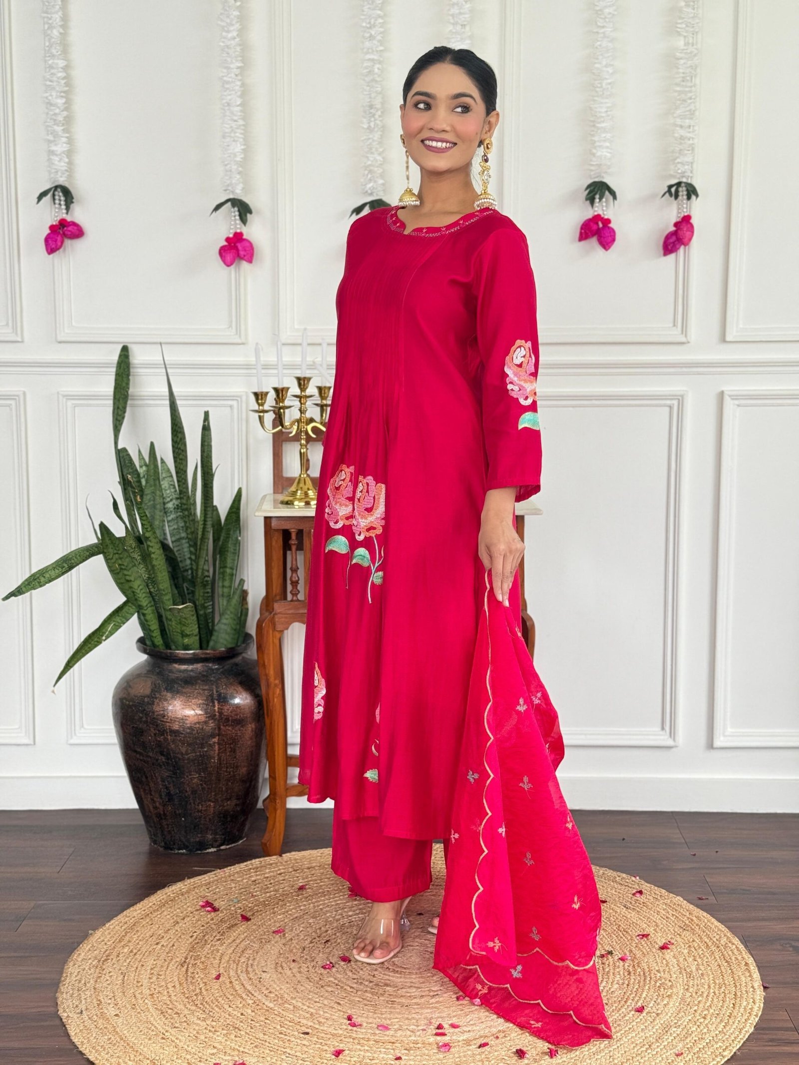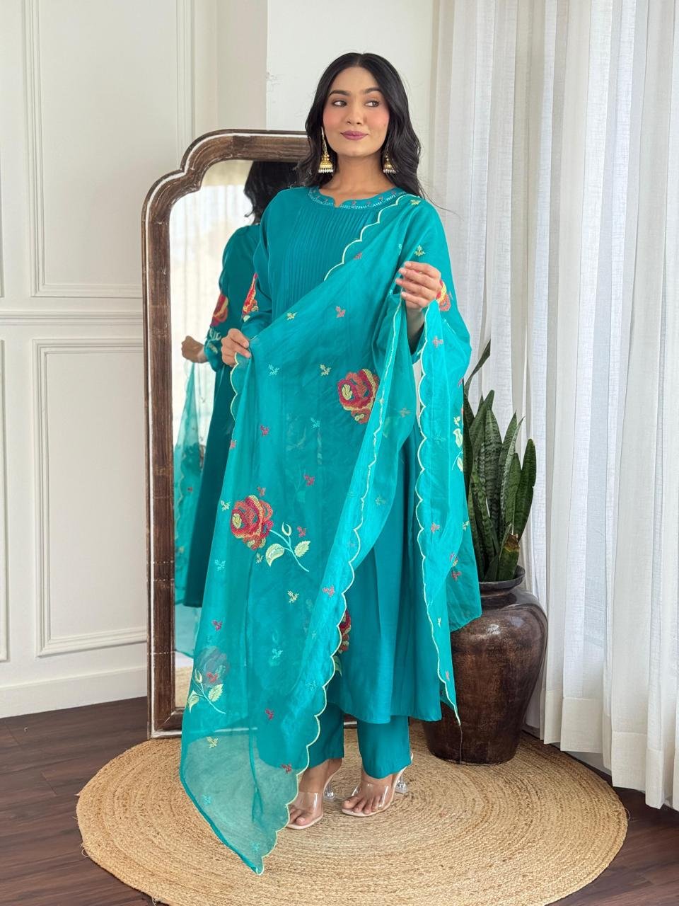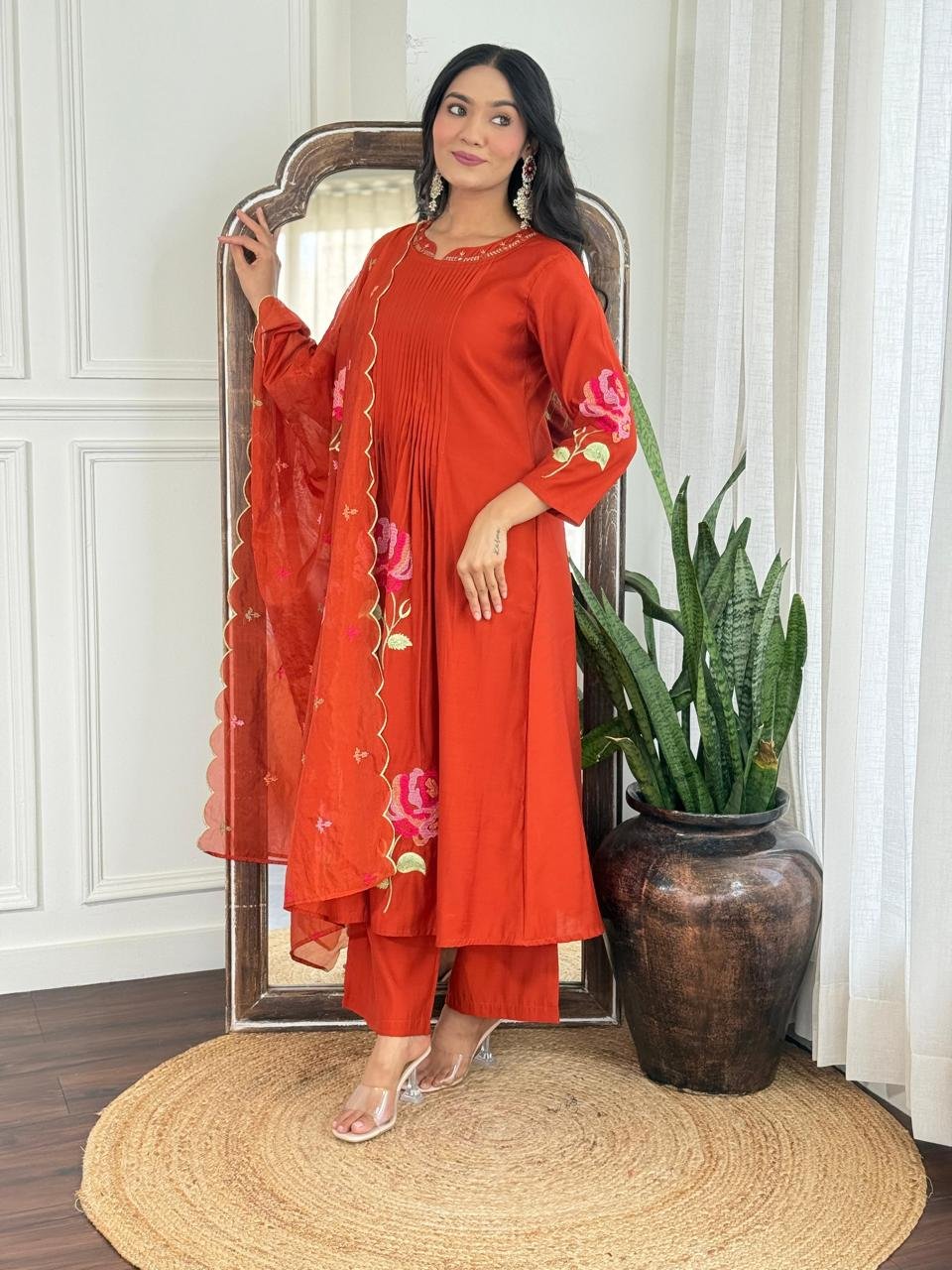 The DU-244 Stylish A-Line 3PC Suit Set is a perfect fusion of sophistication and comfort. Crafted from luxurious Roman Silk fabric, it offers a graceful drape and a refined texture that enhances your festive and semi-formal wardrobe.