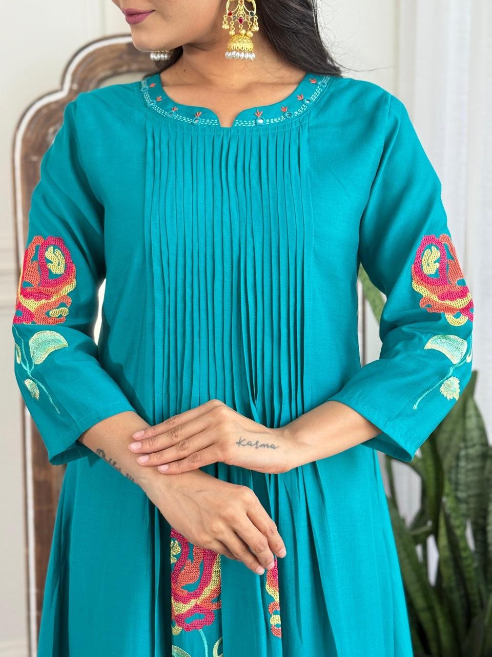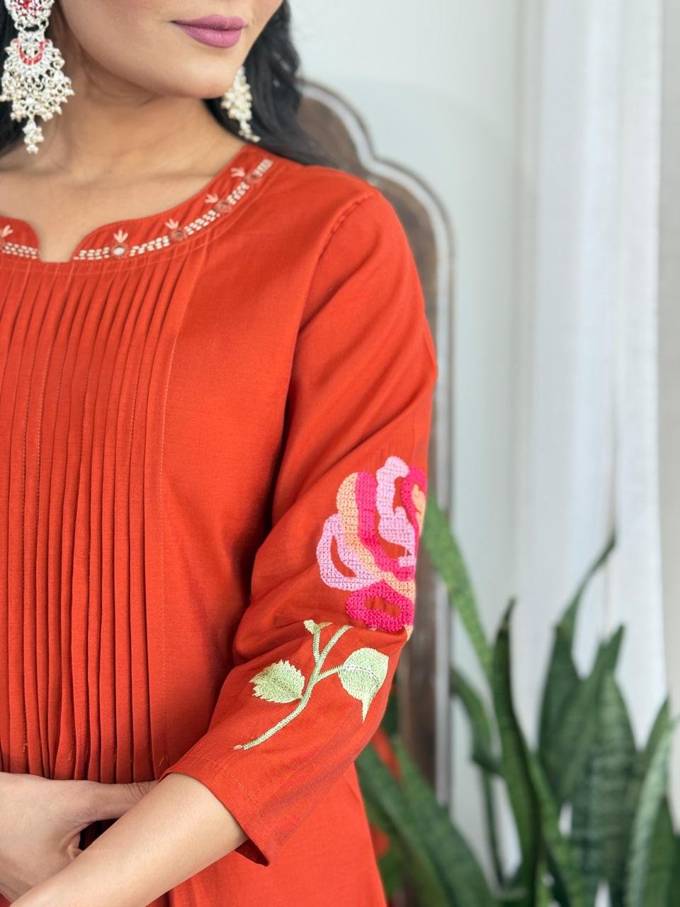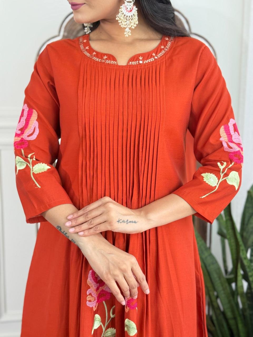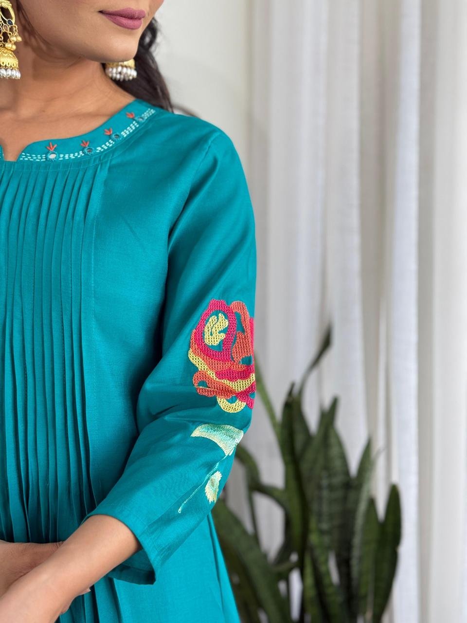 Adorned with cross stitch embroidery, this outfit exudes intricate craftsmanship, adding a touch of elegance and charm. The A-line silhouette flatters every body type, ensuring a chic and confident look.