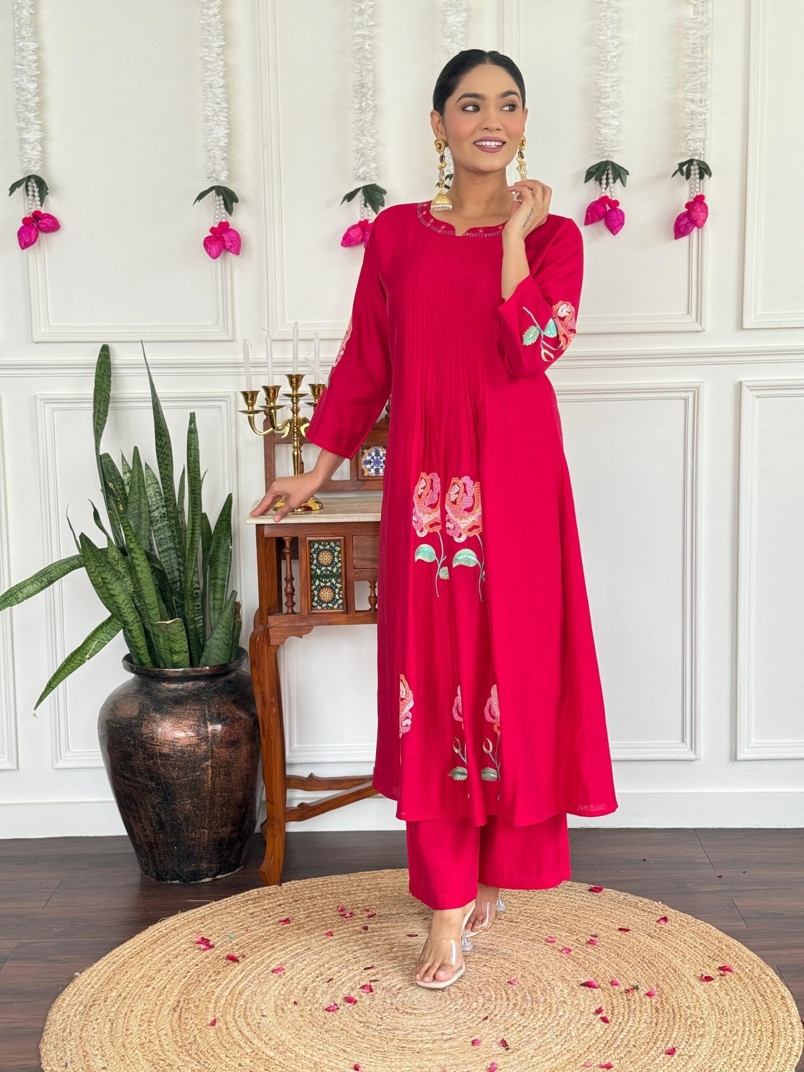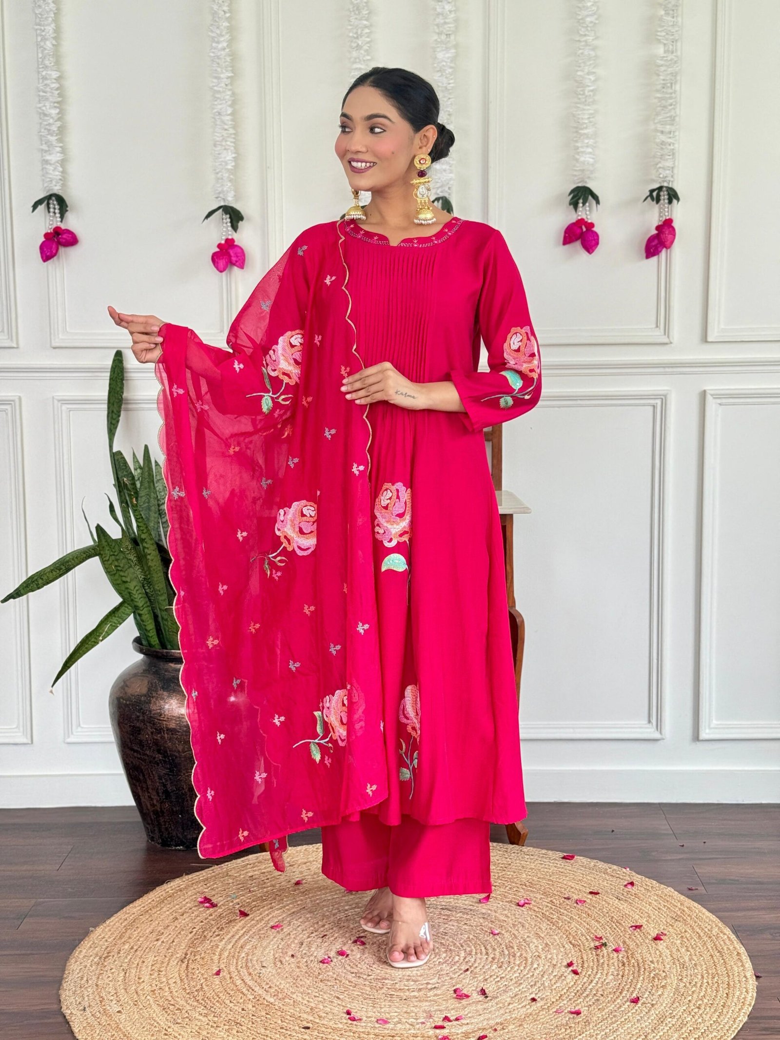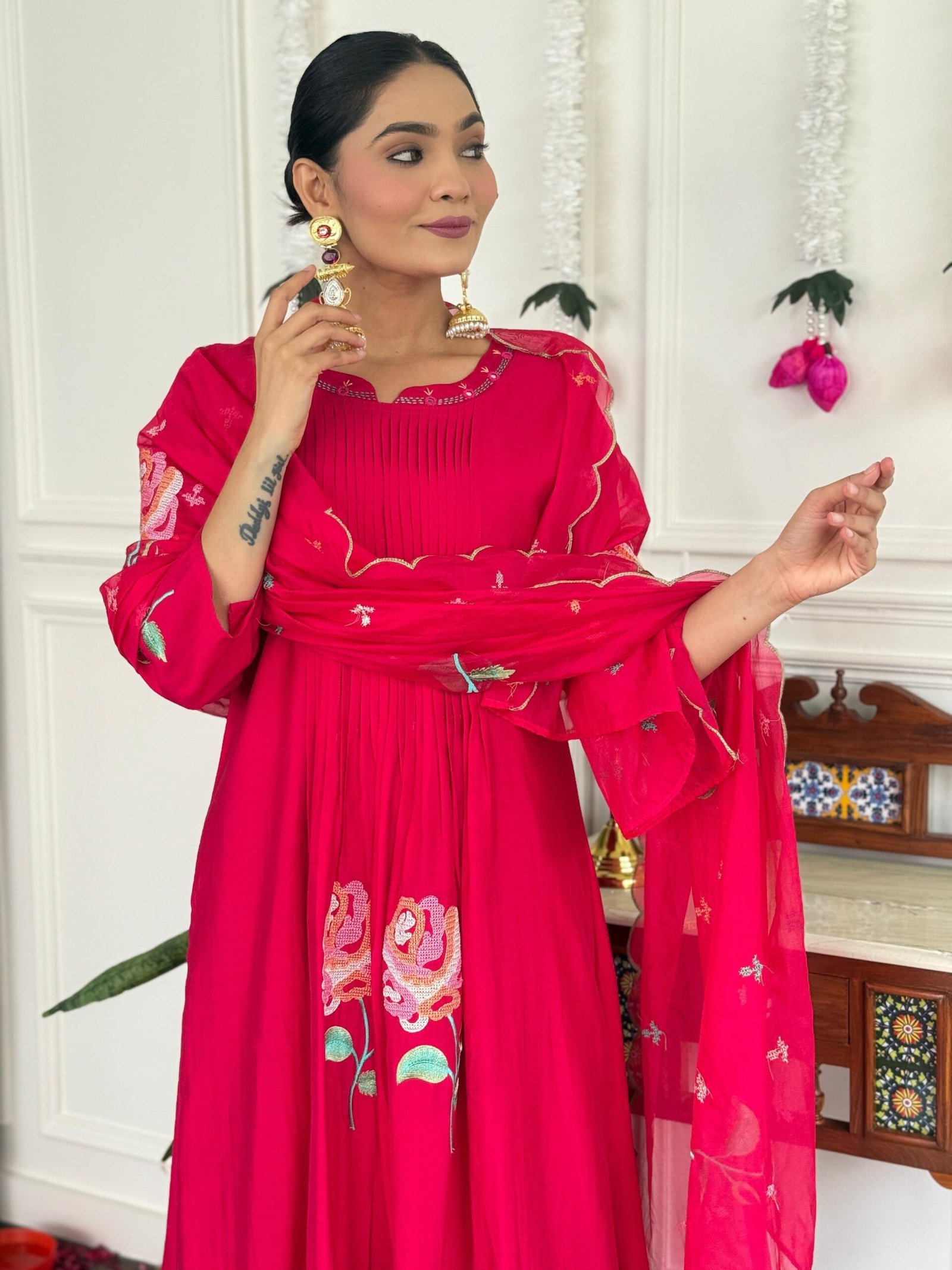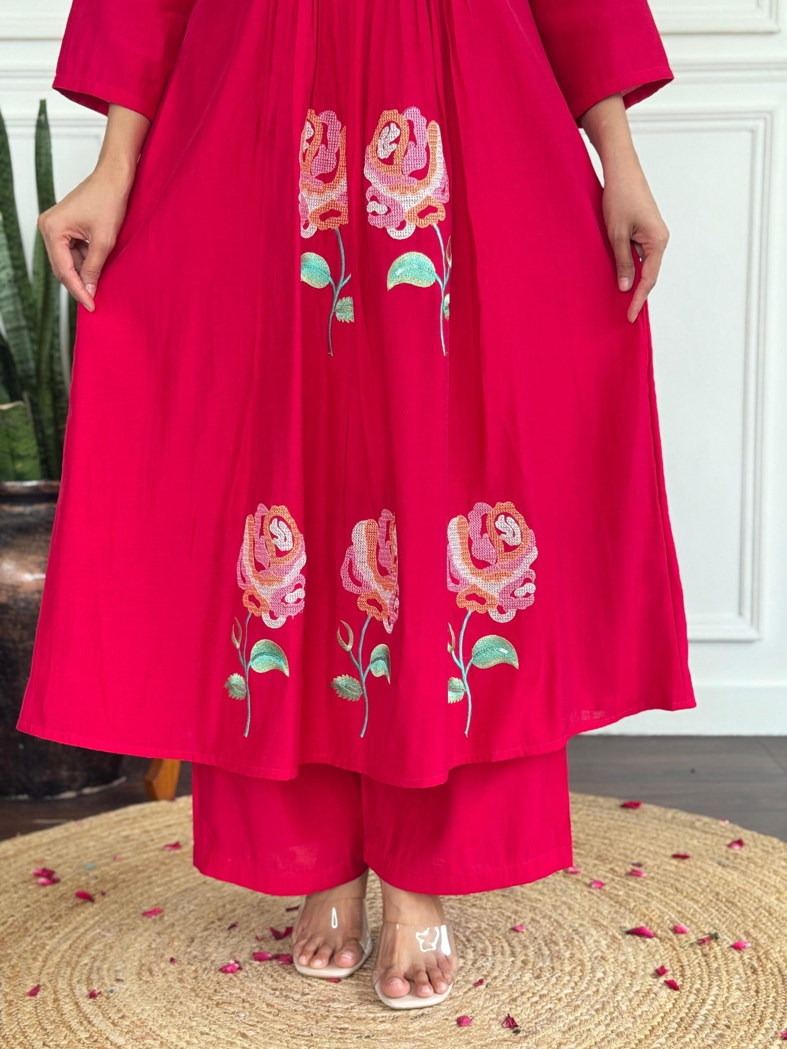 Adorned with cross stitch embroidery, this outfit exudes intricate craftsmanship, adding a touch of elegance and charm. The A-line silhouette flatters every body type, ensuring a chic and confident look.