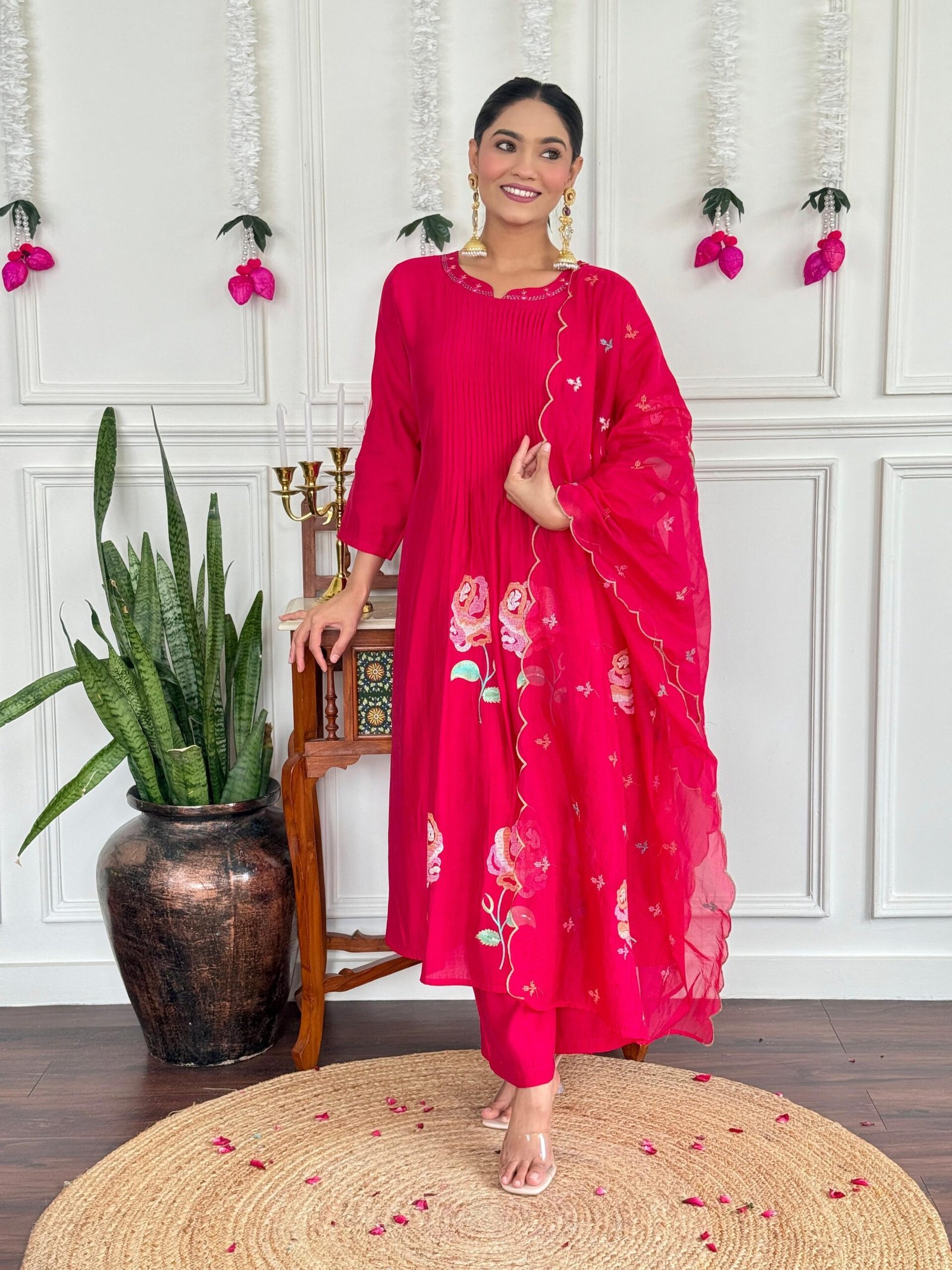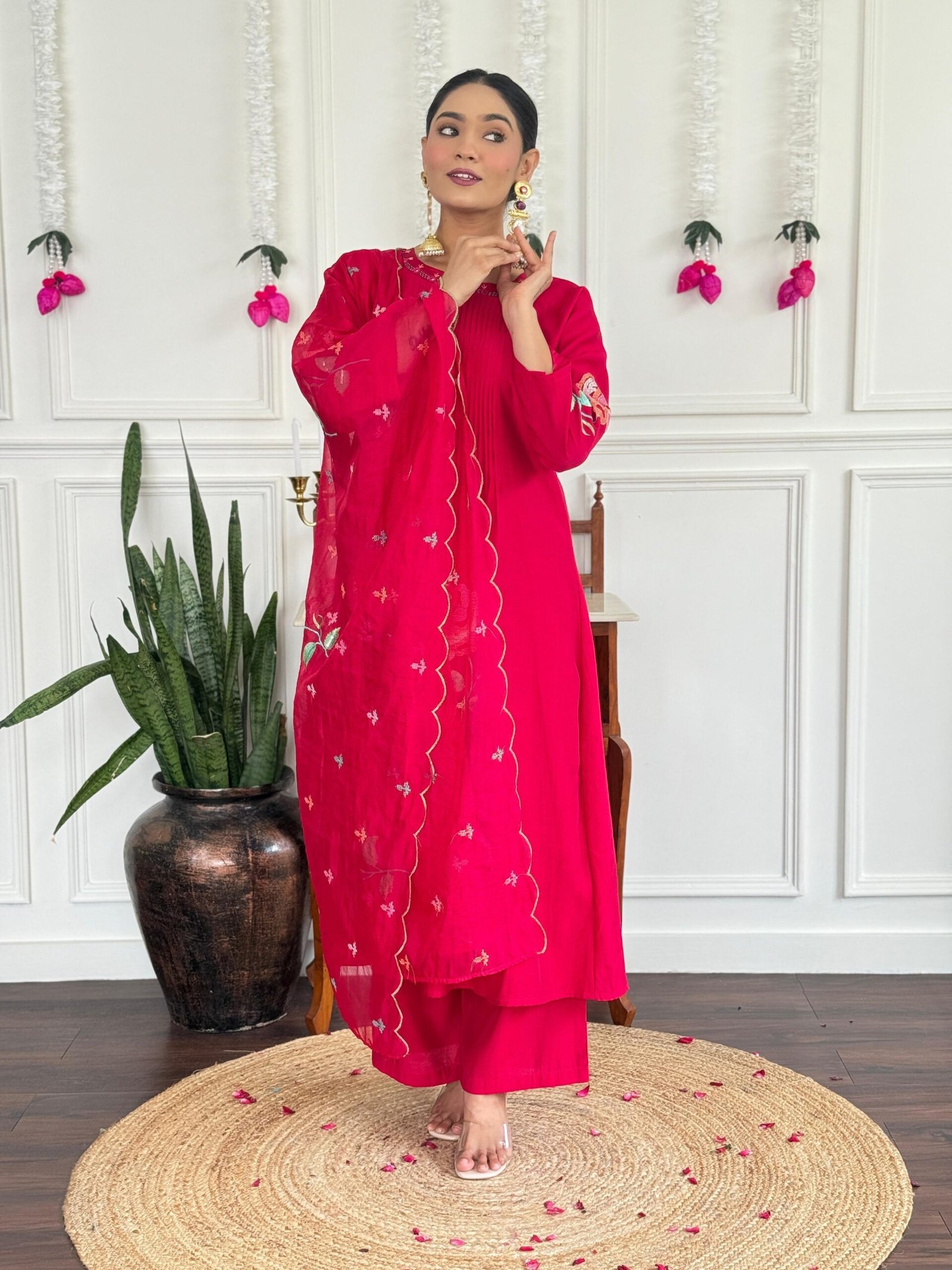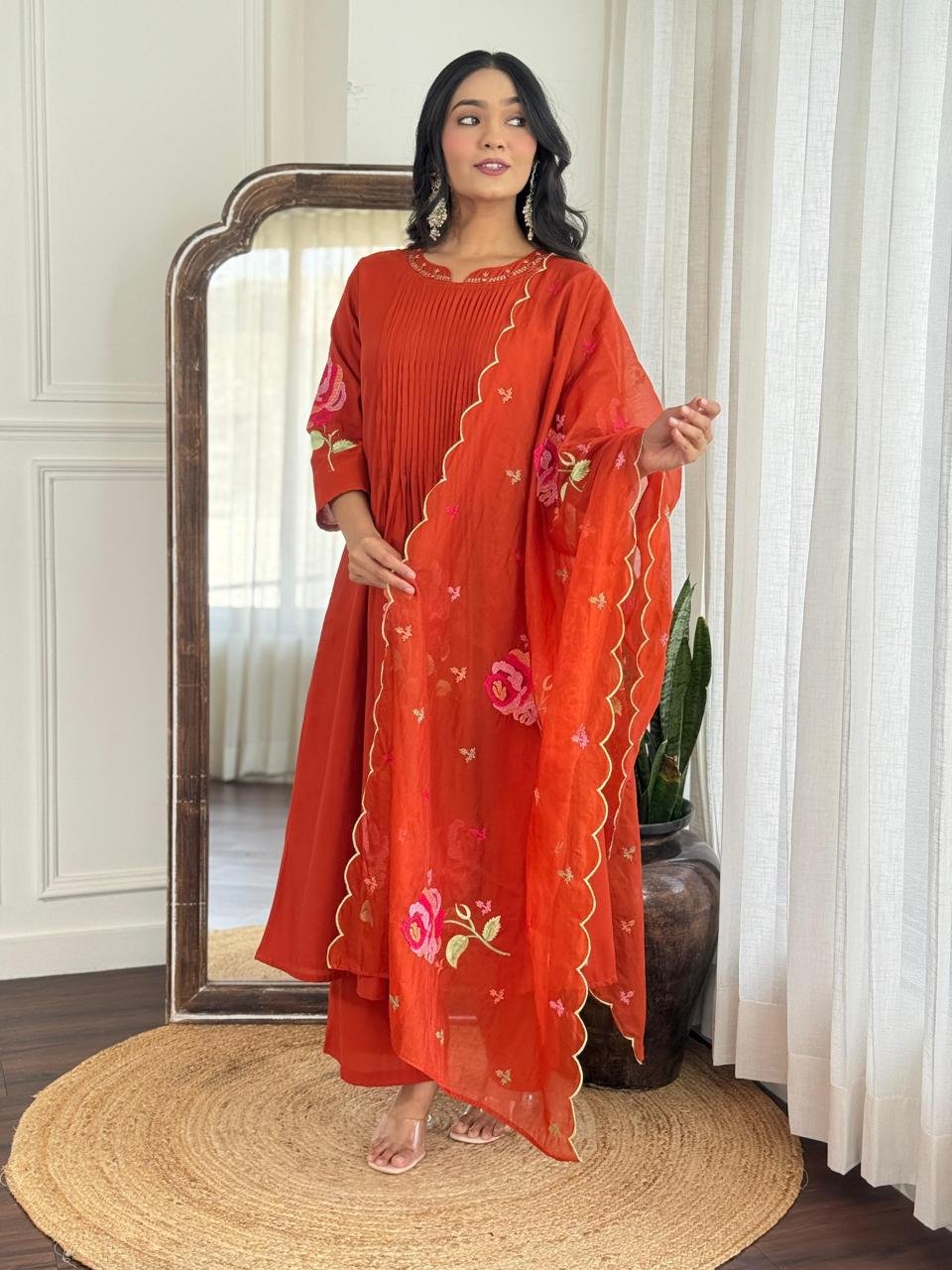 The set includes a beautifully embroidered dupatta and a cotton lining that provides all-day comfort without compromising on style. Whether for festive gatherings, celebrations, or elegant evenings, this ensemble promises effortless glamour.