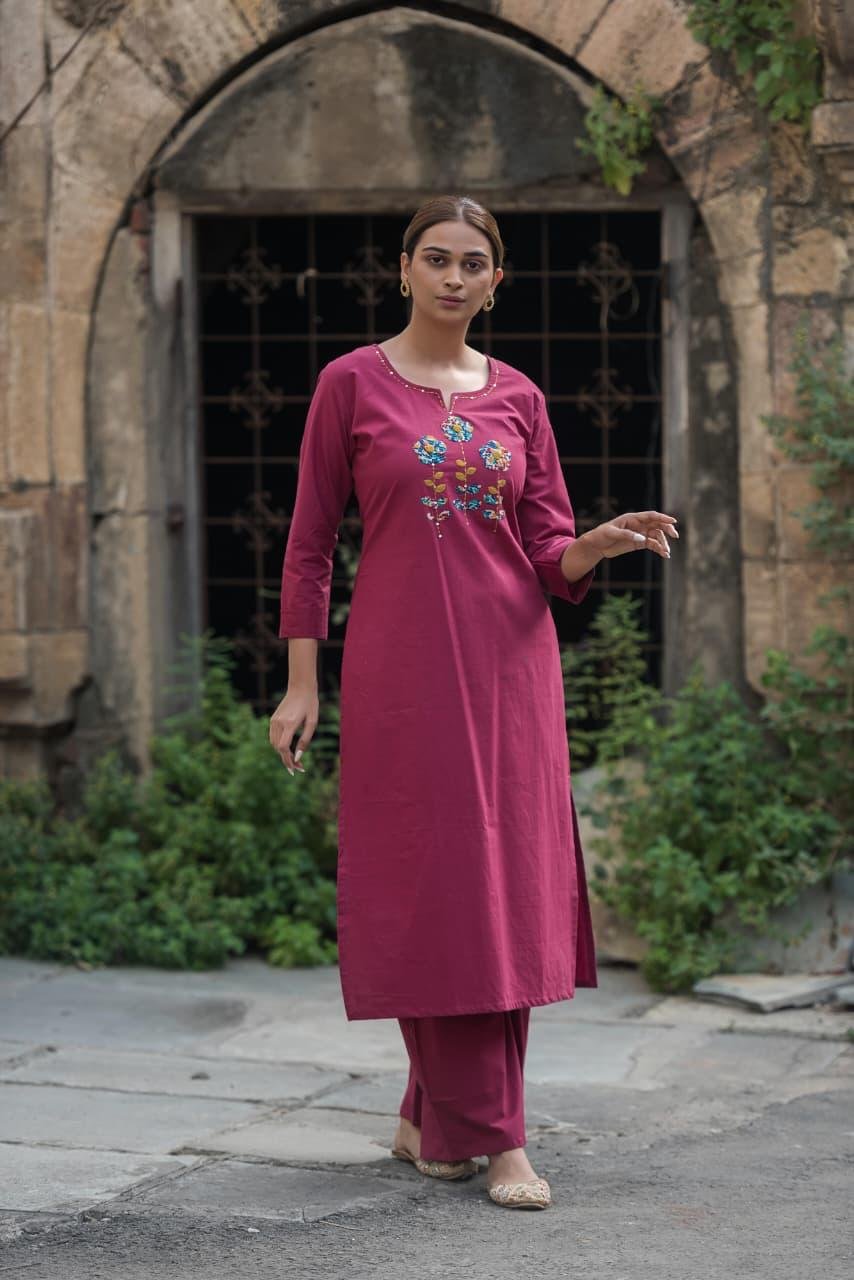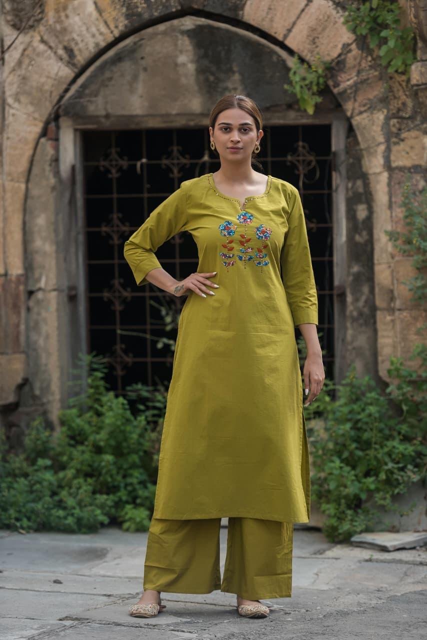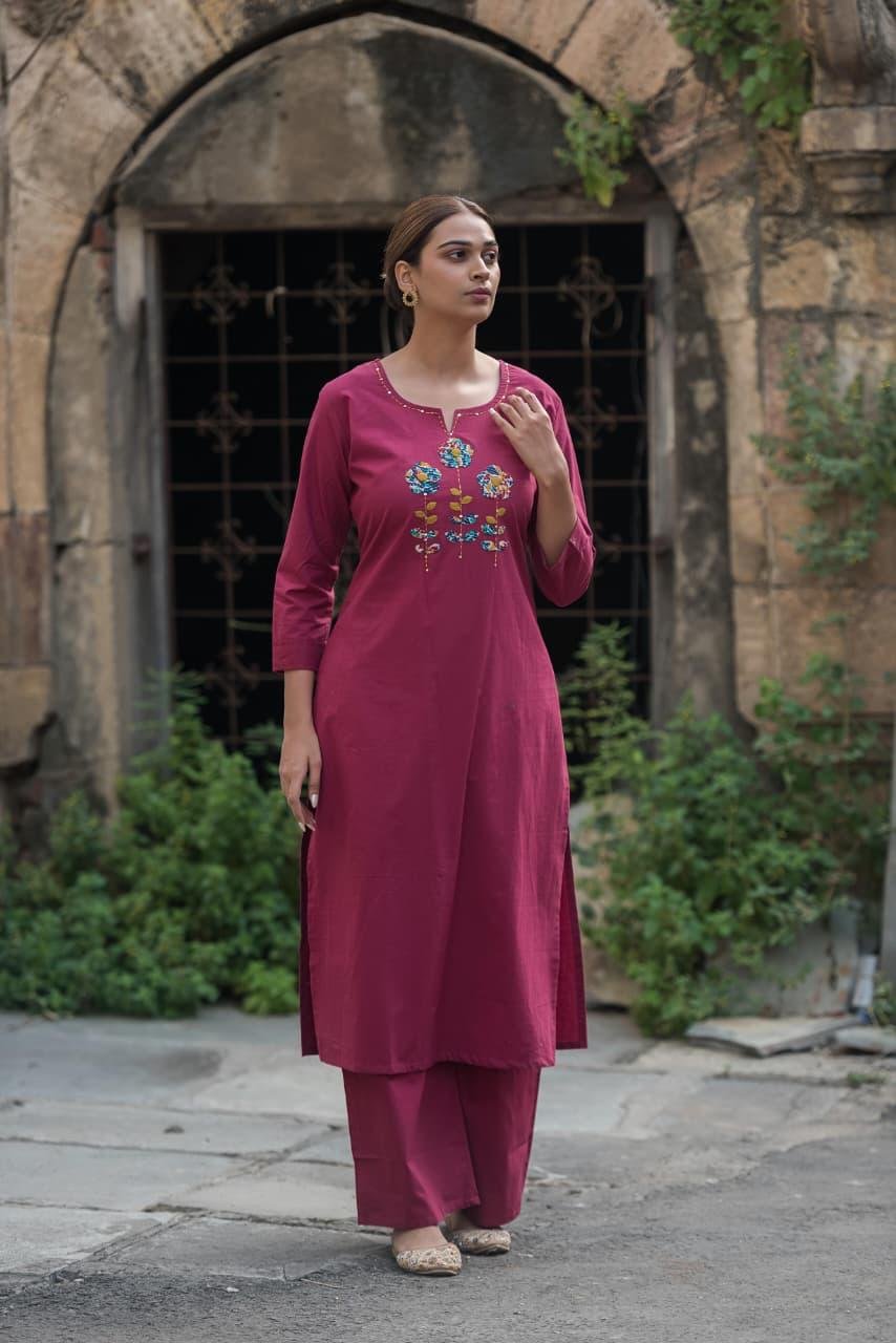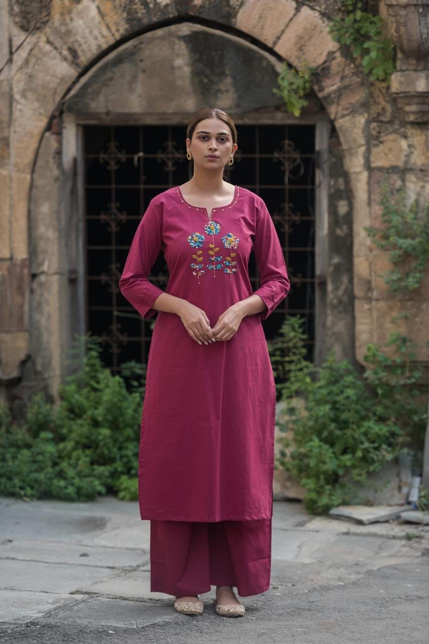 The PS-025 Stylish Appliqué Work 2PC Set is crafted from soft, breathable cotton fabric, offering a lightweight and comfortable fit. The kurta features delicate appliqué and handkerchief detailing, paired with a wide palazzo bottom for a complete, stylish ensemble. Ideal for casual outings, festive occasions, and semi-formal gatherings, this 2-piece set blends traditional craftsmanship with modern comfort.