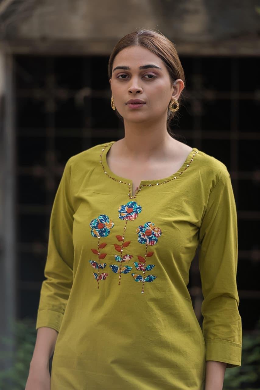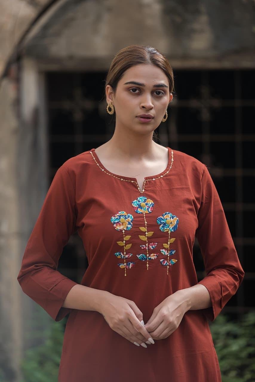 Care Instructions: Gentle hand wash separately in cold water; line dry in shade to preserve fabric texture and delicate appliqué detailing.