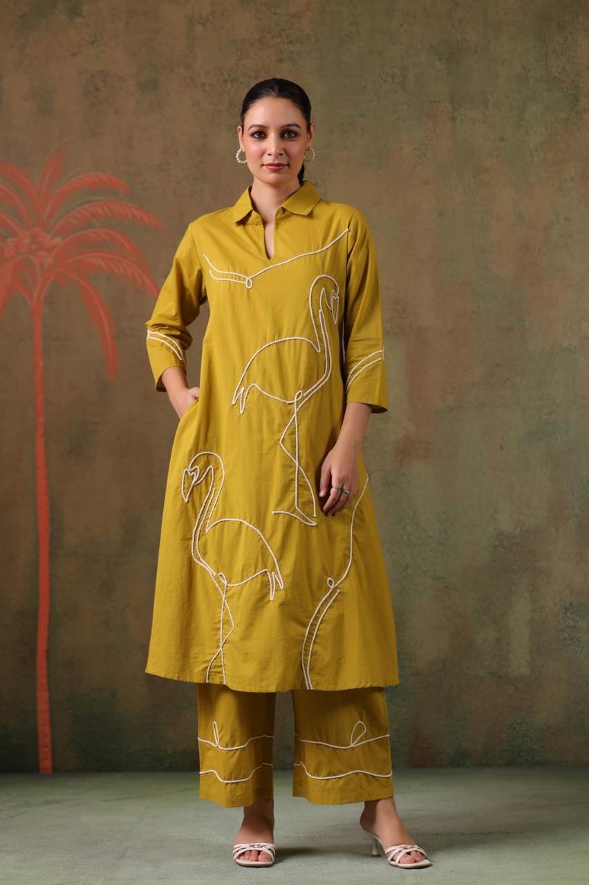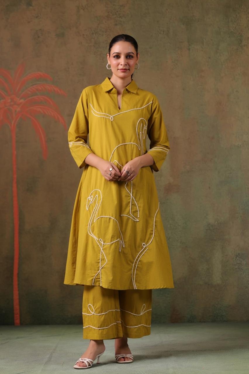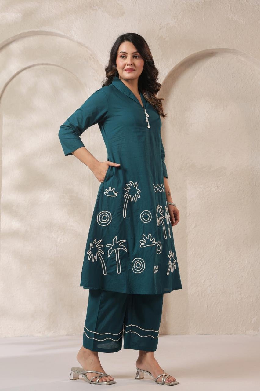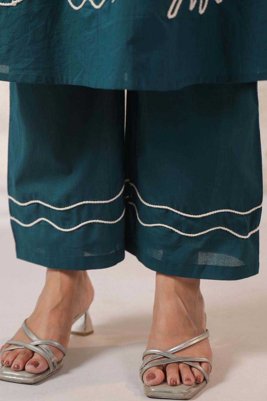 The matching palazzo is also detailed with dori work, making this set ideal for casual outings, office wear, and relaxed ethnic styling.