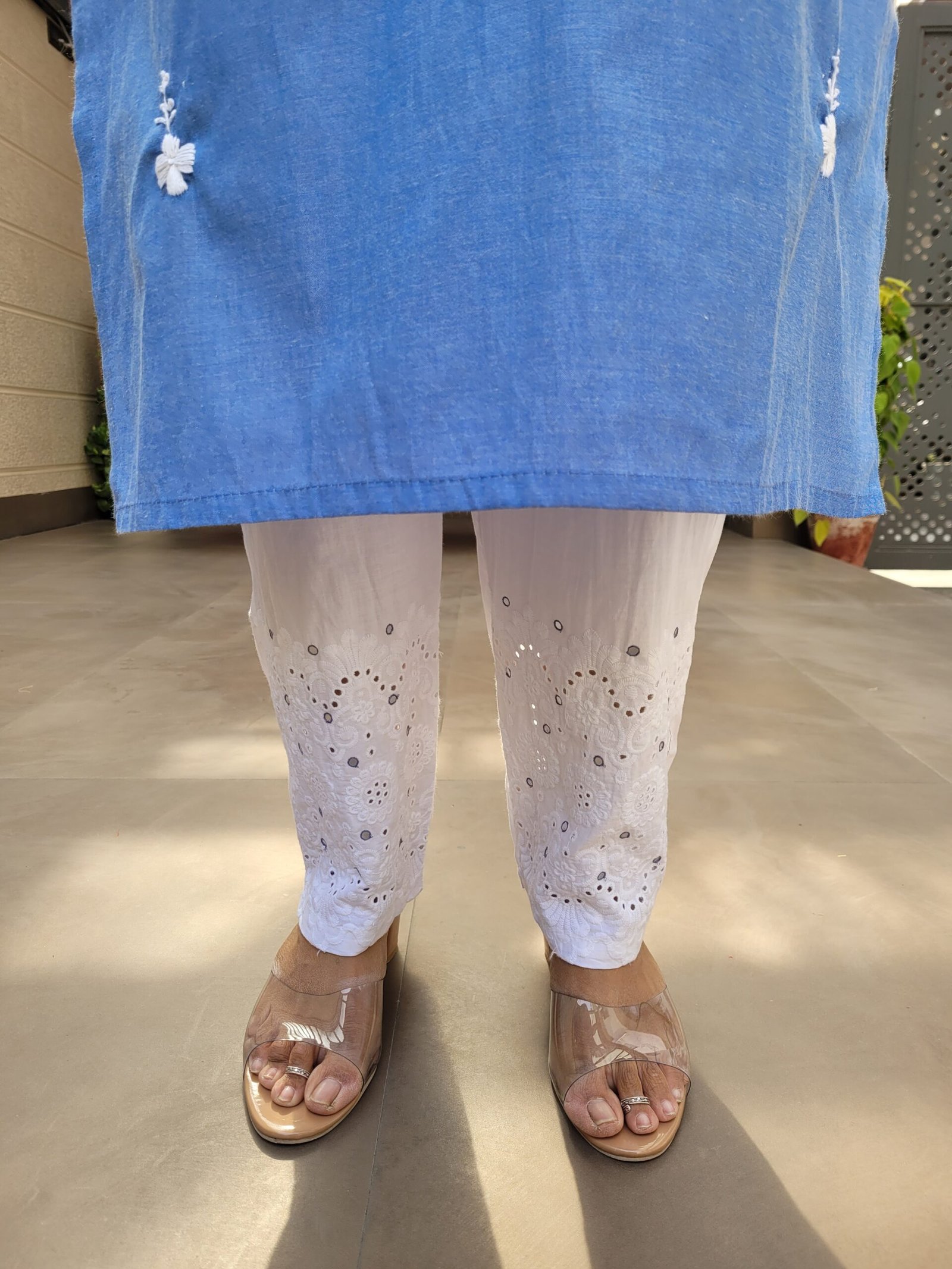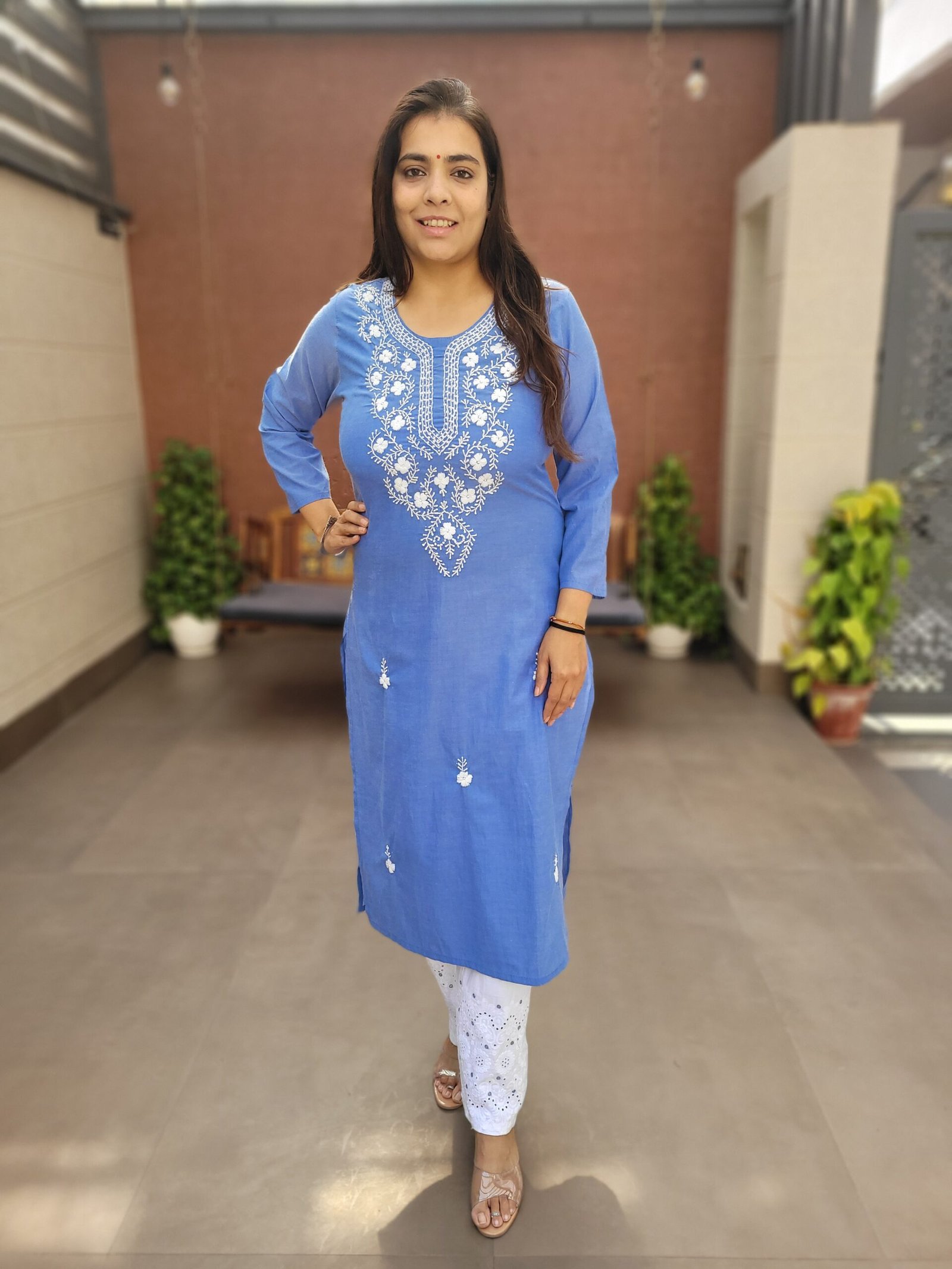 The kurta features handcrafted Chikankari embroidery, paired with a matching Chikankari embroidered bottom, creating a coordinated and elegant look. This ensemble is ideal for casual outings, festive daytime events, and chic fusion wear.