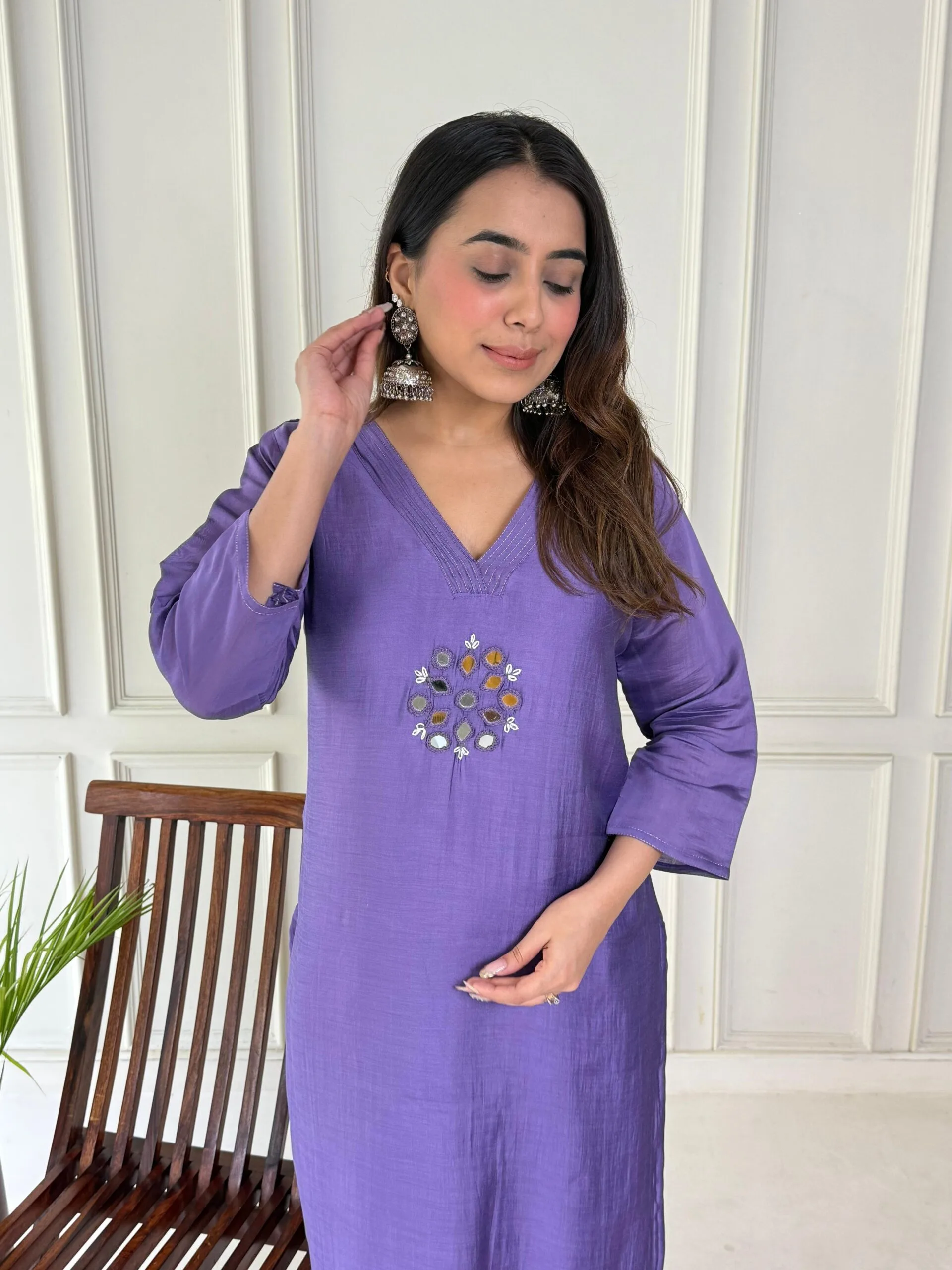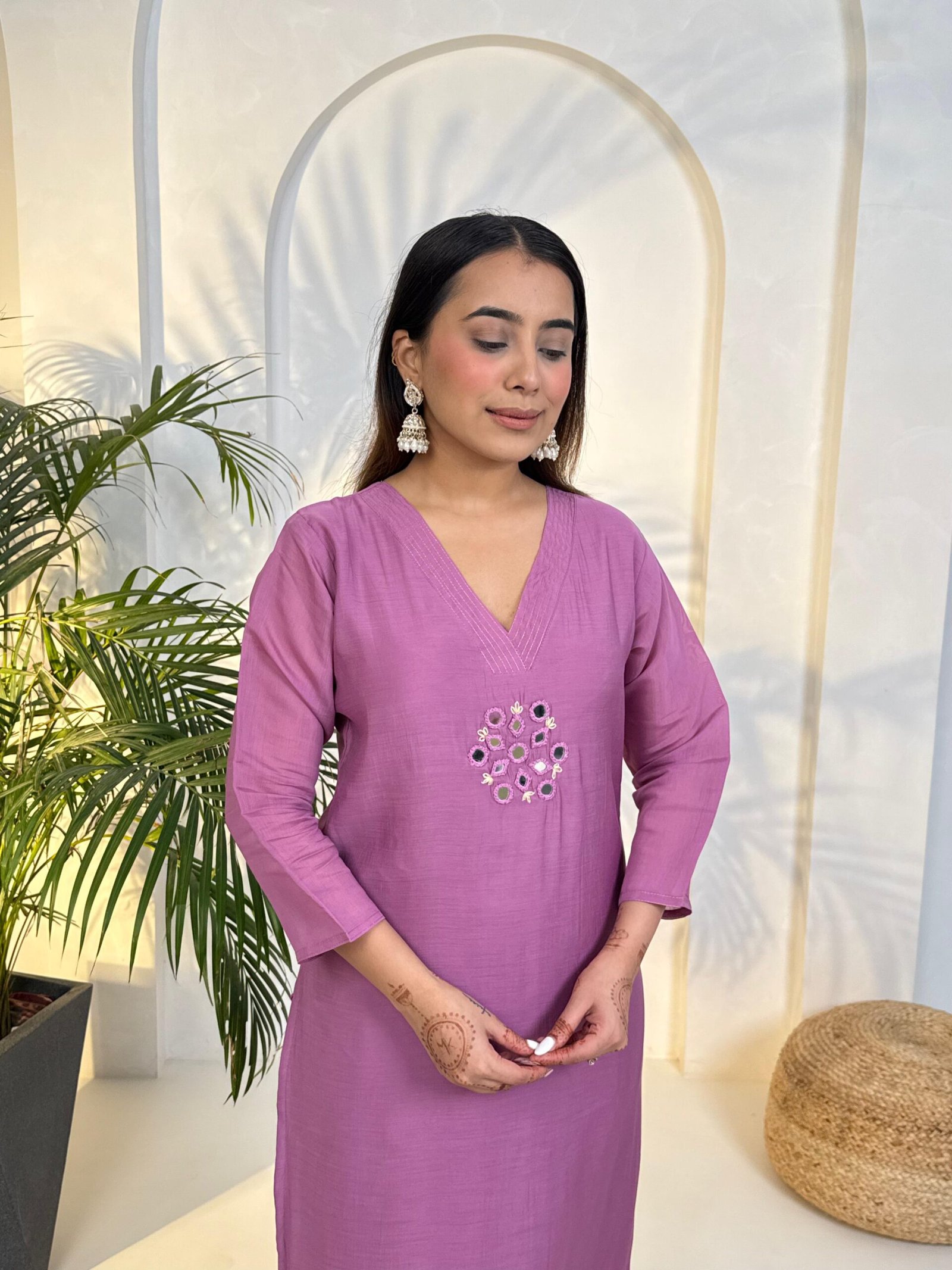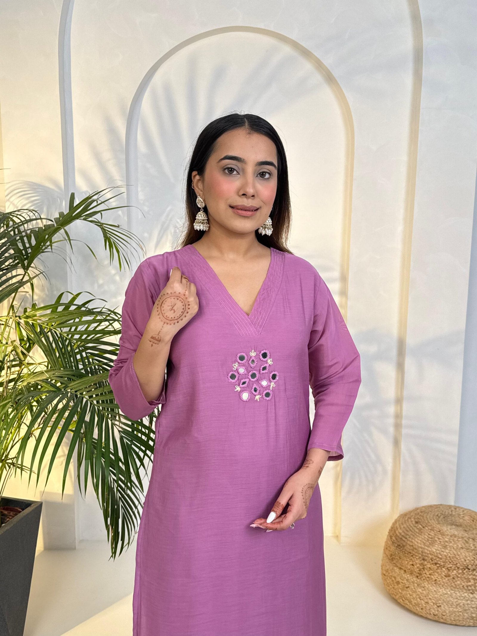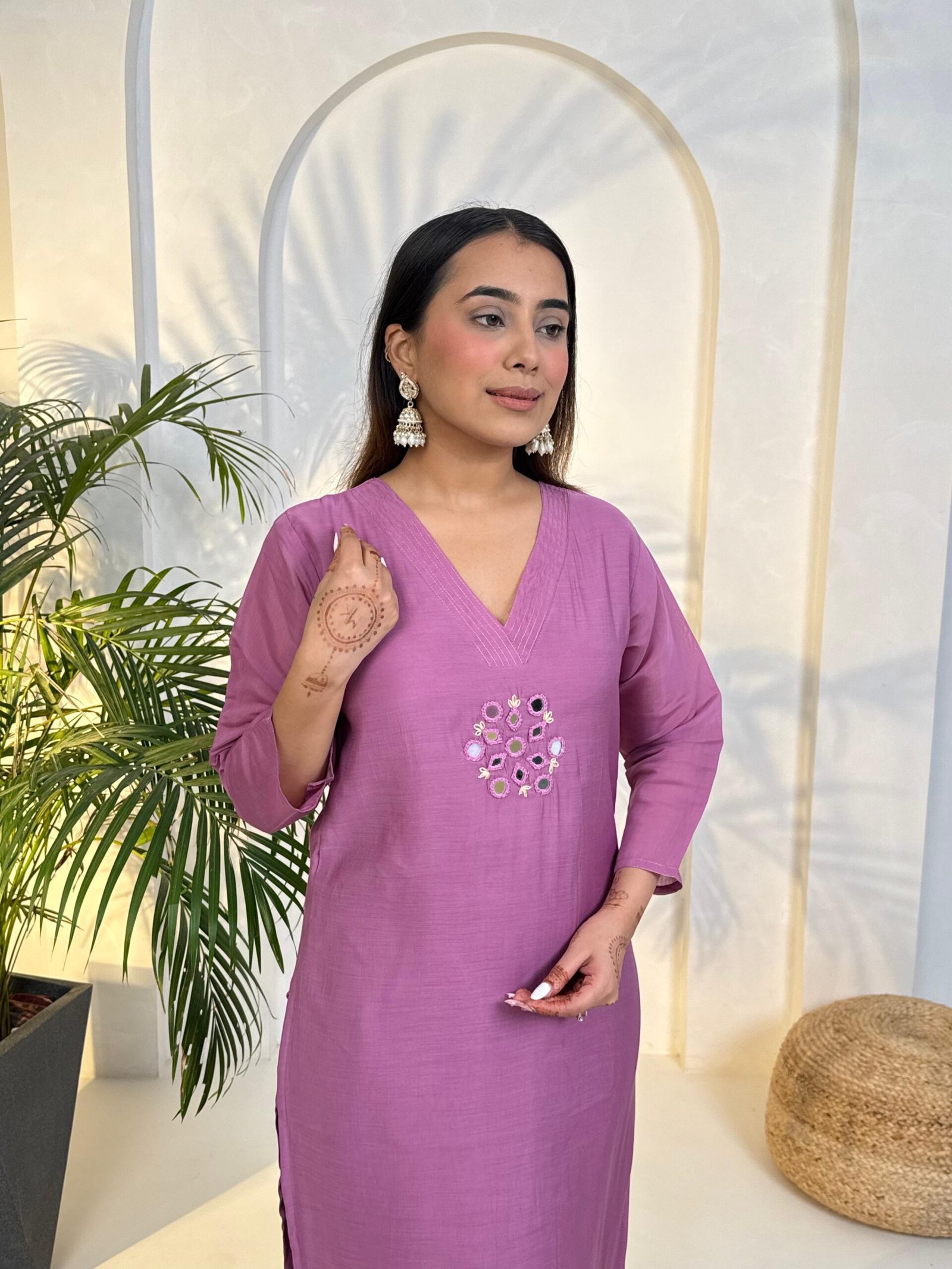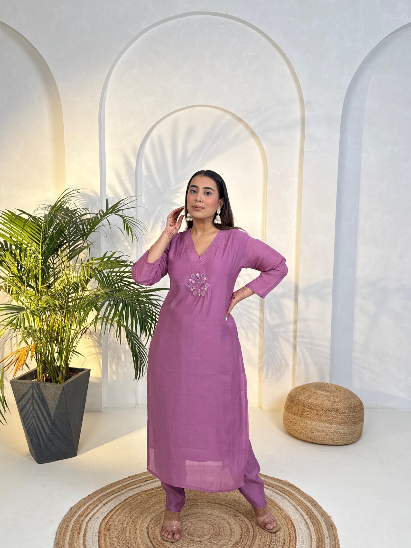 Its rich Purple Liril shade brings a fresh yet sophisticated appeal, ensuring you stand out with elegance wherever you go. Paired bottoms complete the set, giving you a balanced, coordinated ensemble that is easy to style.