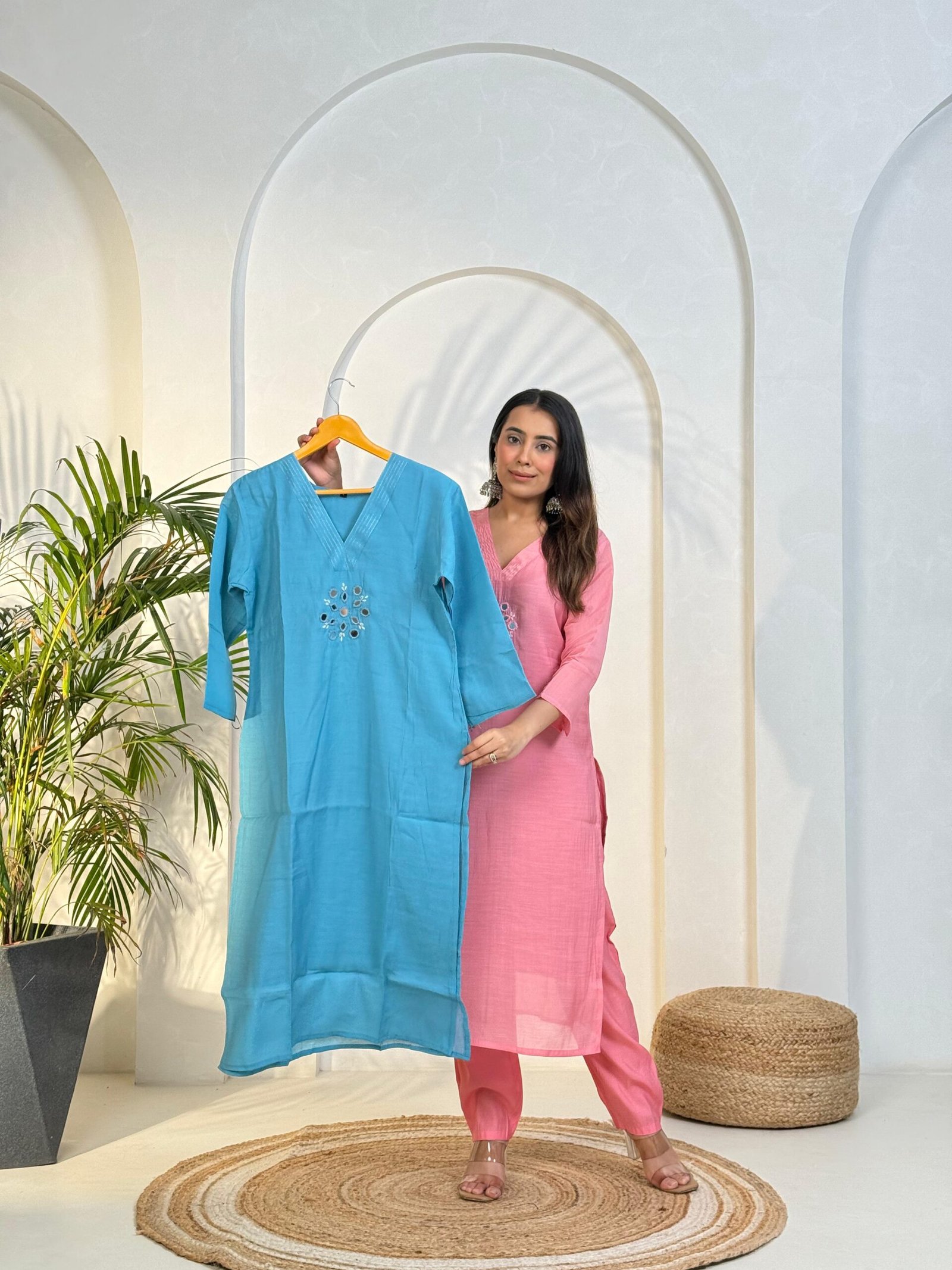 The Stylish Mal Chanderi 2PC Set is designed for the modern woman who appreciates a blend of classic elegance and subtle festive charm. Crafted from premium Mal Chanderi fabric, this set offers a graceful fall with a gentle sheen, creating a look that is refined yet effortlessly wearable.