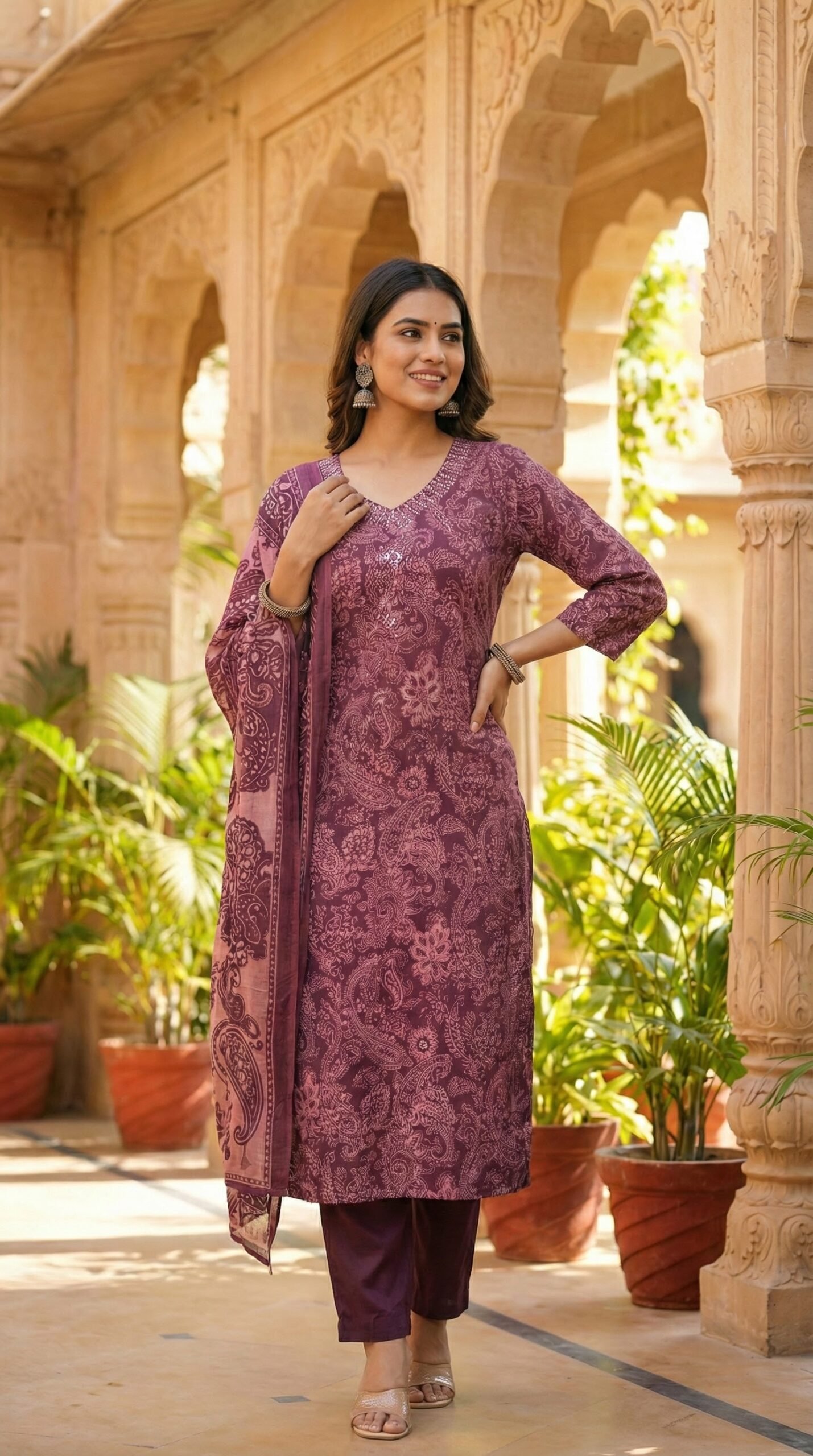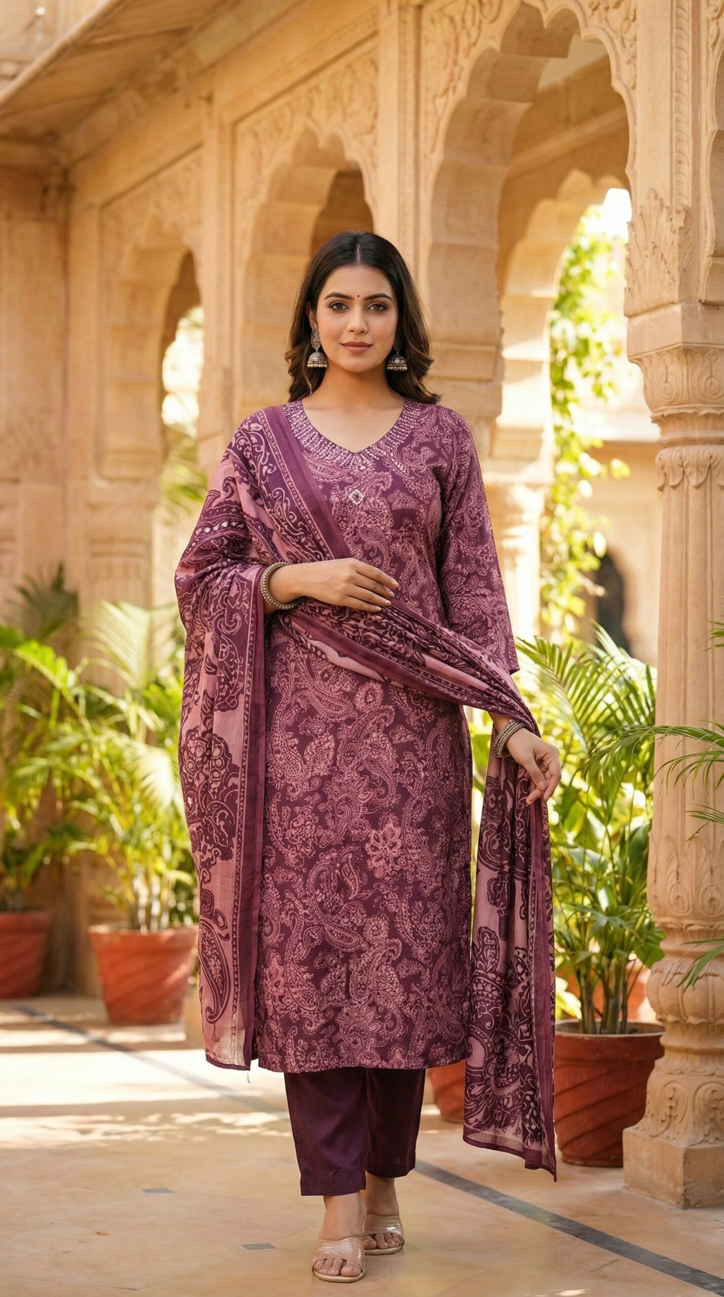 This set is perfect for festive gatherings, parties, family events, or stylish everyday wear. Comfortable yet graceful, it beautifully blends modern charm with traditional prints.