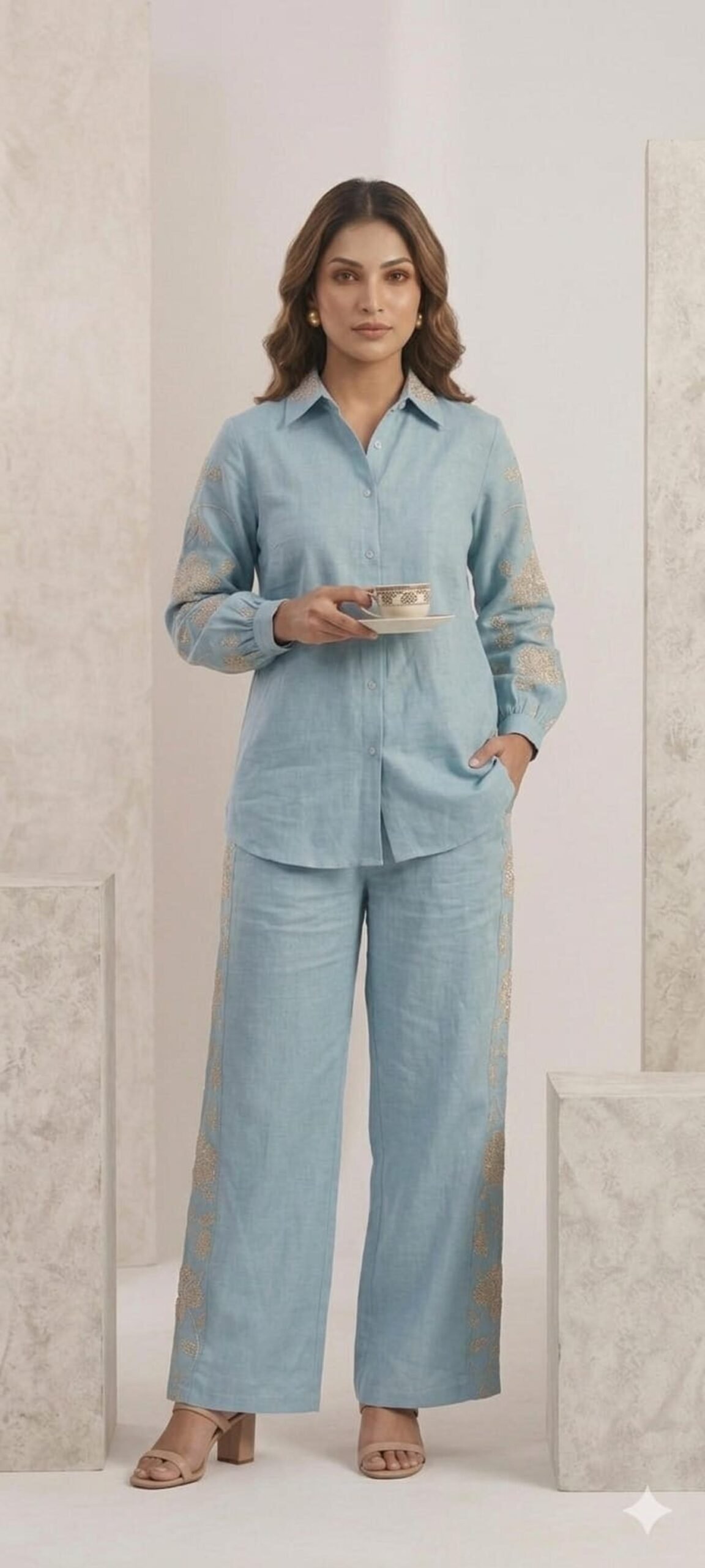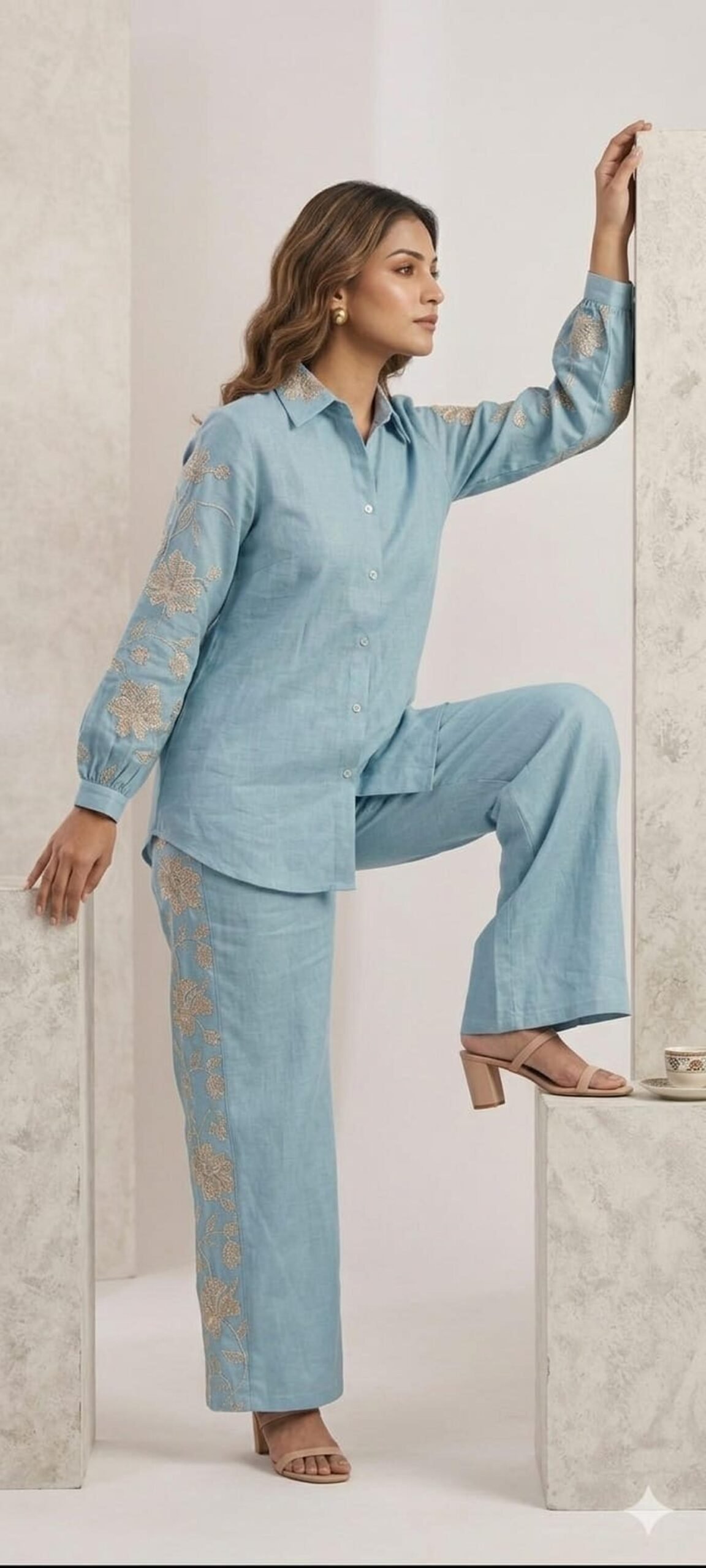 Perfect for festive occasions, office styling, celebrations, and smart casual outings, this set adds charm to your wardrobe.