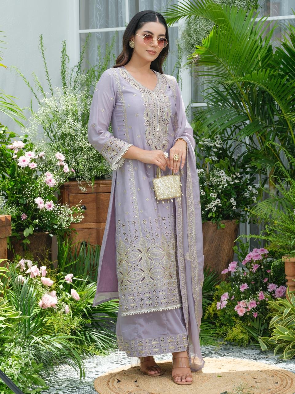 Step into effortless elegance with the PW-095 Stylish Partywear Suit Set, a perfect blend of traditional artistry and modern design. Crafted in pure chinon fabric, this ensemble carries a soft, flowing texture with a subtle sheen that makes it ideal for festive evenings and special occasions.
