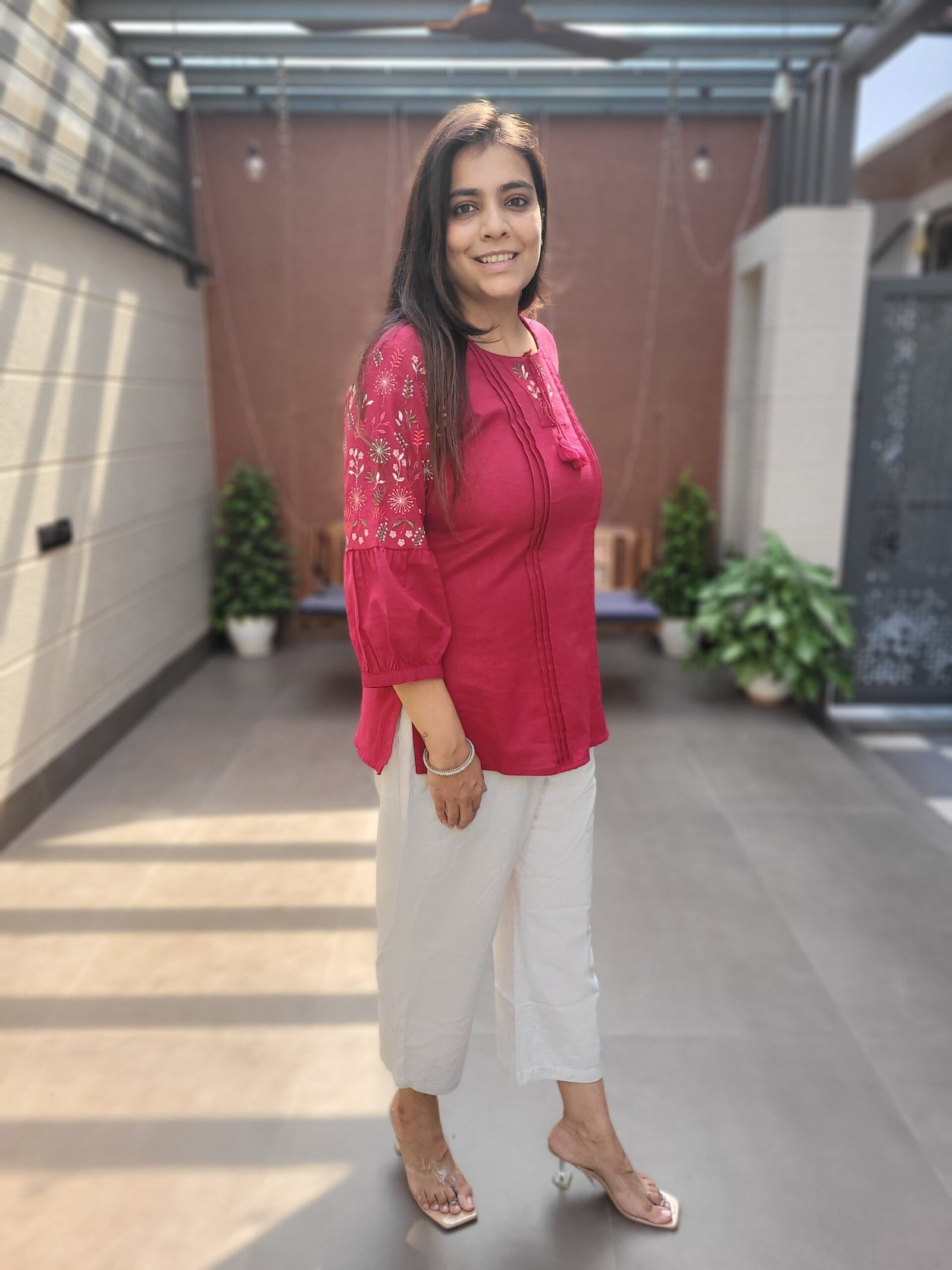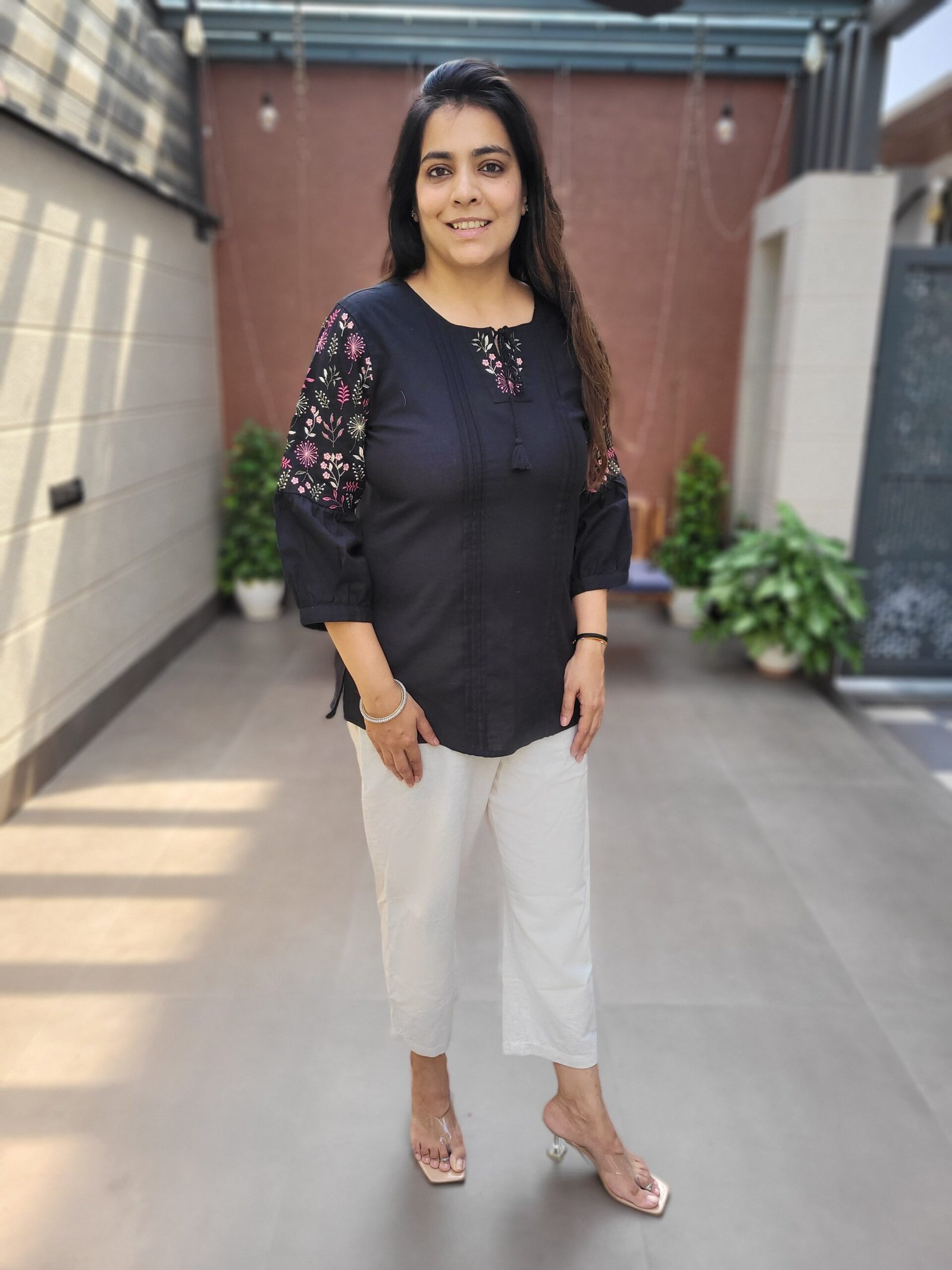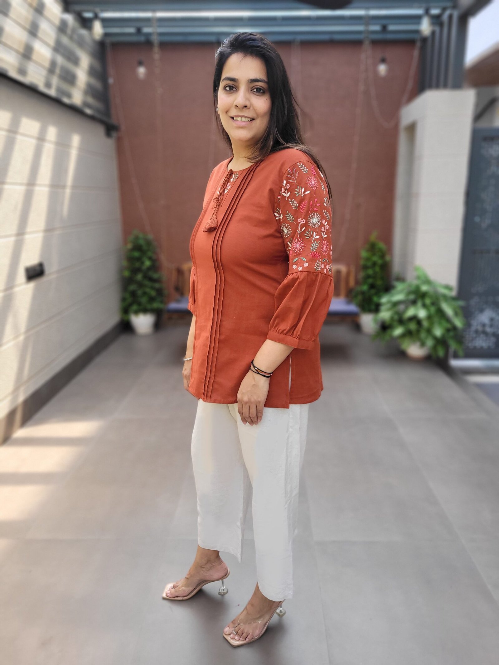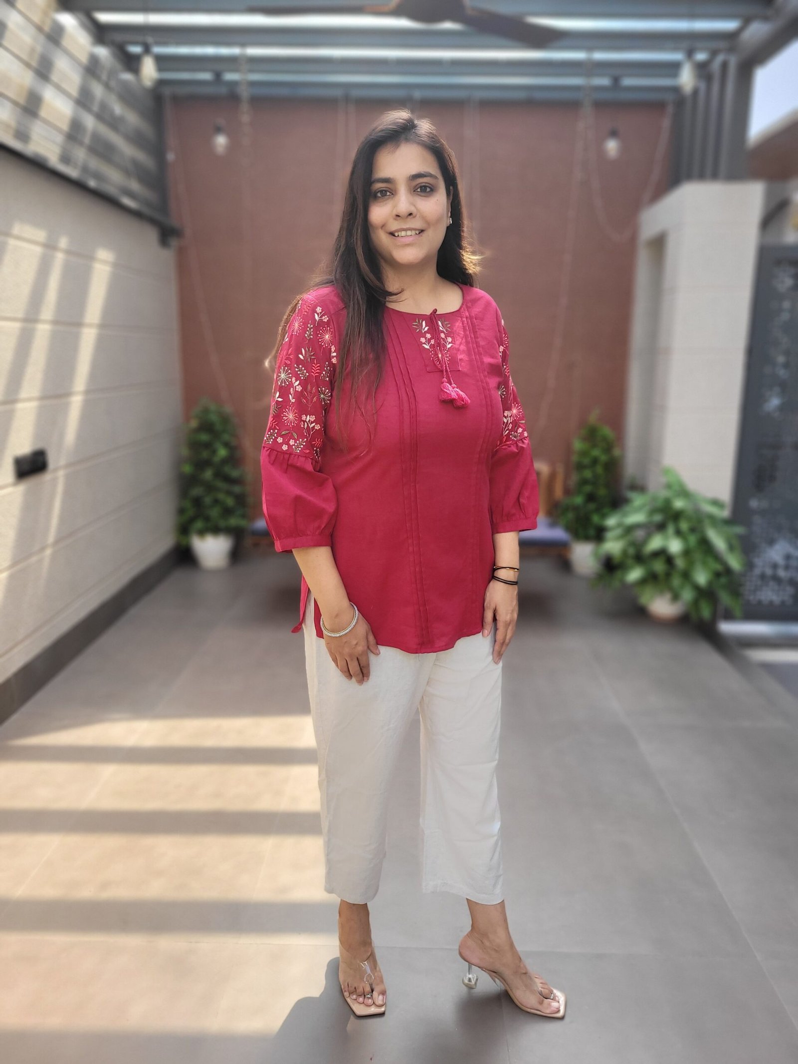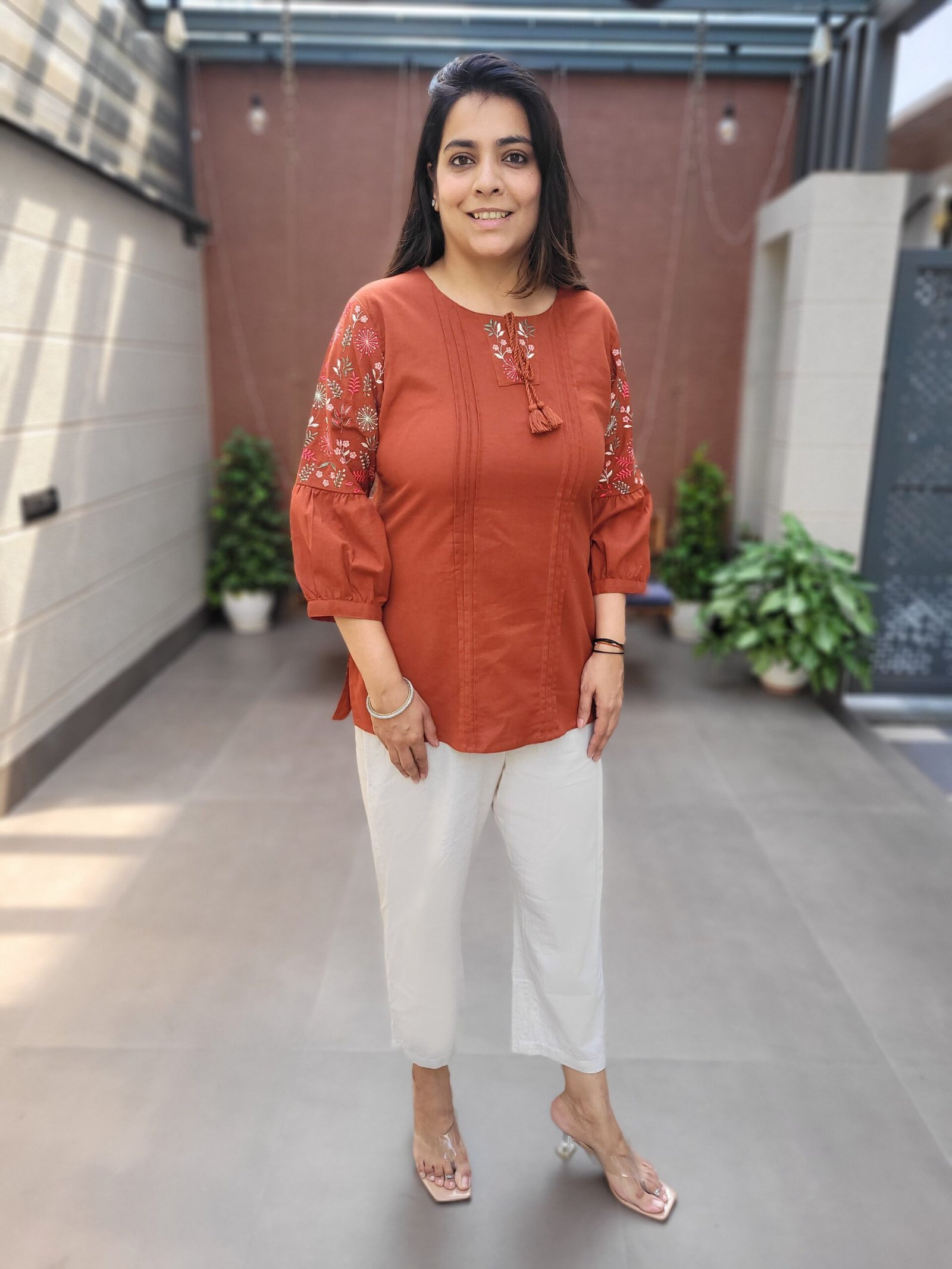 The TU-006 Stylish Tunic is crafted from soft, breathable cotton flex fabric, ensuring a lightweight and comfortable fit for all-day wear. Featuring intricate embroidery and balloon-style sleeves, this tunic offers a perfect blend of traditional craftsmanship and modern fashion. The relaxed silhouette allows ease of movement, making it suitable for casual outings, office wear, or semi-formal occasions. Pair it with your favorite bottoms, palazzos, or leggings to create a chic and versatile look that effortlessly stands out. Its premium fabric, stylish design, and vibrant colors make it a must-have wardrobe staple for every modern woman.