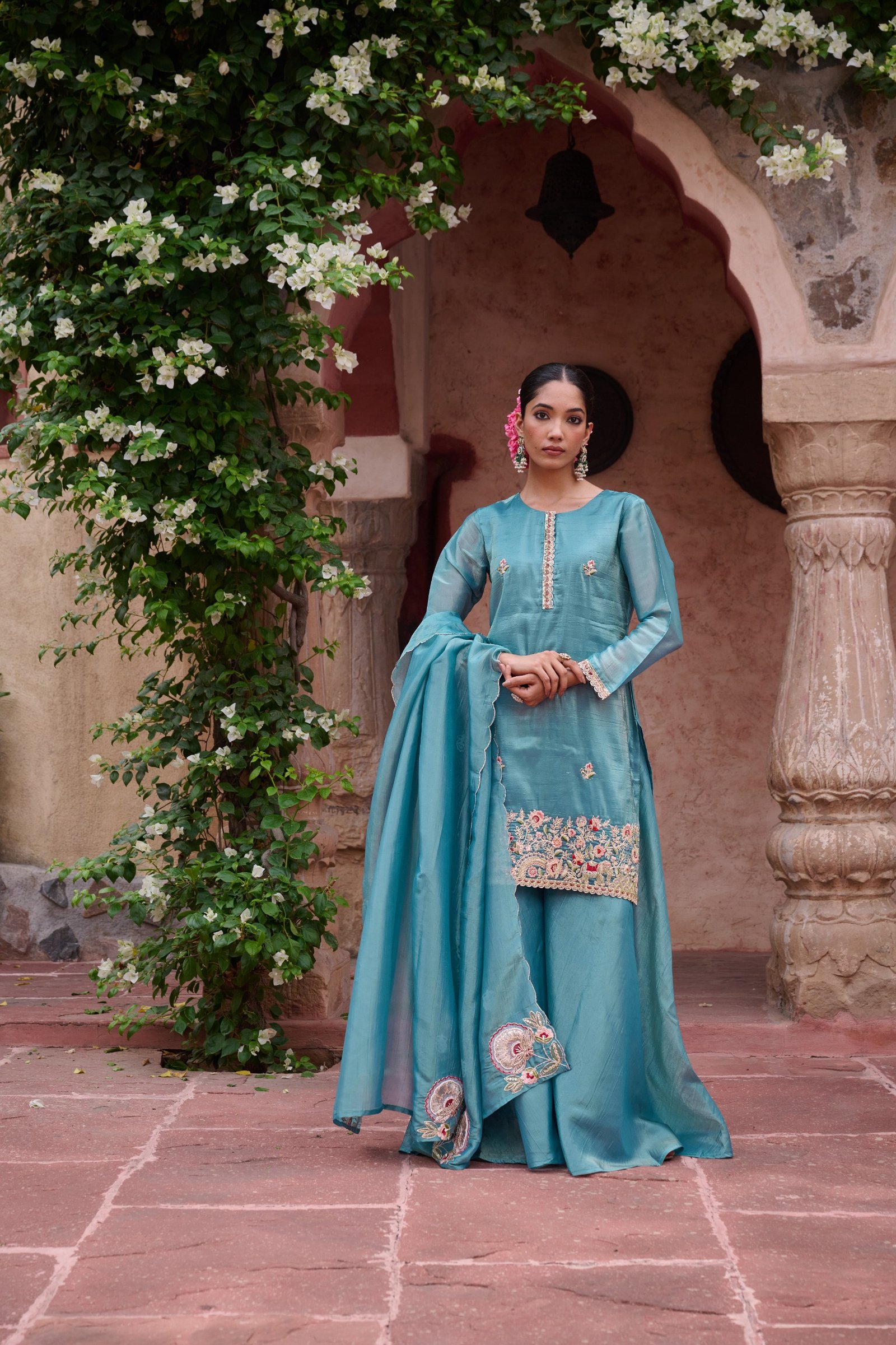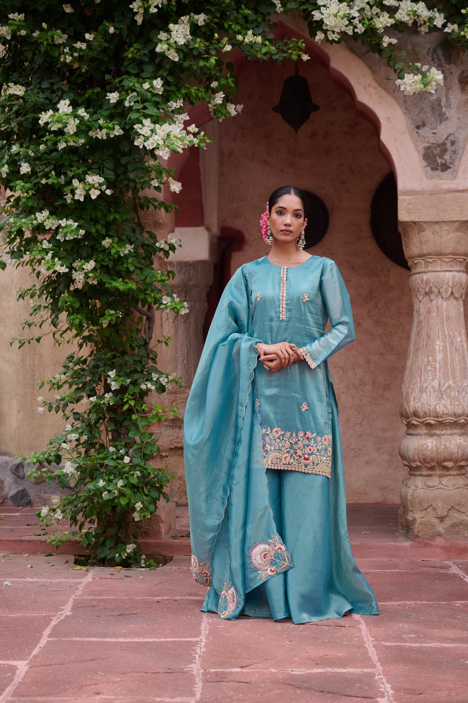 Lined with soft cotton fabric, this set promises all-day comfort without compromising on elegance. The soothing powder blue shade adds a touch of sophistication and serenity, perfect for both day and evening occasions.